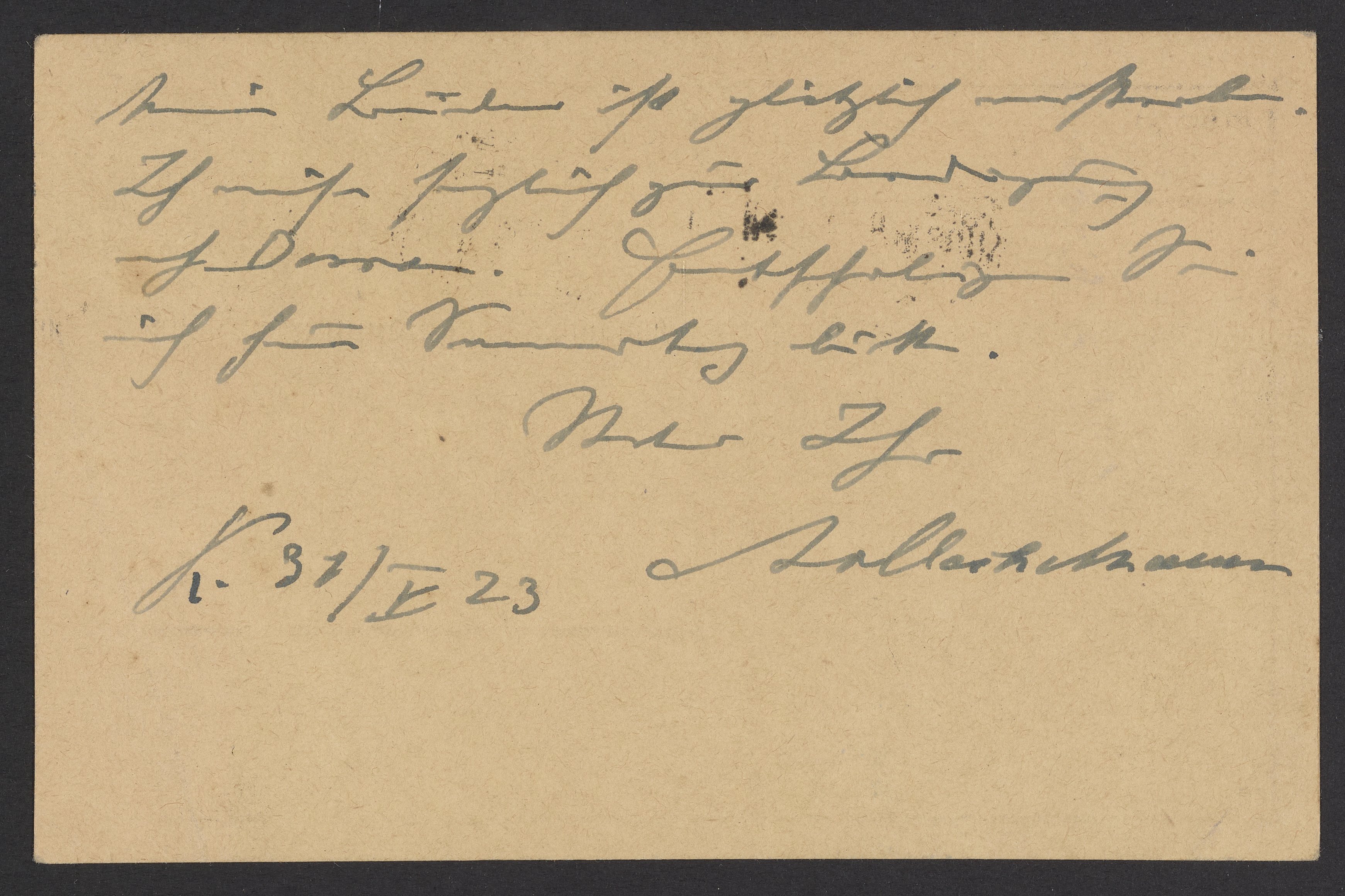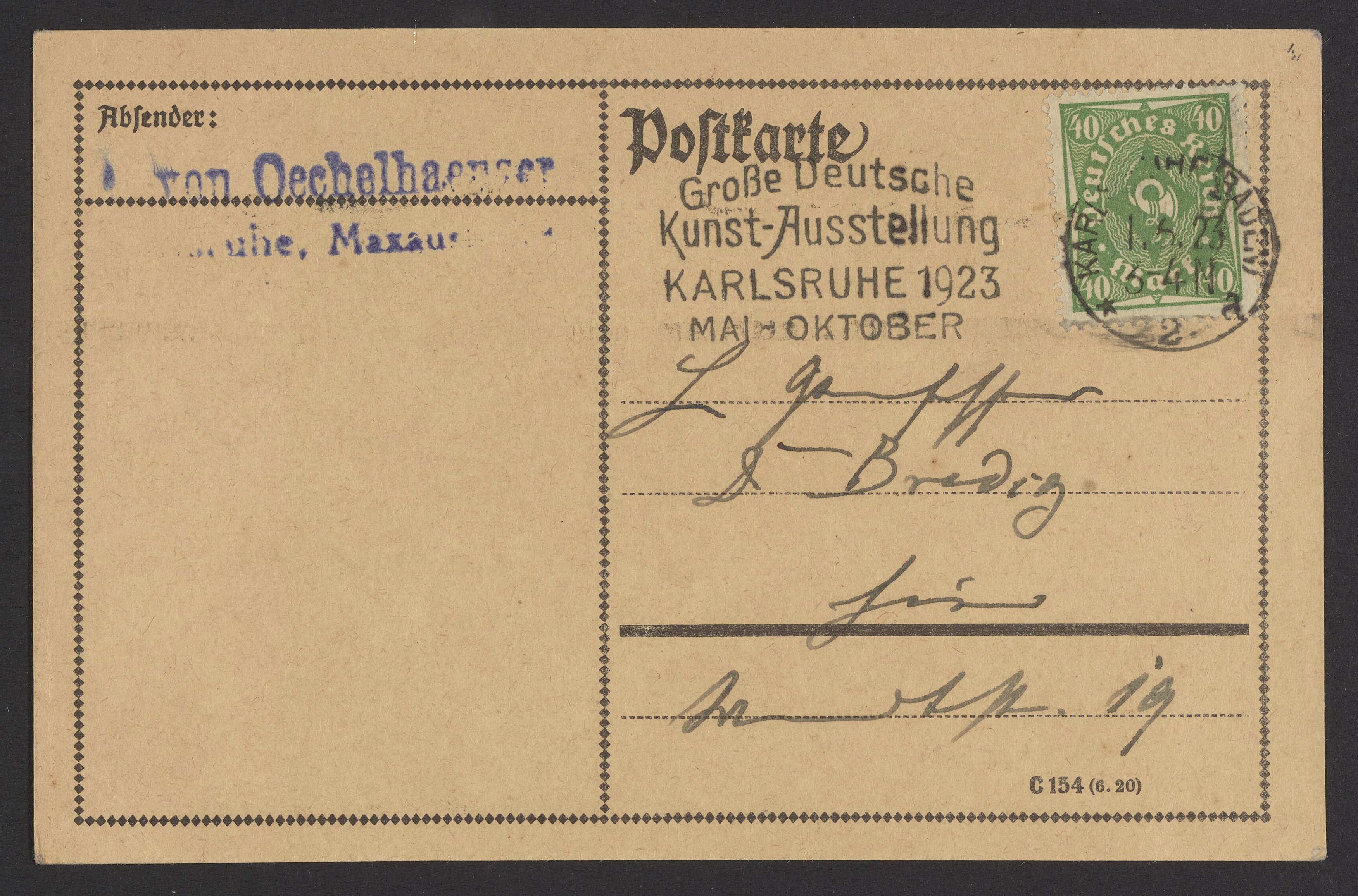 Postcard from Adolf von Oechelhäuser to Georg Bredig, May 1923