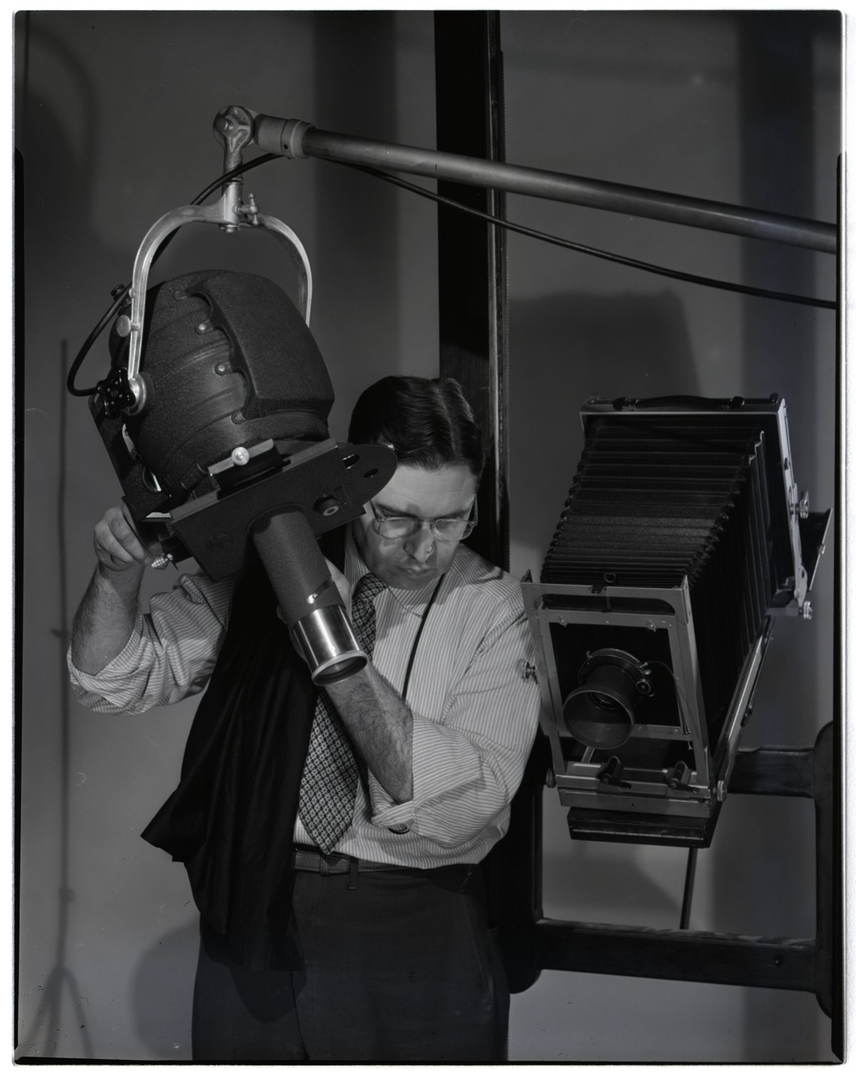 Dow Chemical Company. “Bill Shetzley at Work in Dow Photographic Laboratory,” January 13, 1947. Dow Chemical Company Historical Image Collection, Box 3, Folder Places--Dow Photographic Dept. Science History Institute. Philadelphia. https://digital.sciencehistory.org/works/qf85nb87b.