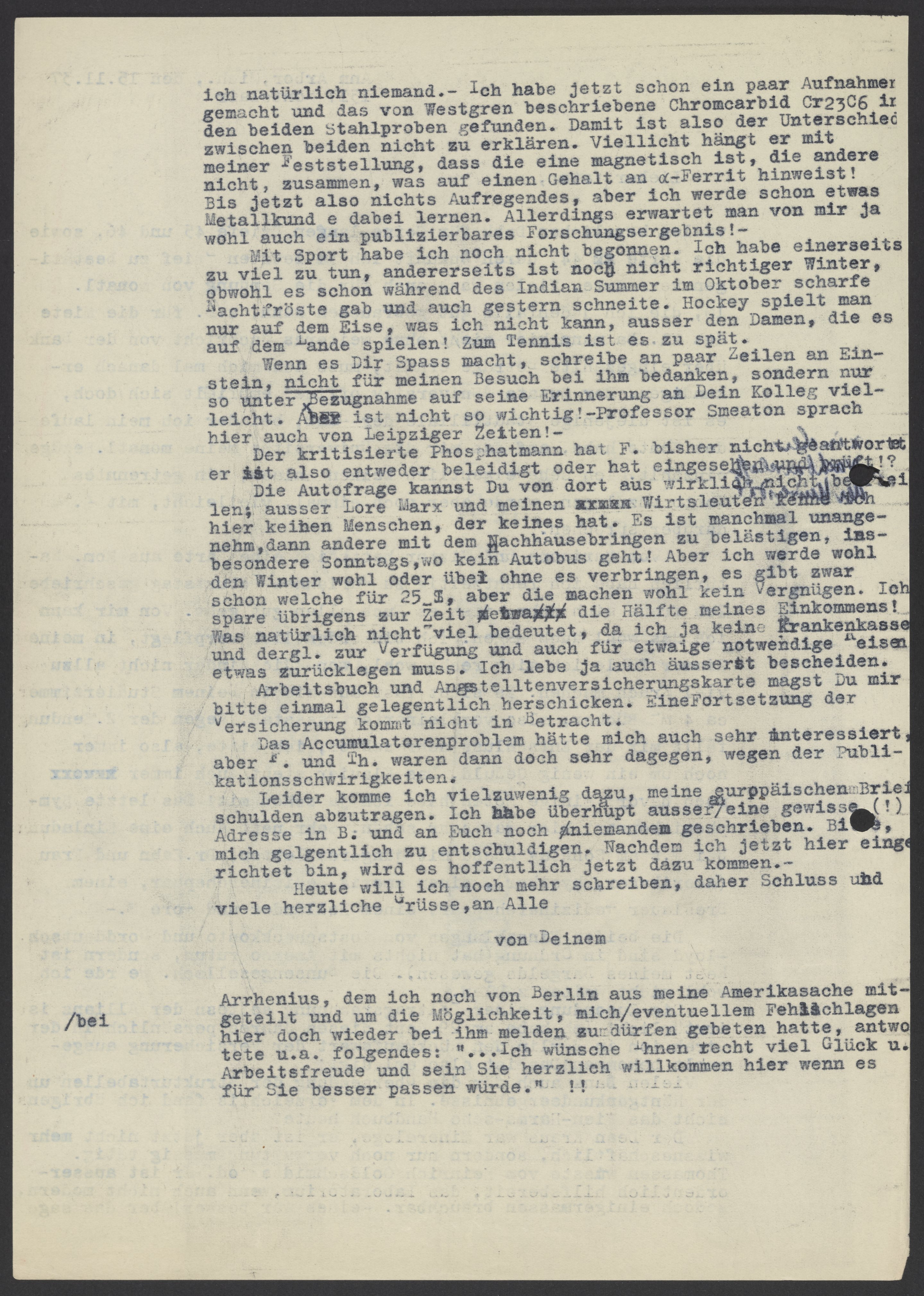 Leider komme ich vielzuwenig dazu, meine europäischen Briefschulden abzutragen. Ich habe überhaupt ausser an / eine gewisse (!) Adresse in B. und an Euch noch niemanden geschrieben. Bitte, mich gelegentlich zu entschuldigen. Nachdem ich jetzt hier eingerichtet bin, wird es hoffentlich jetzt dazu kommen. Heute will ich noch mehr schreiben, daher Schluss und viele herzliche Grüsse an Alle