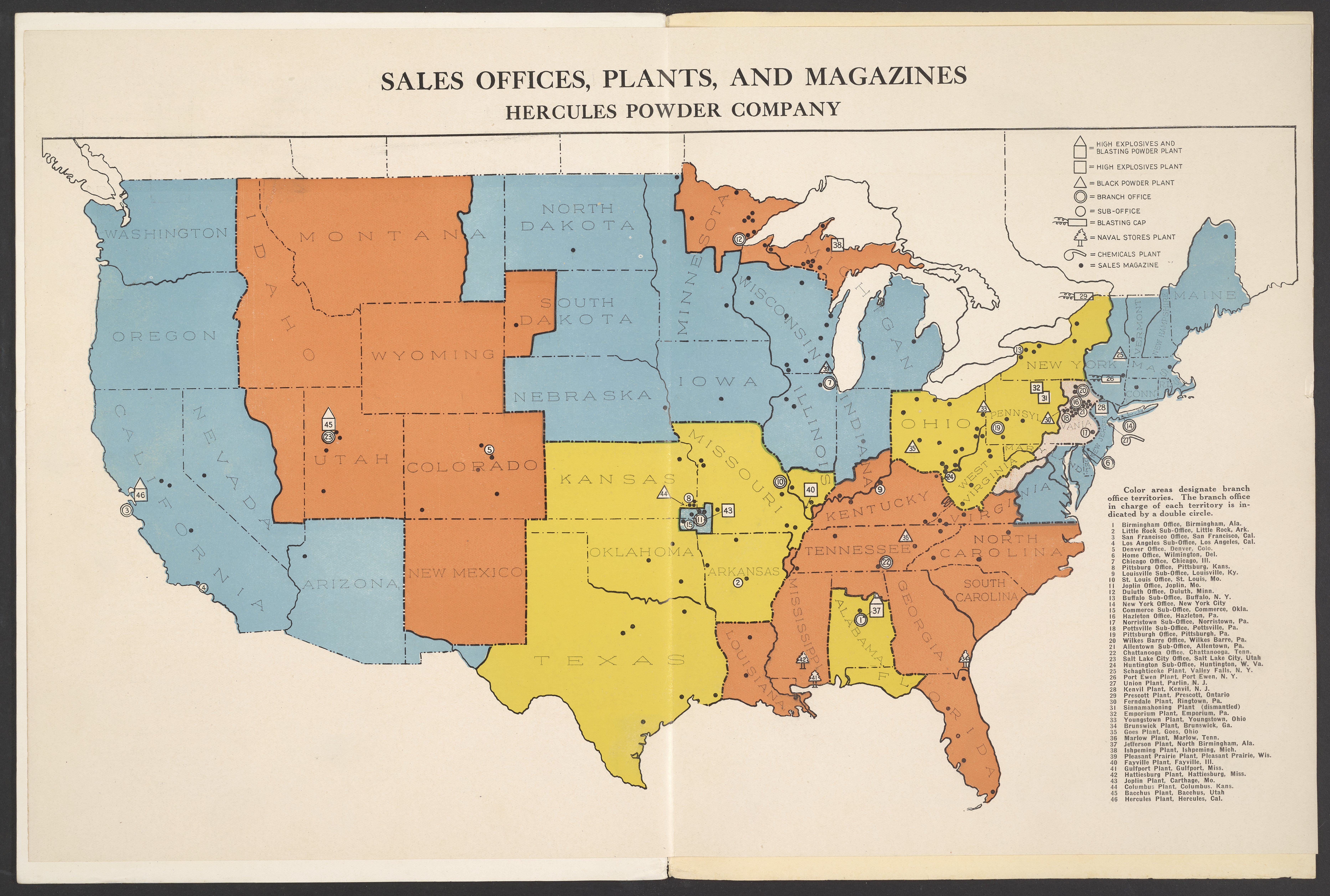 Small JPG1200 x 1587px — 359 KBLarge JPG2880 x 3809px — 2.4 MBFull-sized JPG3795 x 5019px — 3.9 MBOriginal fileTIFF — 3795 x 5019px — 54.6 MBMarch 1922 issue of The Hercules Mixer, the Hercules Powder Company's in-house publication that provided both historical and technical information and also offered a glimpse of employees' day-to-day lives at the company. Includes a map of the Sales Offices, Plants, and Magazines of the Hercules Powder Company.
