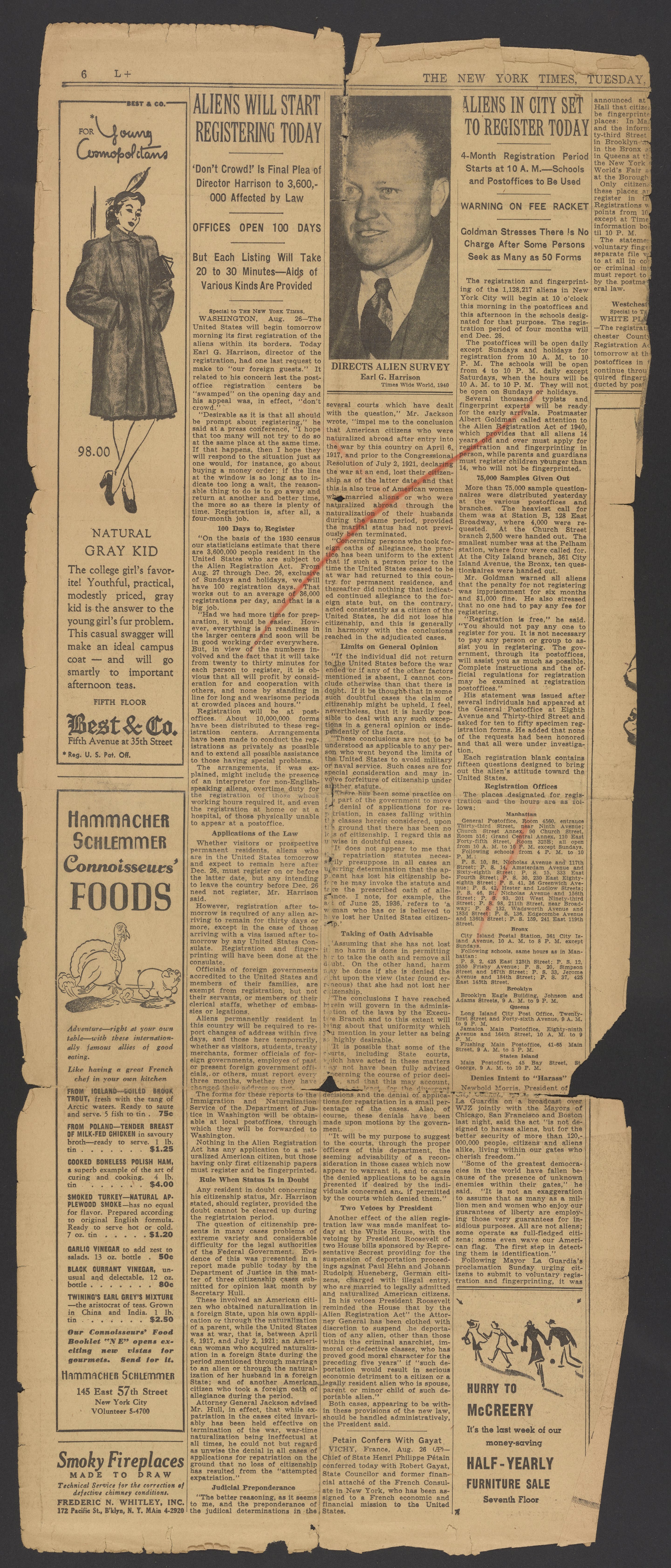 “Aliens Will Start Registering Today.” New York, New York: New York times, August 27, 1940. Papers of Georg and Max Bredig, Box 10, Folder 26. Science History Institute. Philadelphia. https://digital.sciencehistory.org/works/qkgxmm6.