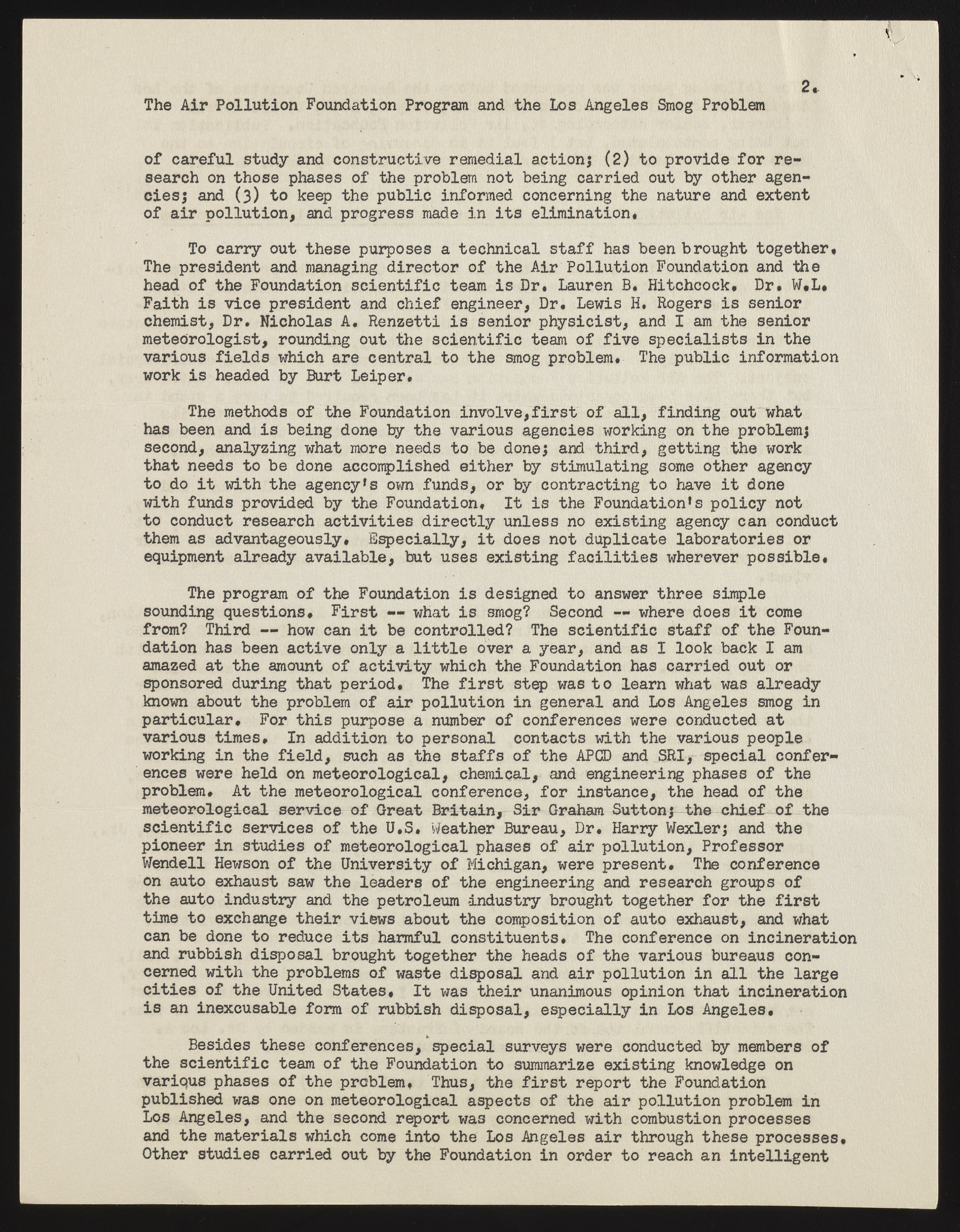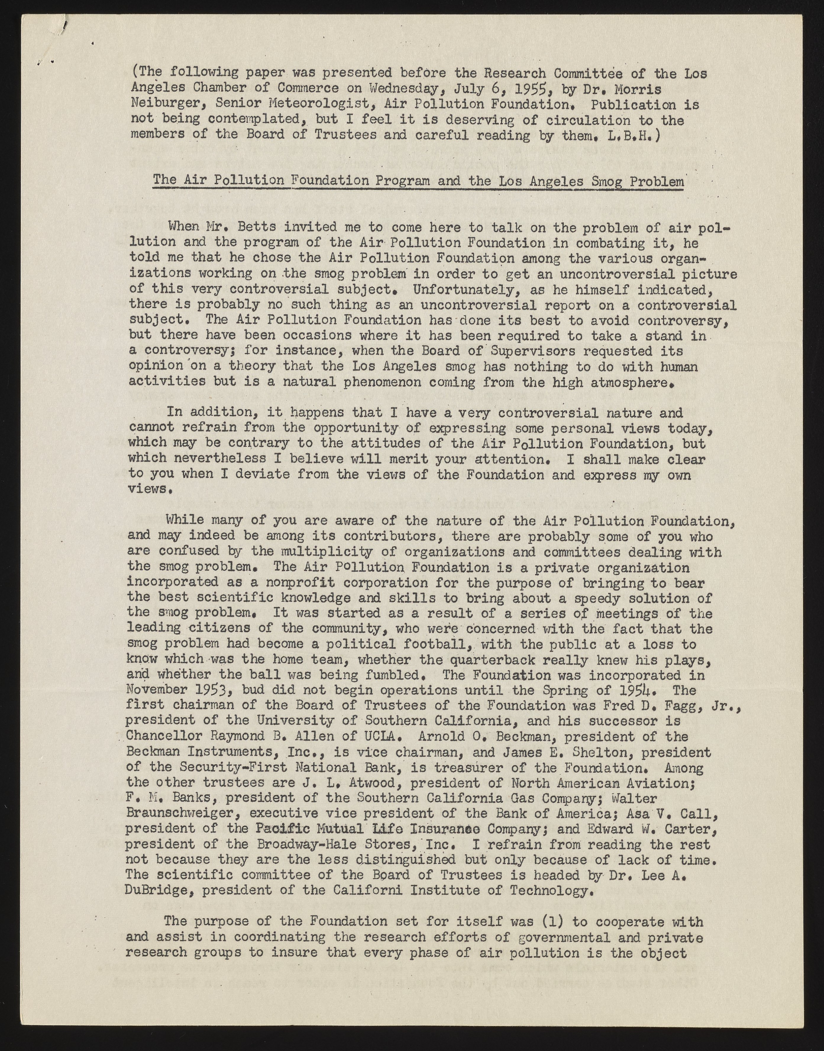 The Air Pollution Foundation and the Los Angeles Smog Problem