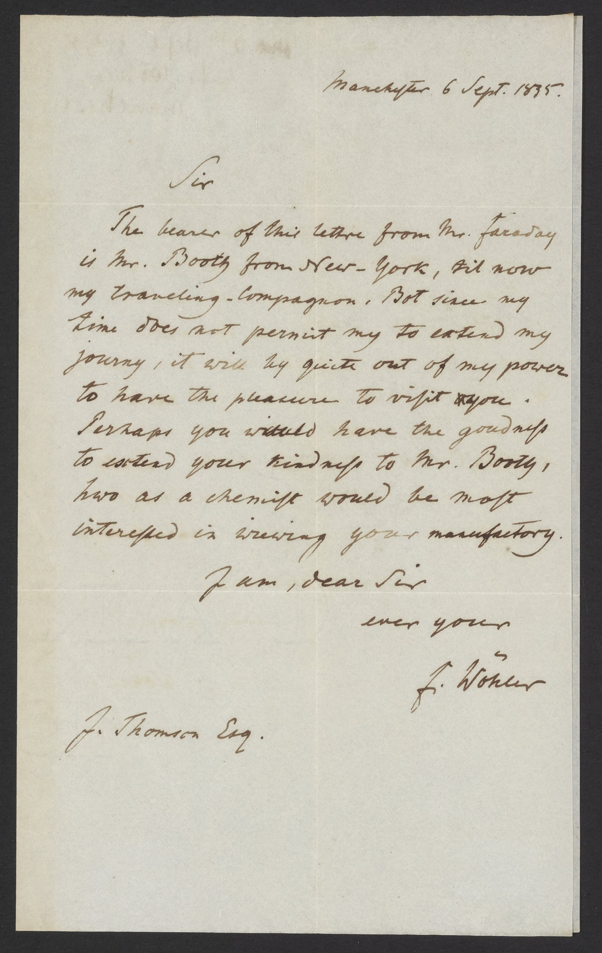 Letter from Friedrich Wöhler to J. Thompson Esq., September 6, 1835