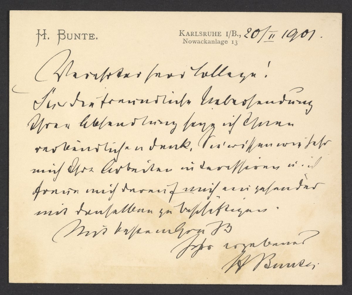 Letter from Hans Bunte to Georg Bredig, February 1901
