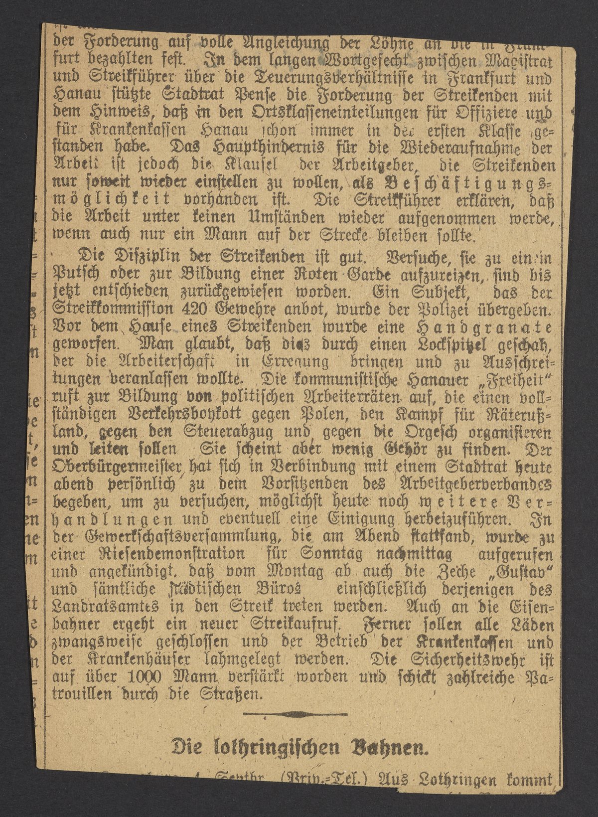 An article clipping from the Frankfurter Zeitung, a German-language newspaper published from 1856 to 1943. In Nazi Germany, it was considered the only mass publication not completely controlled by the Propagandaministerium under Joseph Goebbels.