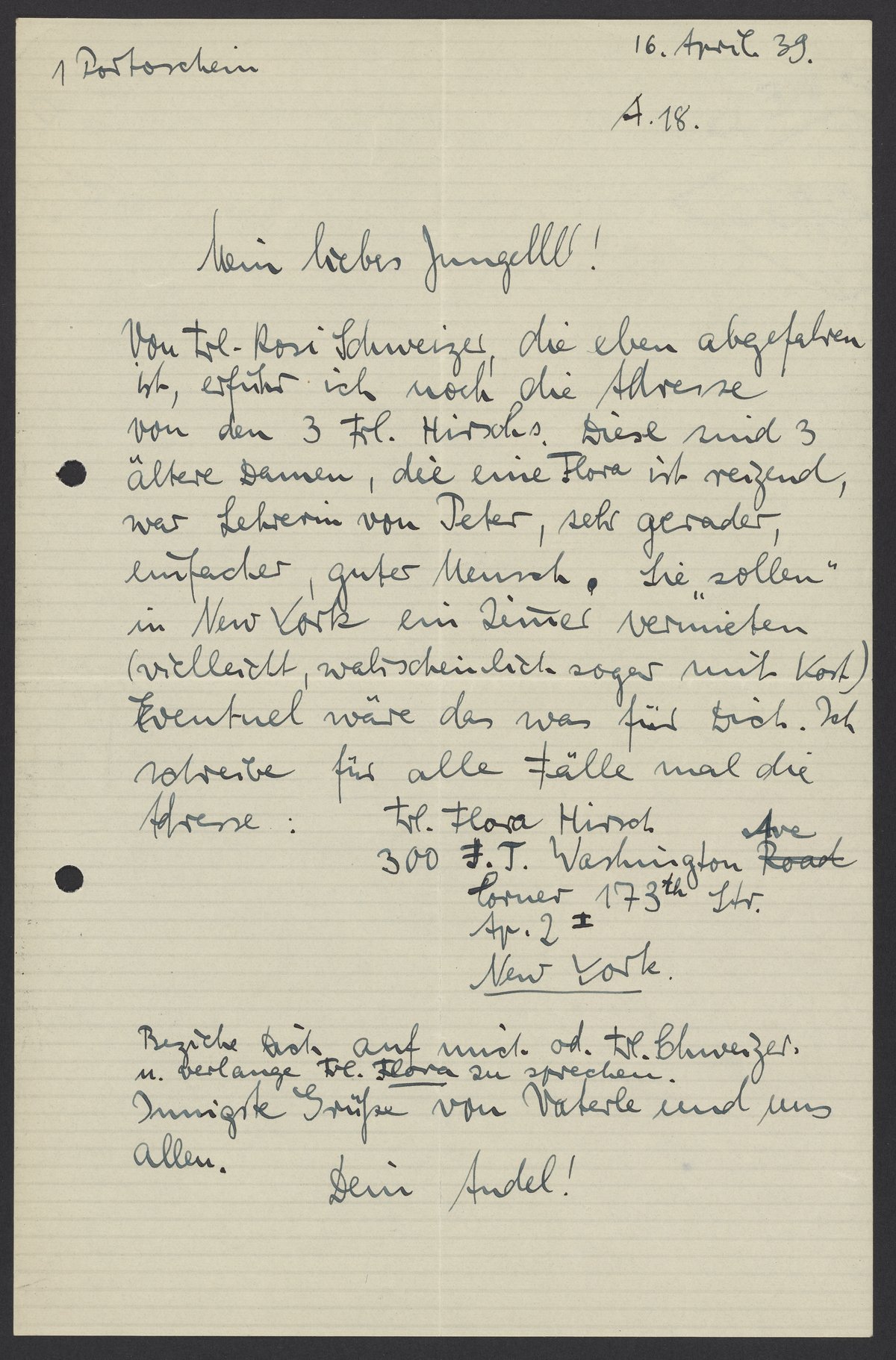 Letter from Marianne Homburger to Max Bredig, April 16, 1939