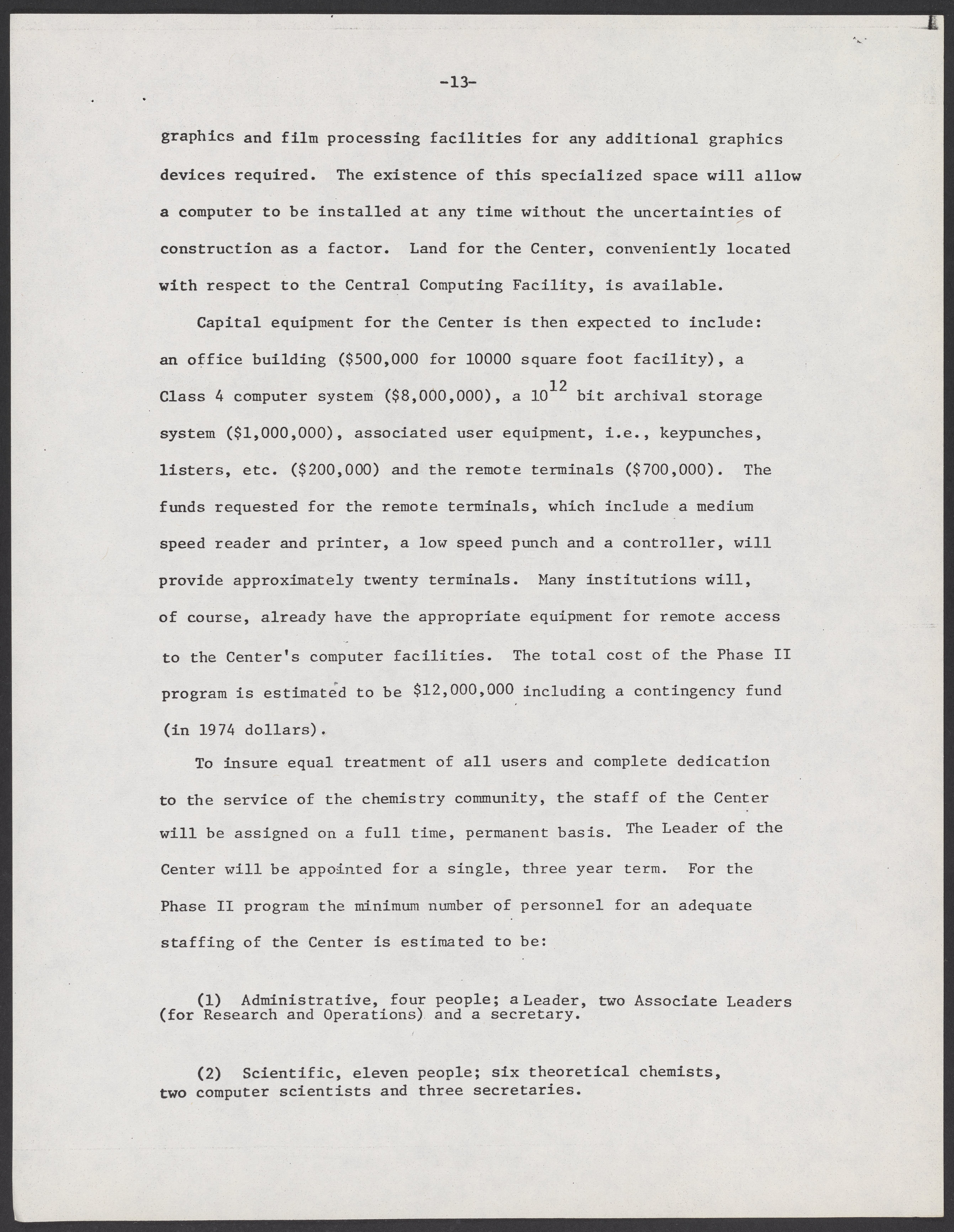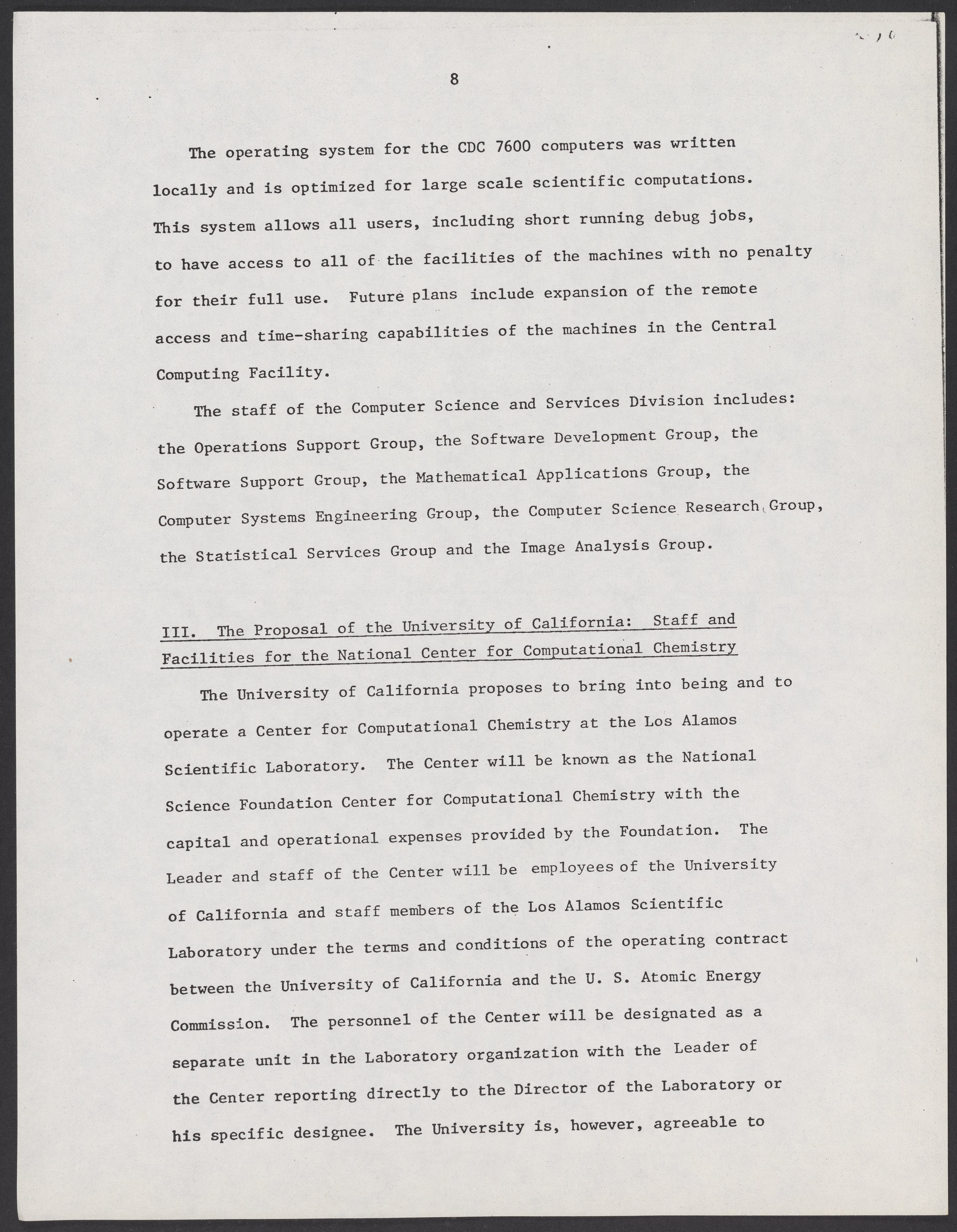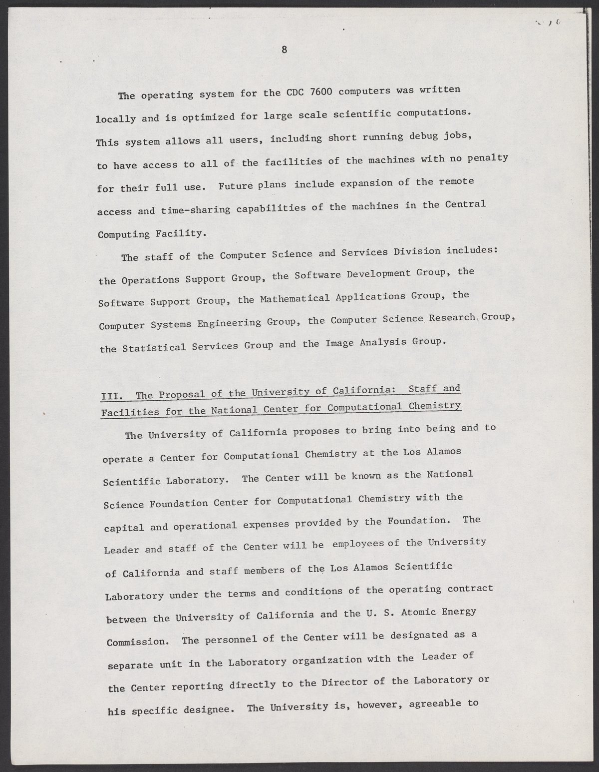 Draft Proposal for a National Center for Computational Chemistry at the Los Alamos Scientific Laboratory of the University of California