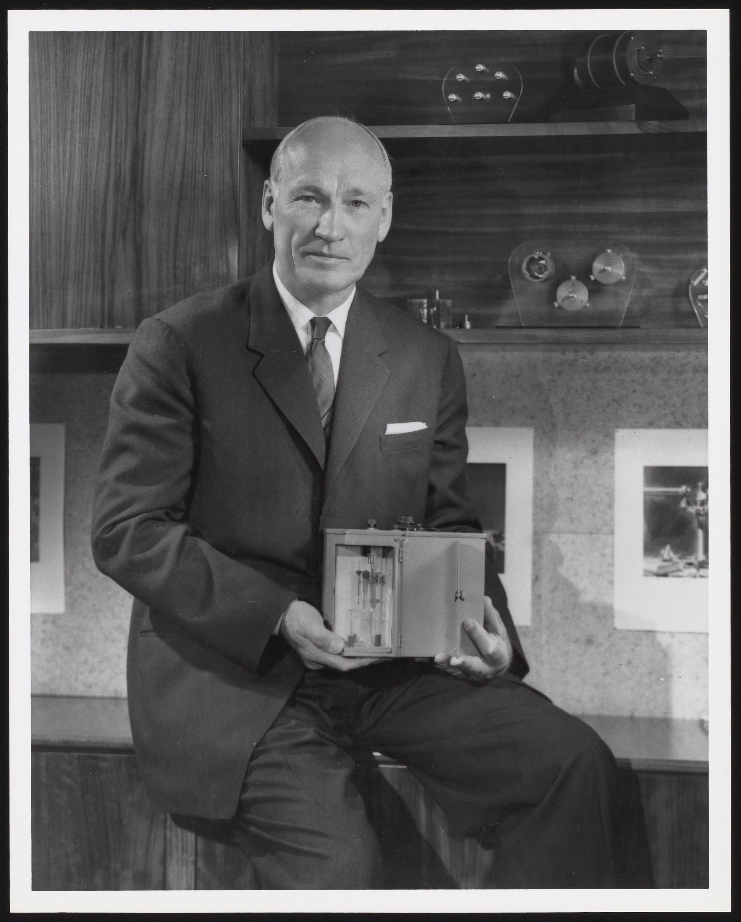 “Portrait of Arnold O. Beckman (1900-2004),” 1960. Beckman Historical Collection, Box 55, Folder 8. Science History Institute. Philadelphia. https://digital.sciencehistory.org/works/qz20ss52b.