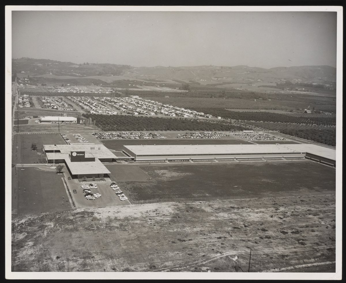 Small JPG1200 x 982px — 237 KBLarge JPG2880 x 2356px — 975 KBFull-sized JPG3273 x 2678px — 1.2 MBOriginal fileTIFF — 3273 x 2678px — 25.1 MBIn 1954, Beckman Instruments' headquarters moved from Pasadena to Fullerton, California.