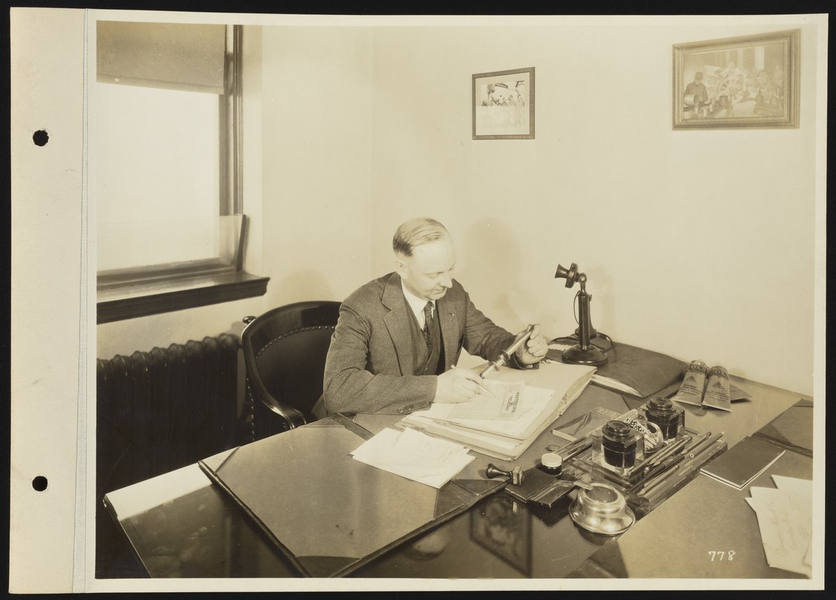 Dearborn Chemical Company. “E.M. Converse at Dearborn Chemical Company Offices,” 1927–1928. BetzDearborn, Incorporated Records, Box 17, Folder 16. Science History Institute. Philadelphia. https://digital.sciencehistory.org/works/r207tq24x.