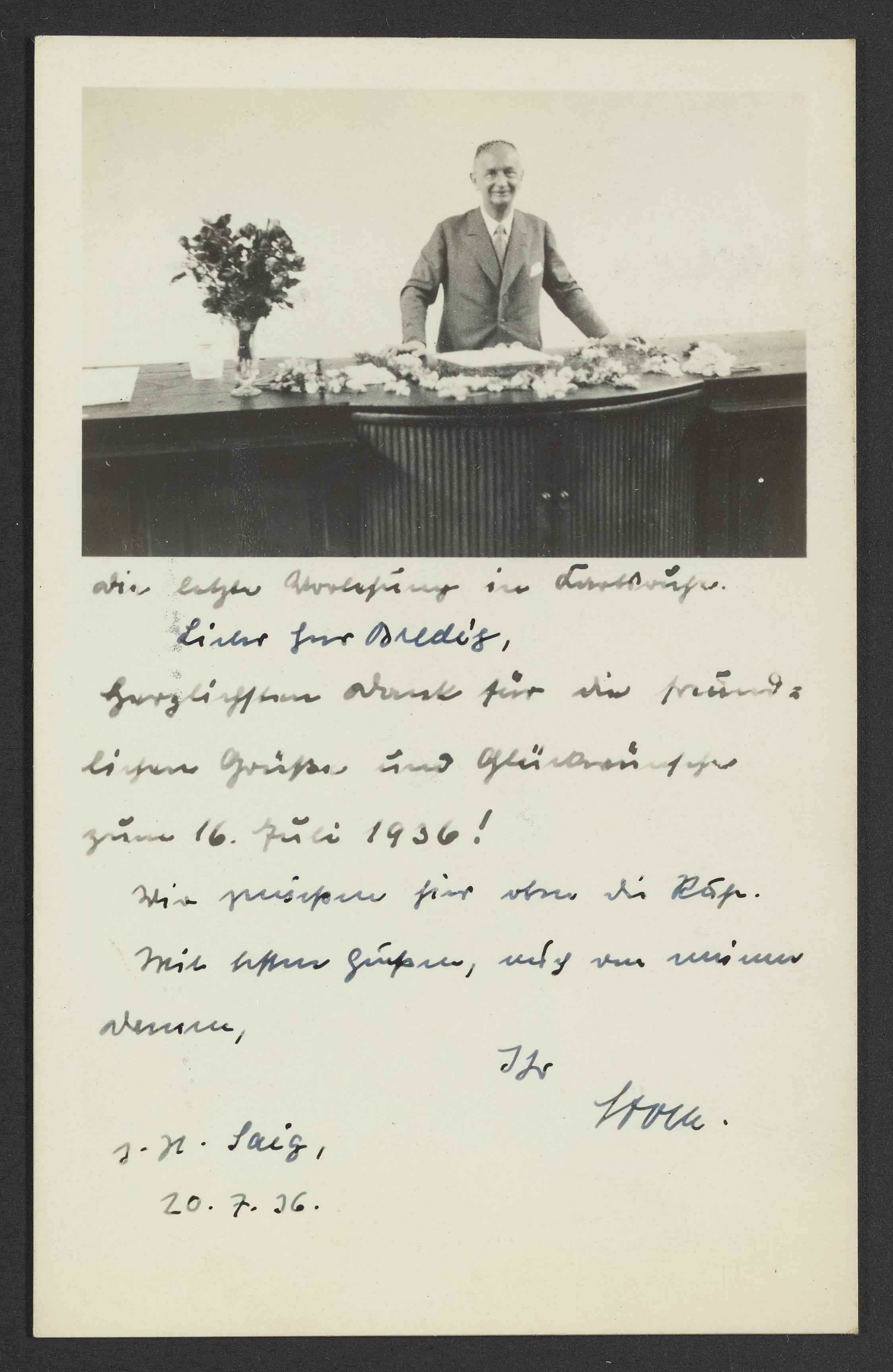 Postcard to Georg Bredig from Alfred Stock, July 1936