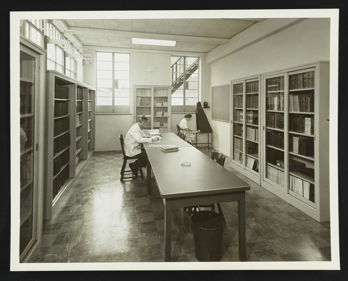 “Library at Althouse Chemical Company Facility,” 1951. Photographs from the Records of the Althouse, Bates, and Crompton Chemical Companies, Box 1. Science History Institute. Philadelphia. https://digital.sciencehistory.org/works/r781wg03d.
