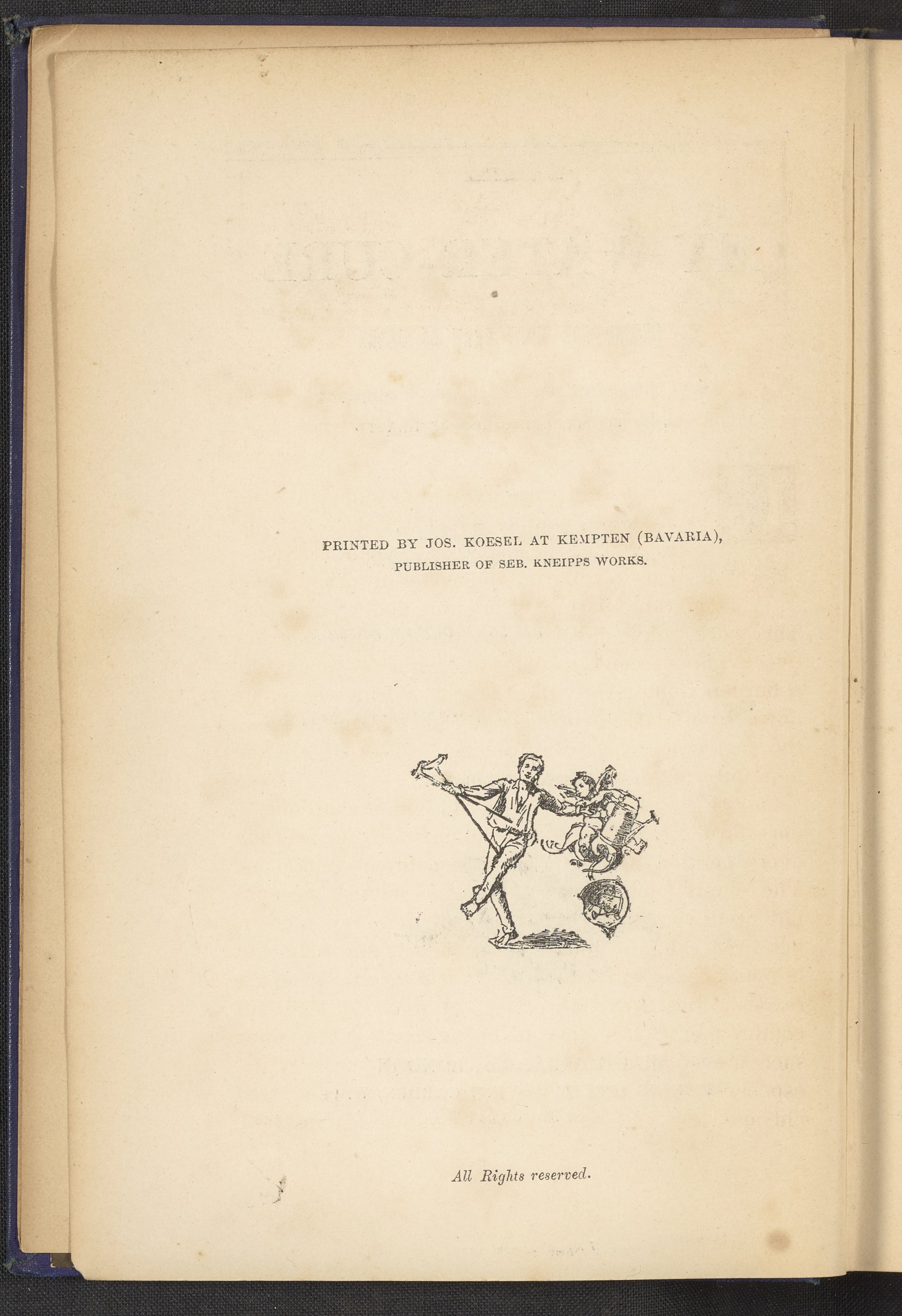 Kneipp, Sebastian. “My Water-Cure.” London, England: H. Grevel & Co., 1892. RM817.K8 .K54 1892. Science History Institute. Philadelphia. https://digital.sciencehistory.org/works/rcki24p.