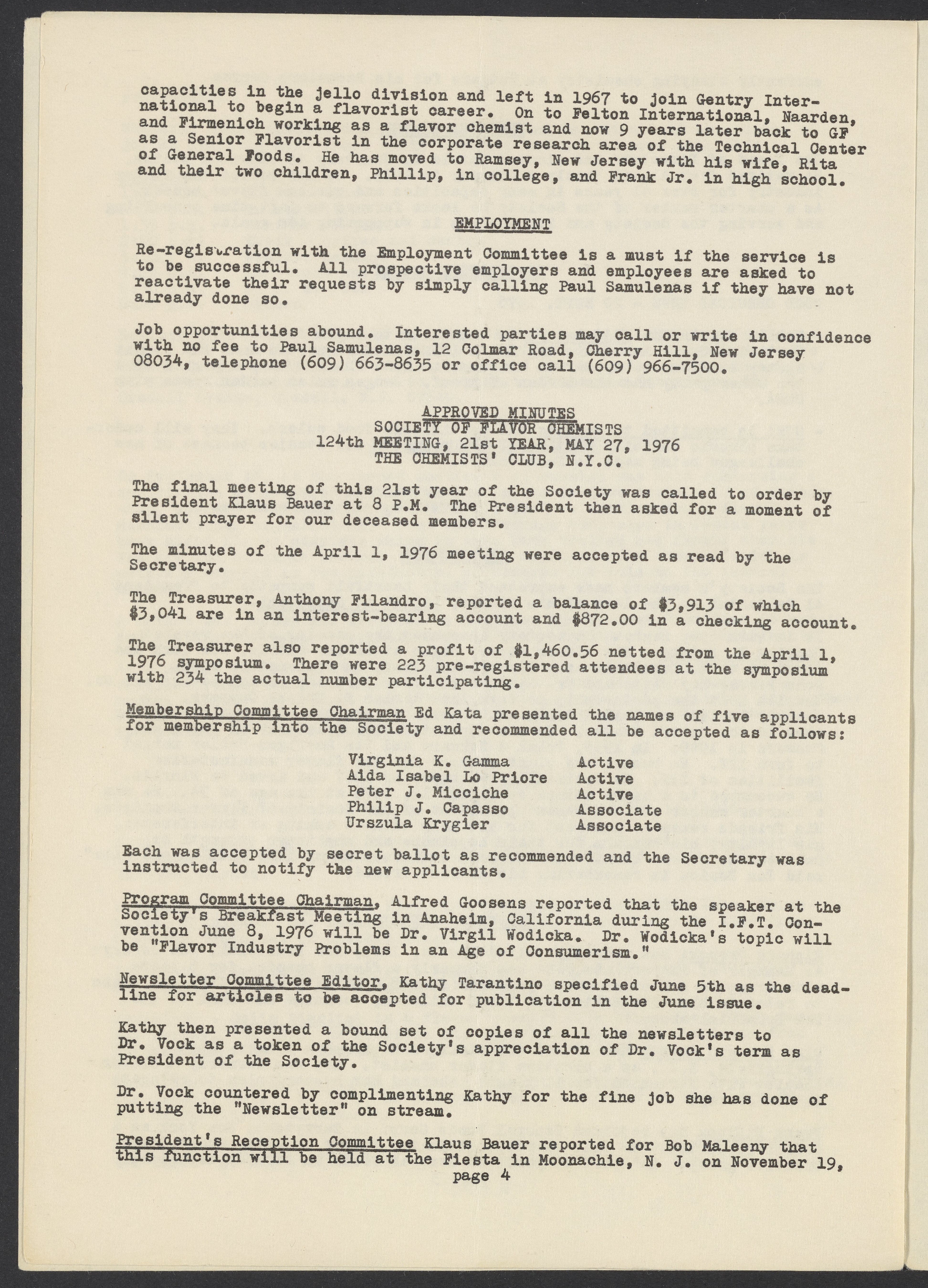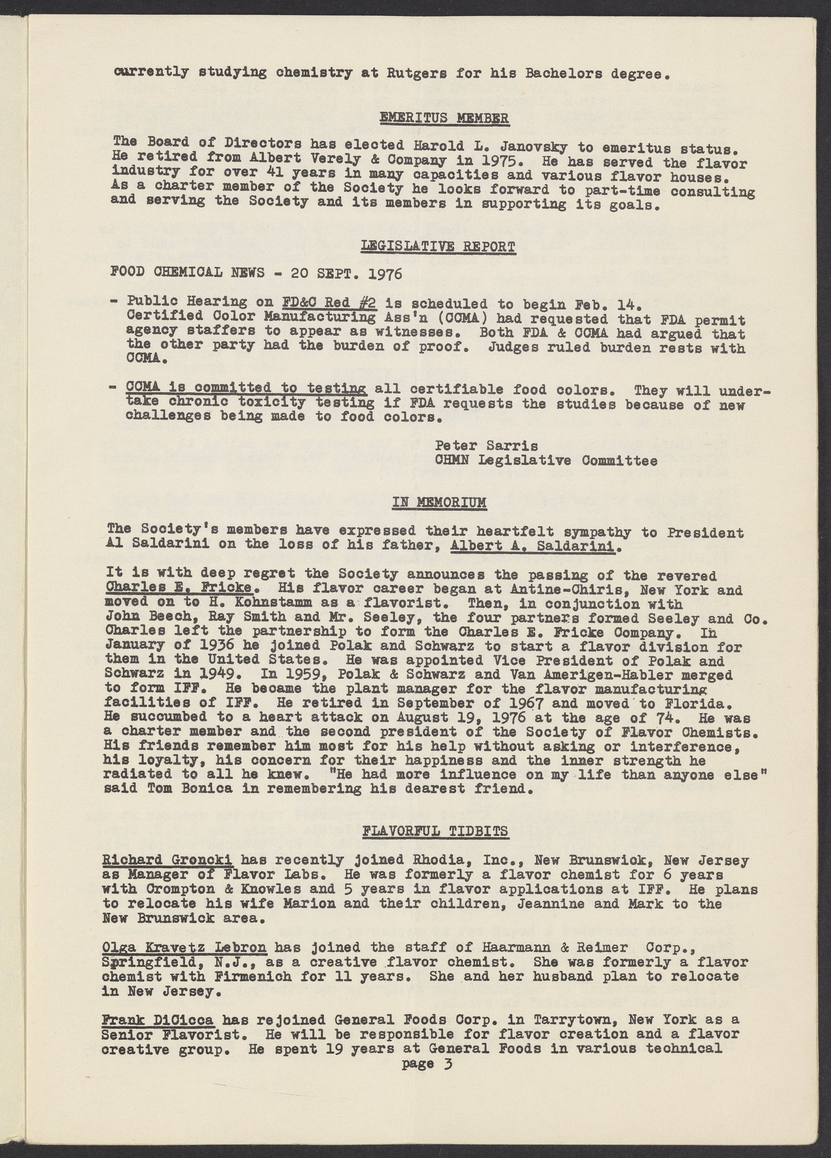 Society of Flavor Chemists. “Society of Flavor Chemists Newsletter, October 1976,” October 1976. Society of Flavor Chemists Newsletters and Certificate of Incorporation, Box 1, Folder 1. Science History Institute. Philadelphia. https://digital.sciencehistory.org/works/rfjzdyh.