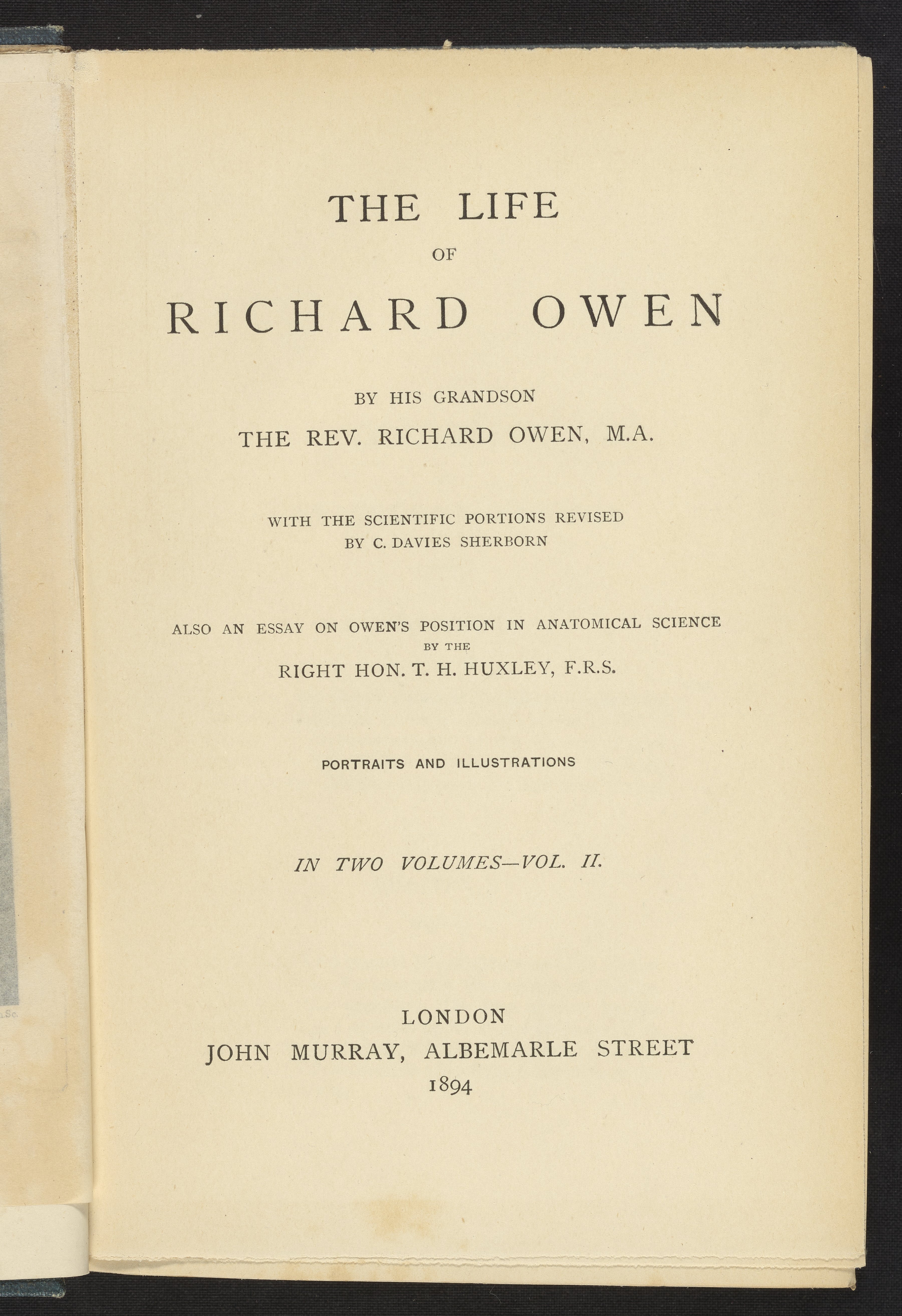 Owen, Richard, Rev. “The Life of Richard Owen, Volume 2.” London, England: John Murray (Firm), 1894. https://digital.sciencehistory.org/works/roj5mot.