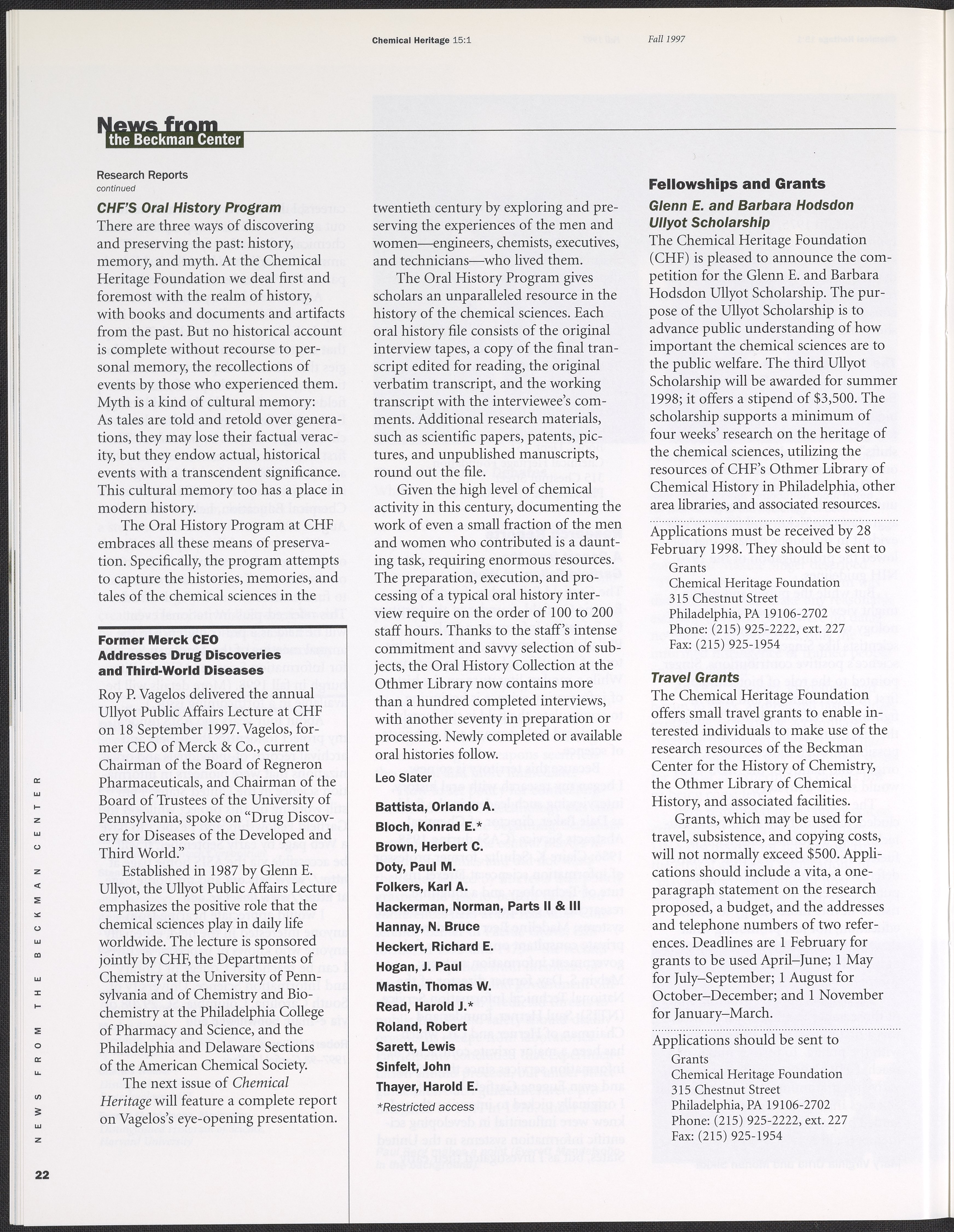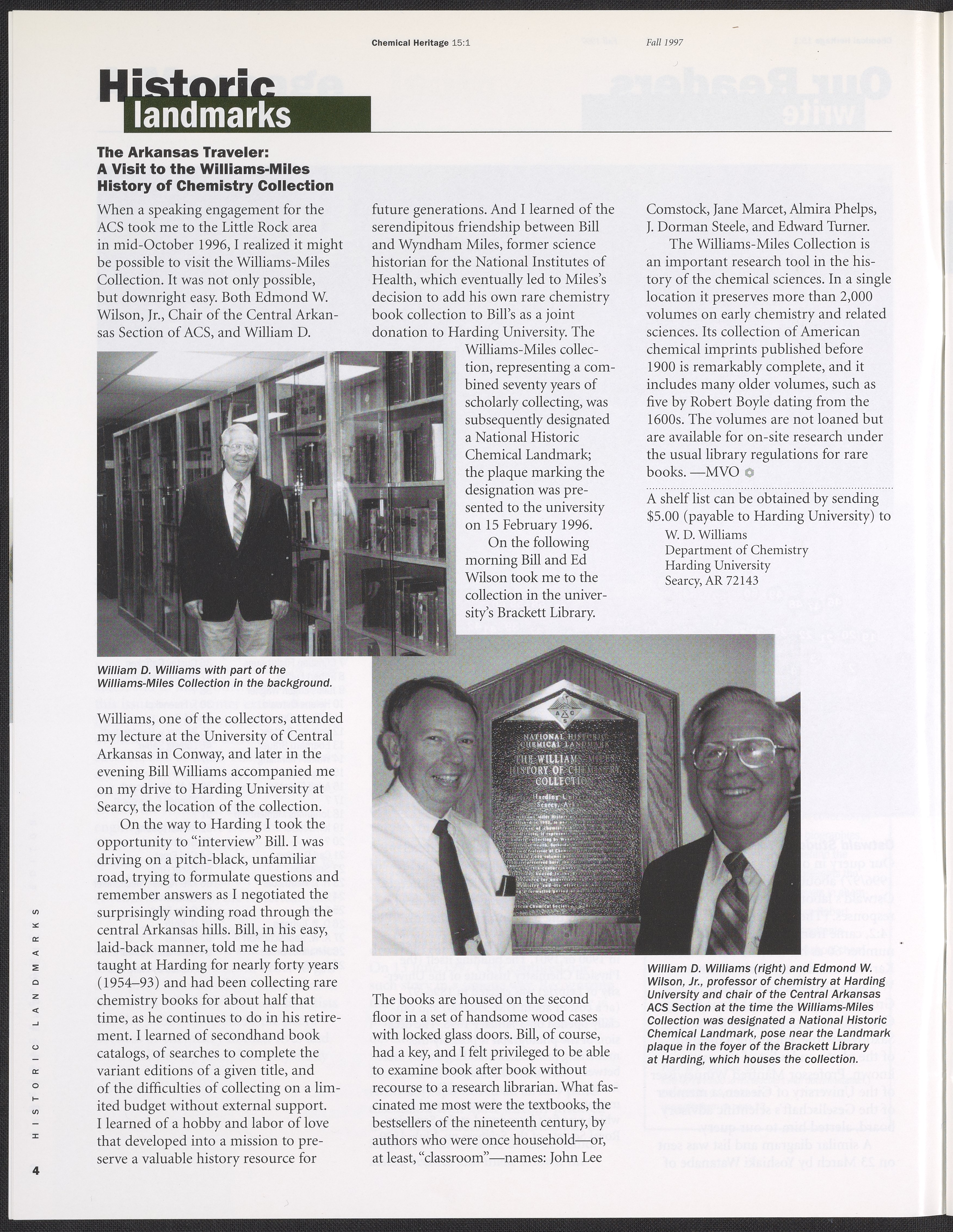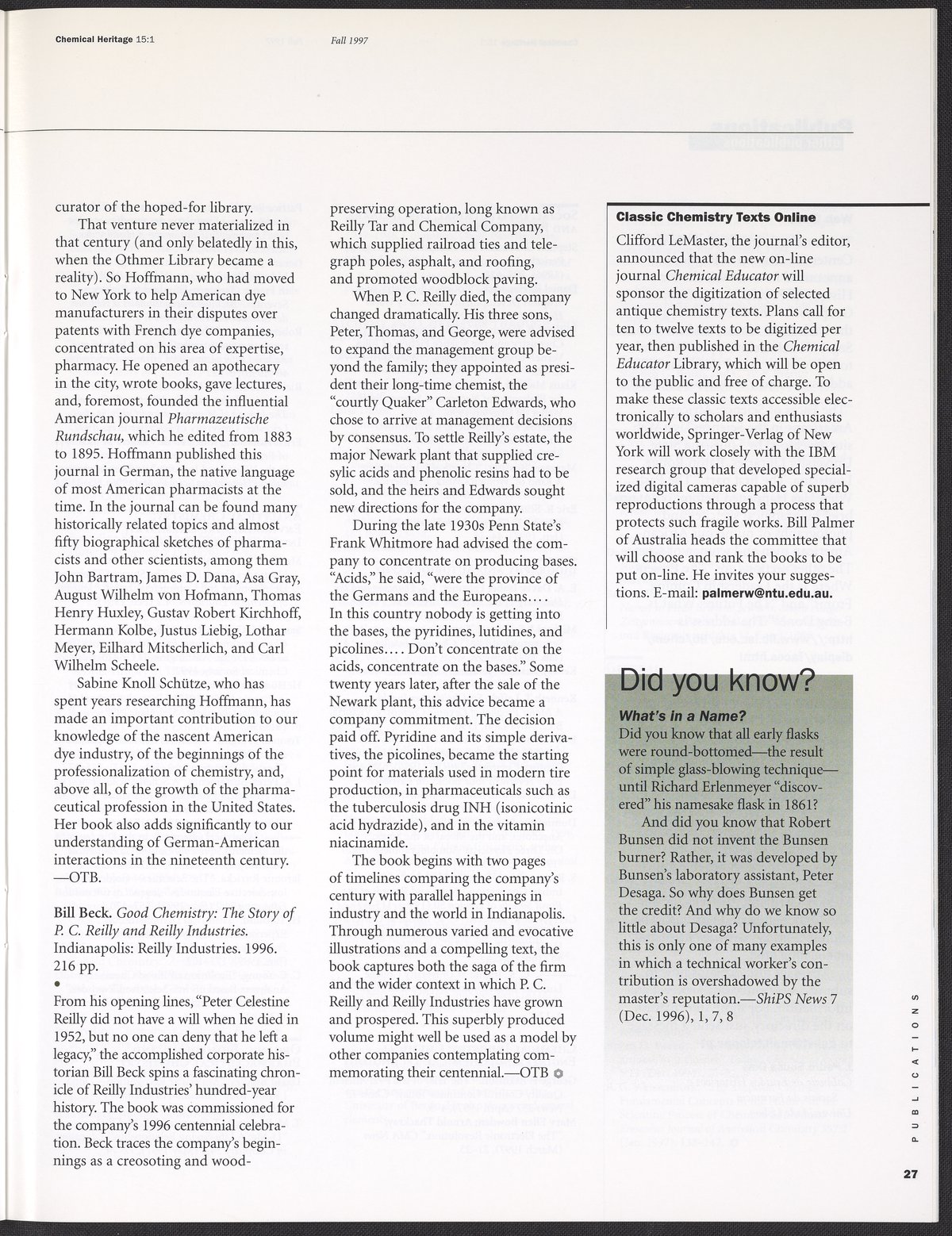 Chemical Heritage, Volume 15 Number 1
