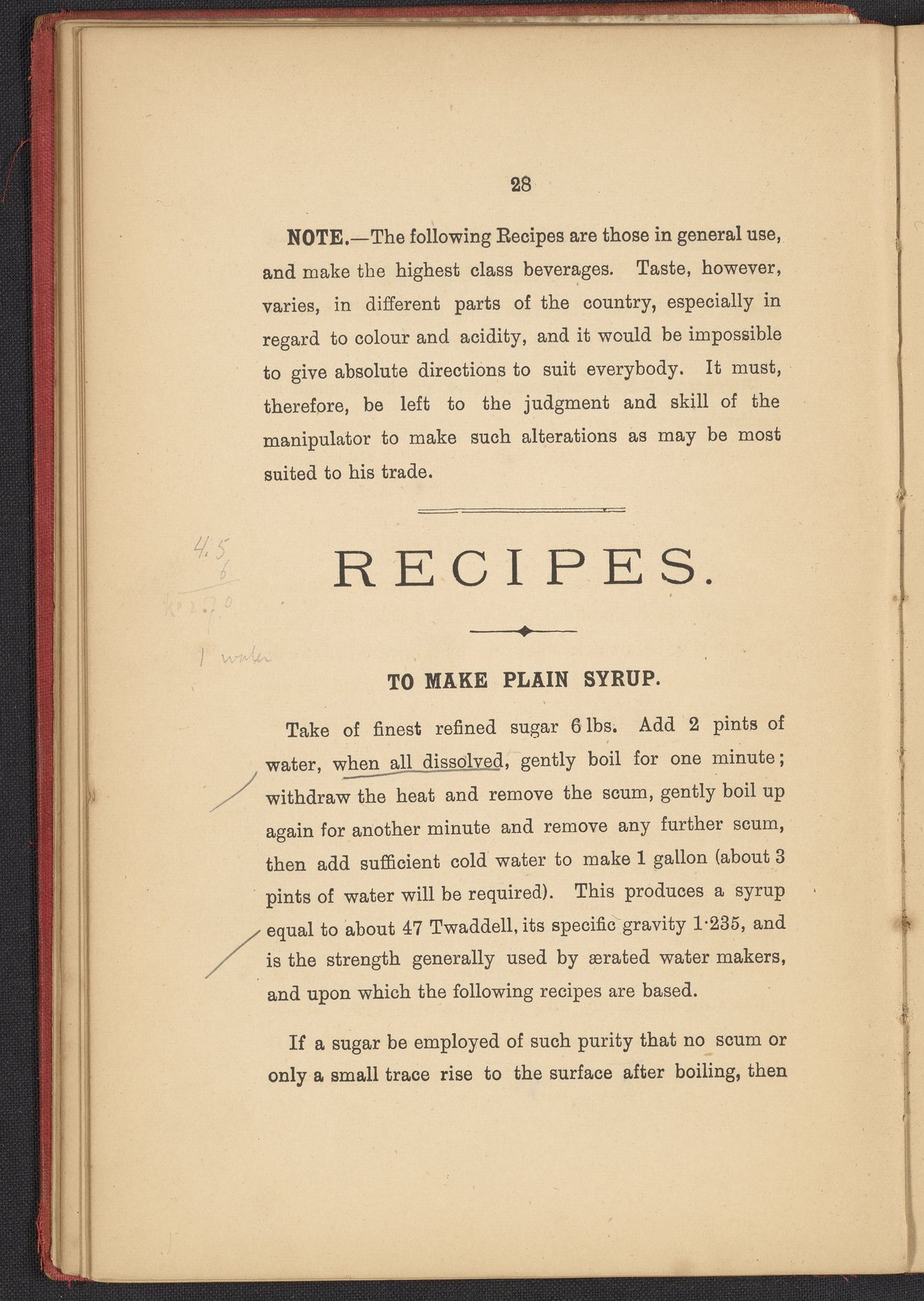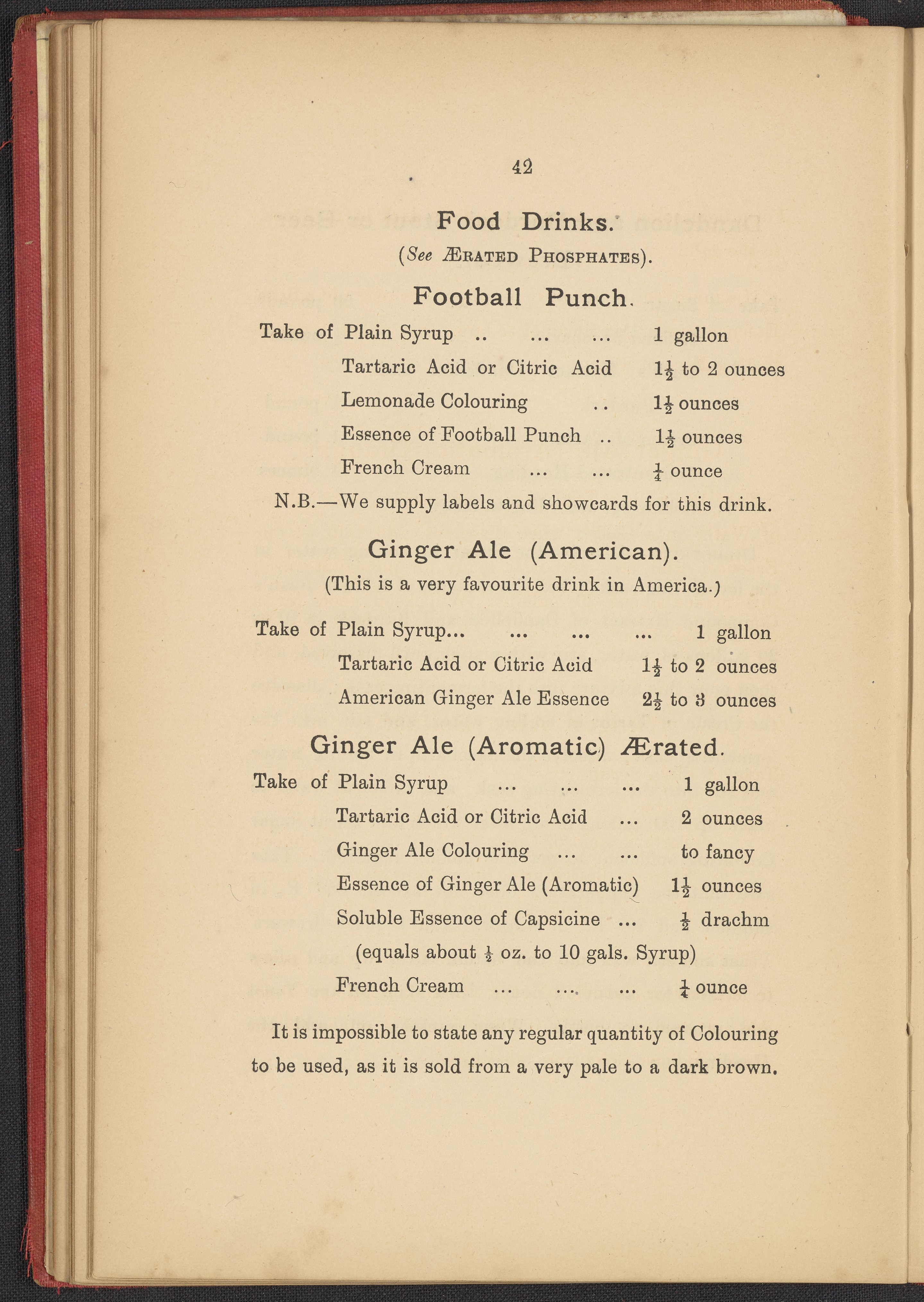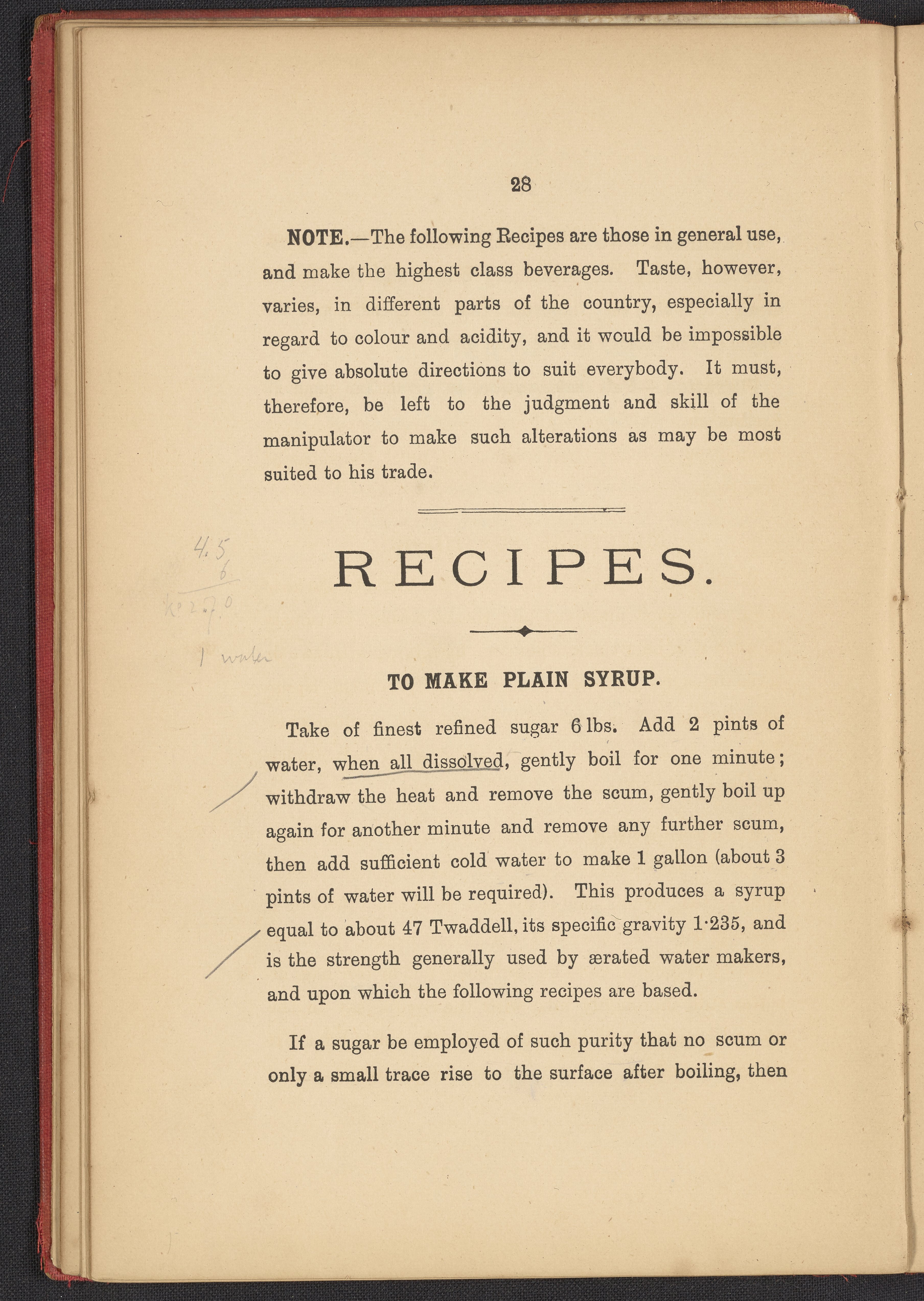 Bush, William Ernest. “Recipes for the Manufacture of Aerated & Mineral Waters and Non-Alcoholic Cordials.” London, England: Little & Son Printers, 1897. TP625 .B87 1897. Science History Institute. Philadelphia. https://digital.sciencehistory.org/works/ru09hu5.