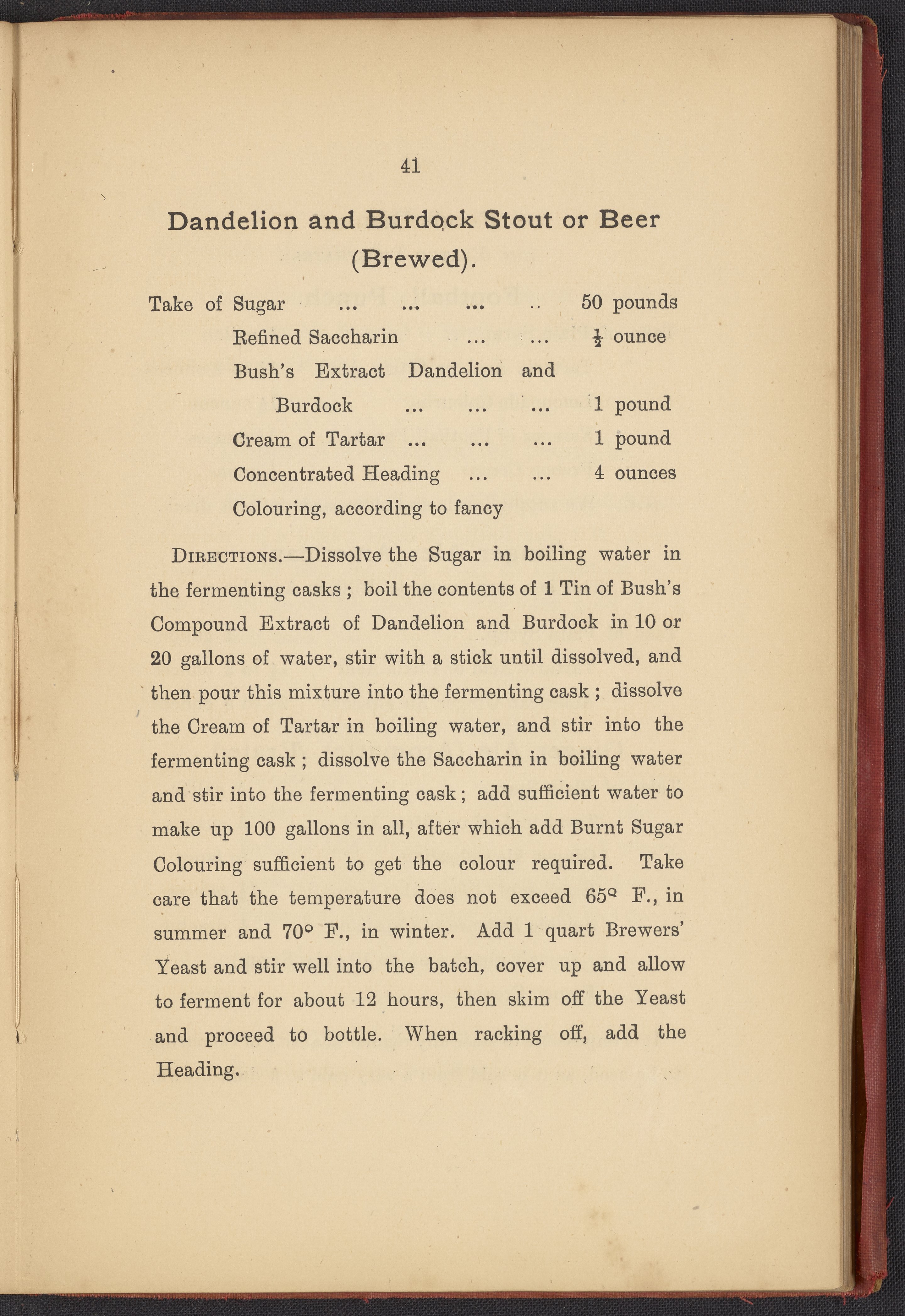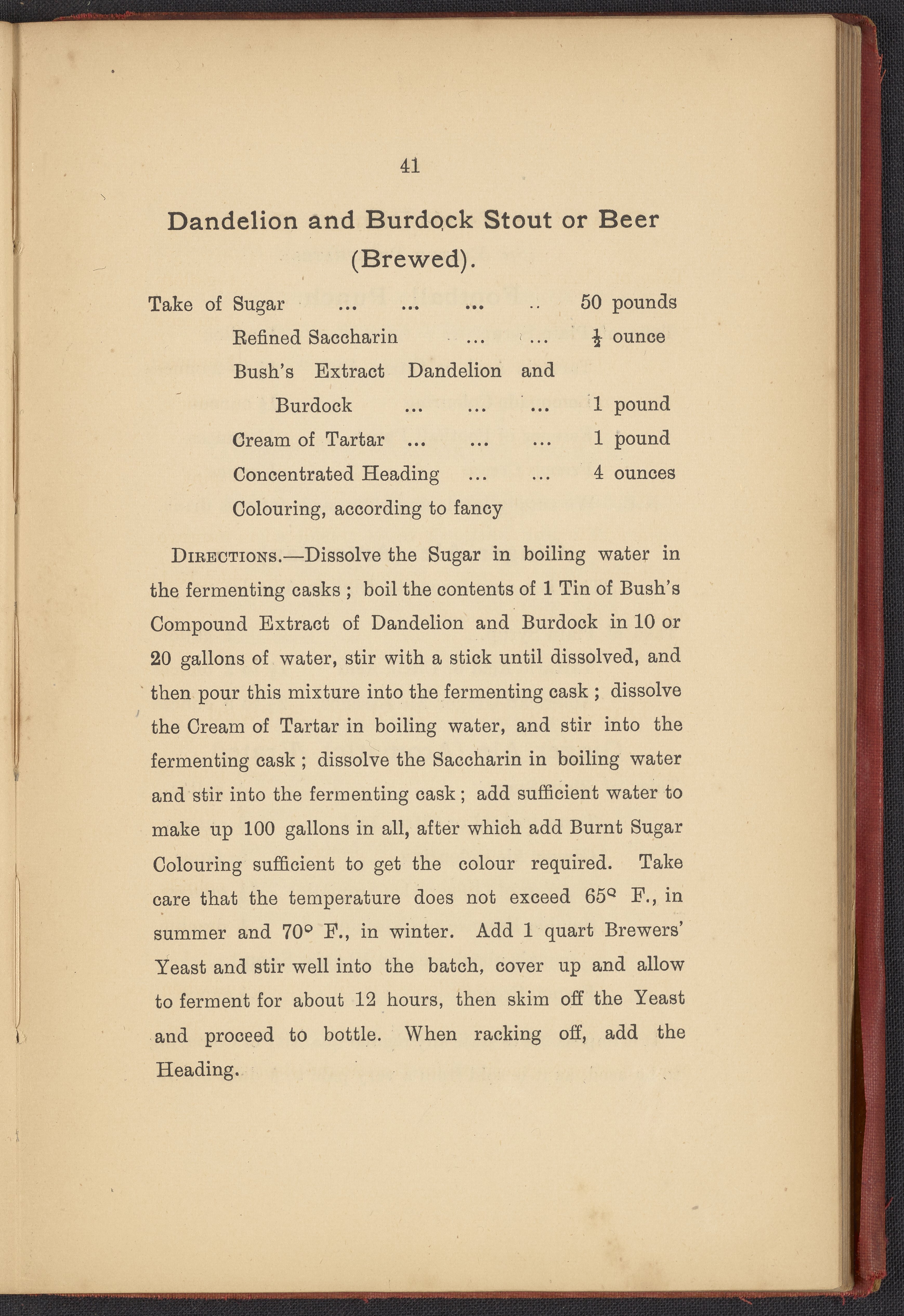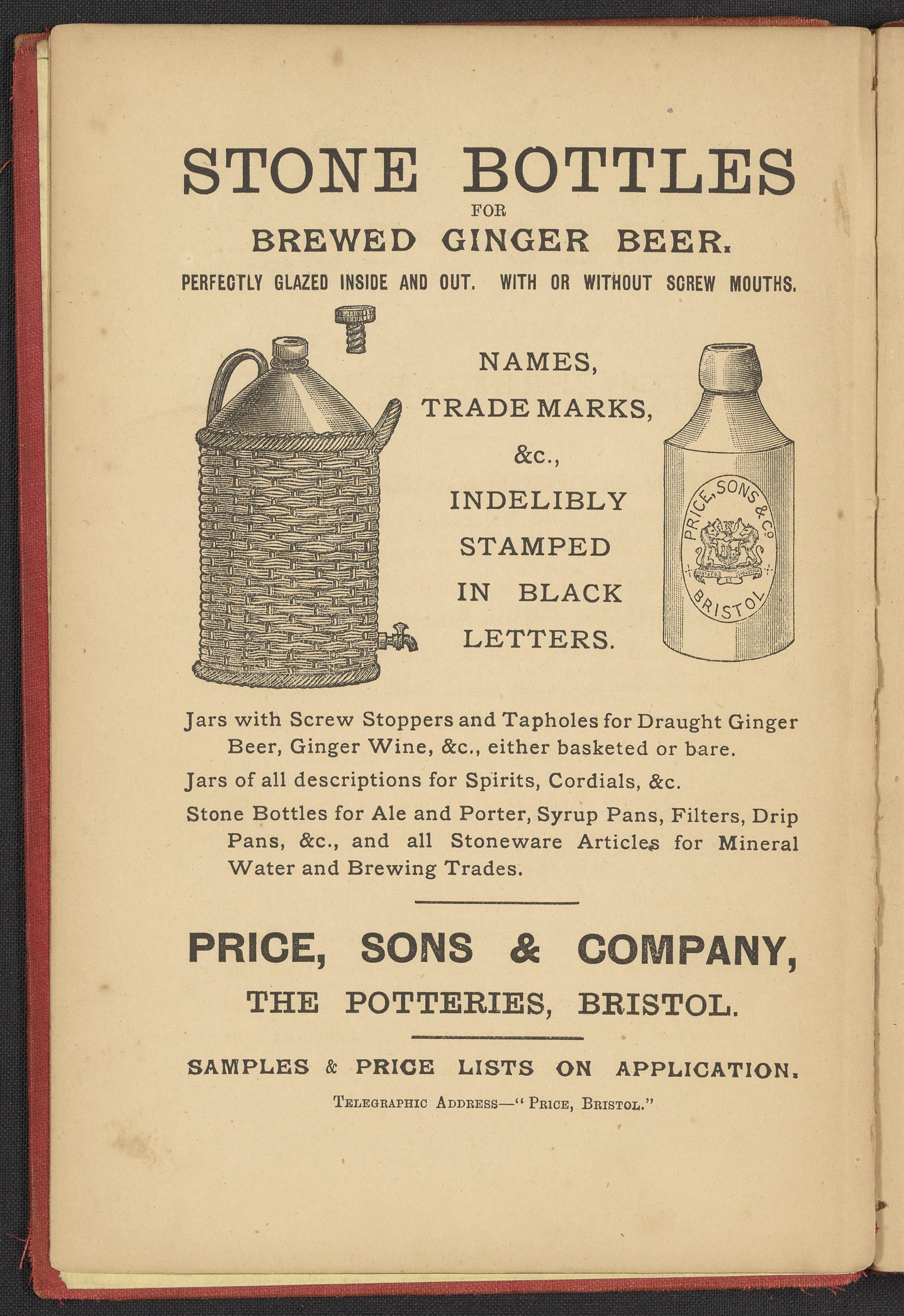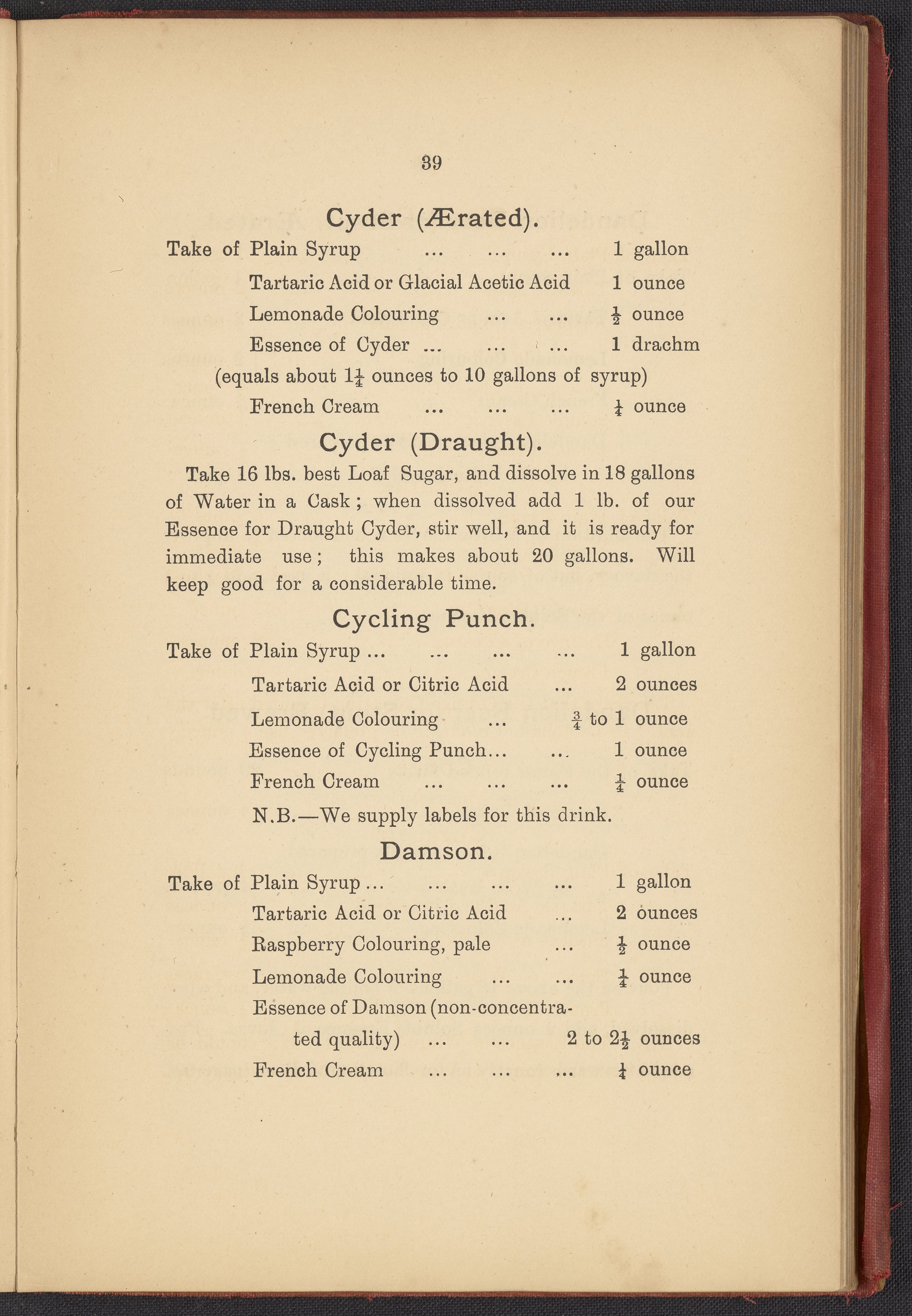 Small JPG1200 x 1749px — 527 KBFull-sized JPG2392 x 3486px — 1.8 MBOriginal fileTIFF — 2392 x 3486px — 23.9 MBWork containing a series of recipes for a variety of non-alcoholic beverages including aerated and mineral waters, dry fruit sodas, and non-excisable cordials using W. J. Bush & Co. brand flavors and syrups. W. J. Bush & Co., Ltd. was founded by William John Bush (-1889) circa 1851. The company is credited with being England's first maker of flavorings and essences. Bush's son, and author of this work, William Ernest, Baron de Bush, became head of the firm in 1889.