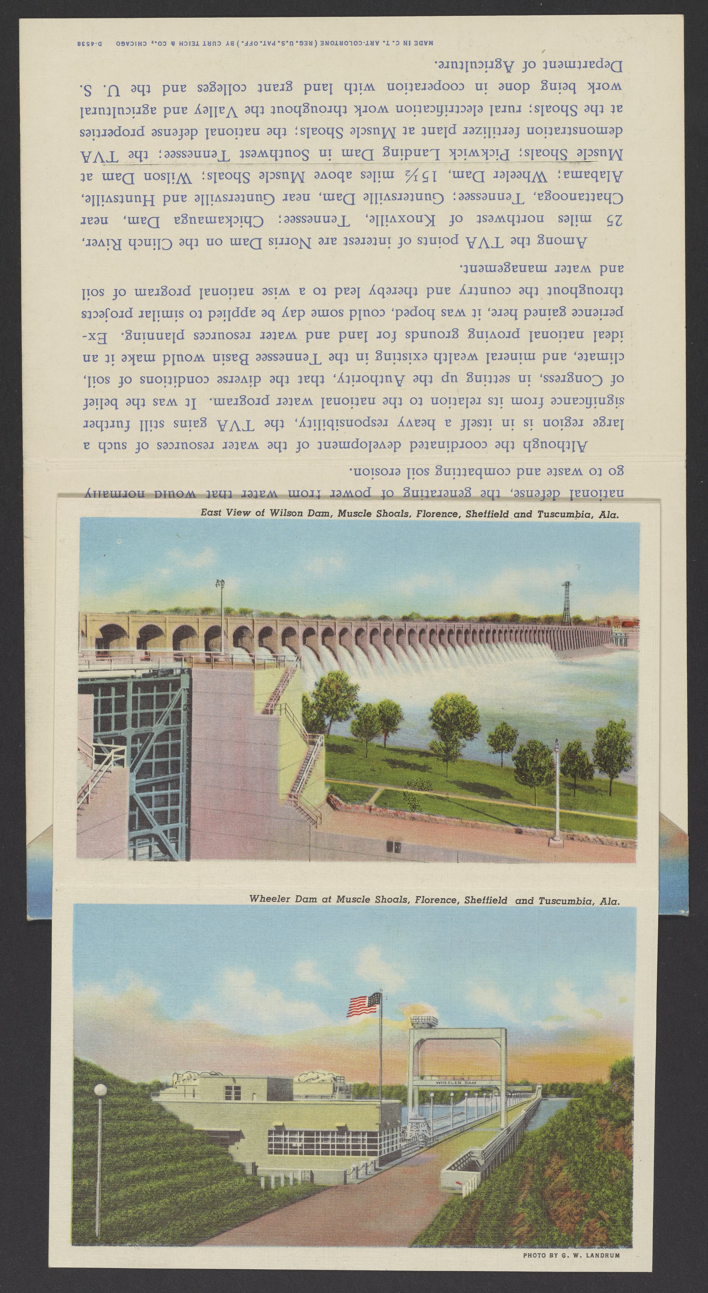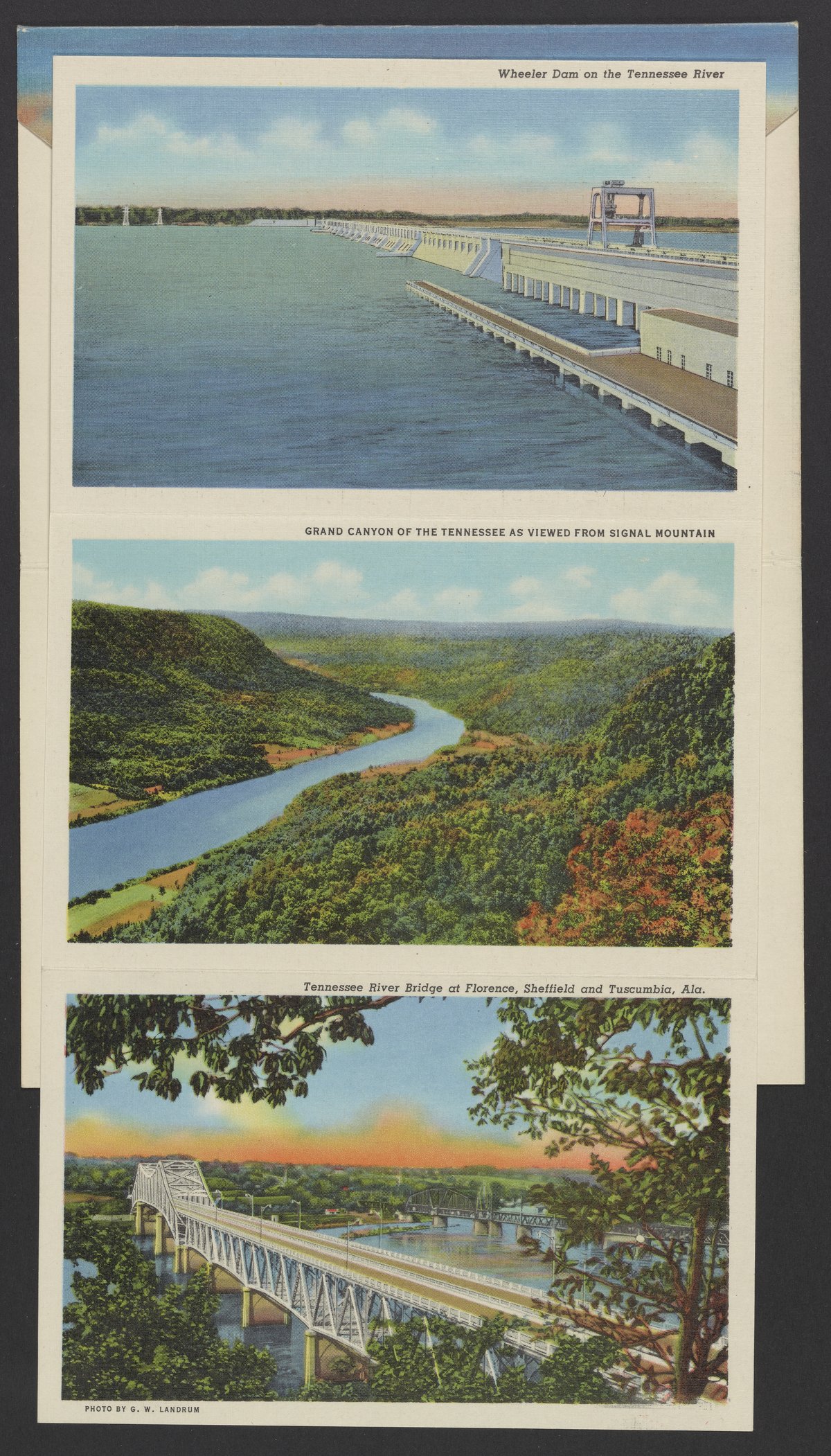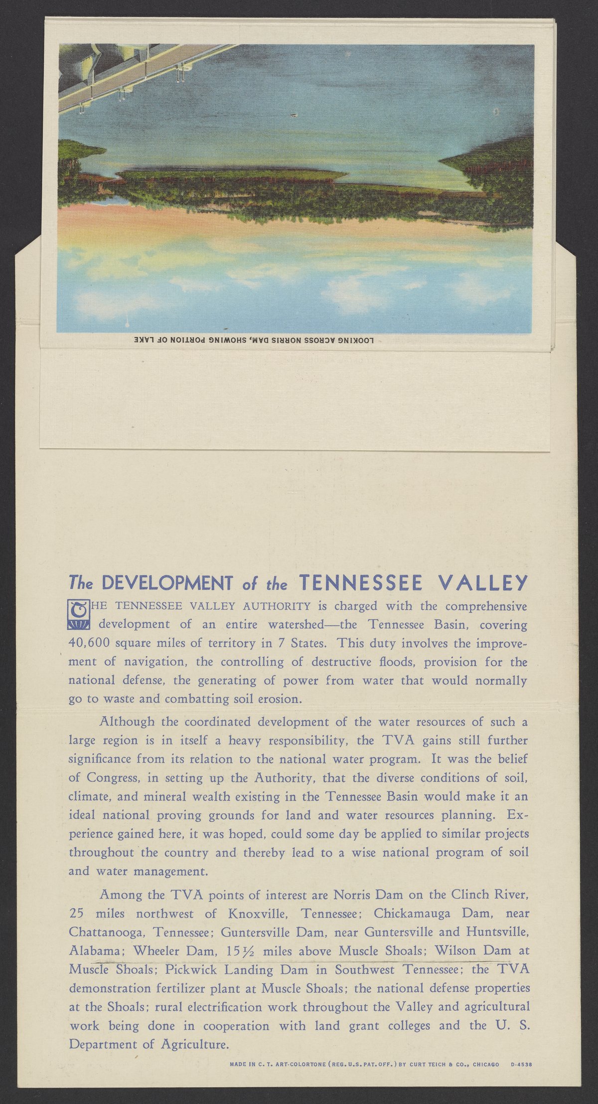 Small JPG1200 x 846px — 243 KBLarge JPG2880 x 2030px — 2.0 MBFull-sized JPG3974 x 2801px — 3.5 MBOriginal fileTIFF — 3974 x 2801px — 31.9 MBLetterpress halftone postcard collection published by Curt Teich & Co. Depicts views of Tennessee and projects by the Tennessee Valley Authority (TVA) including sights such as dams, the TVA Freeway, and model homes in Norris, Tennessee.