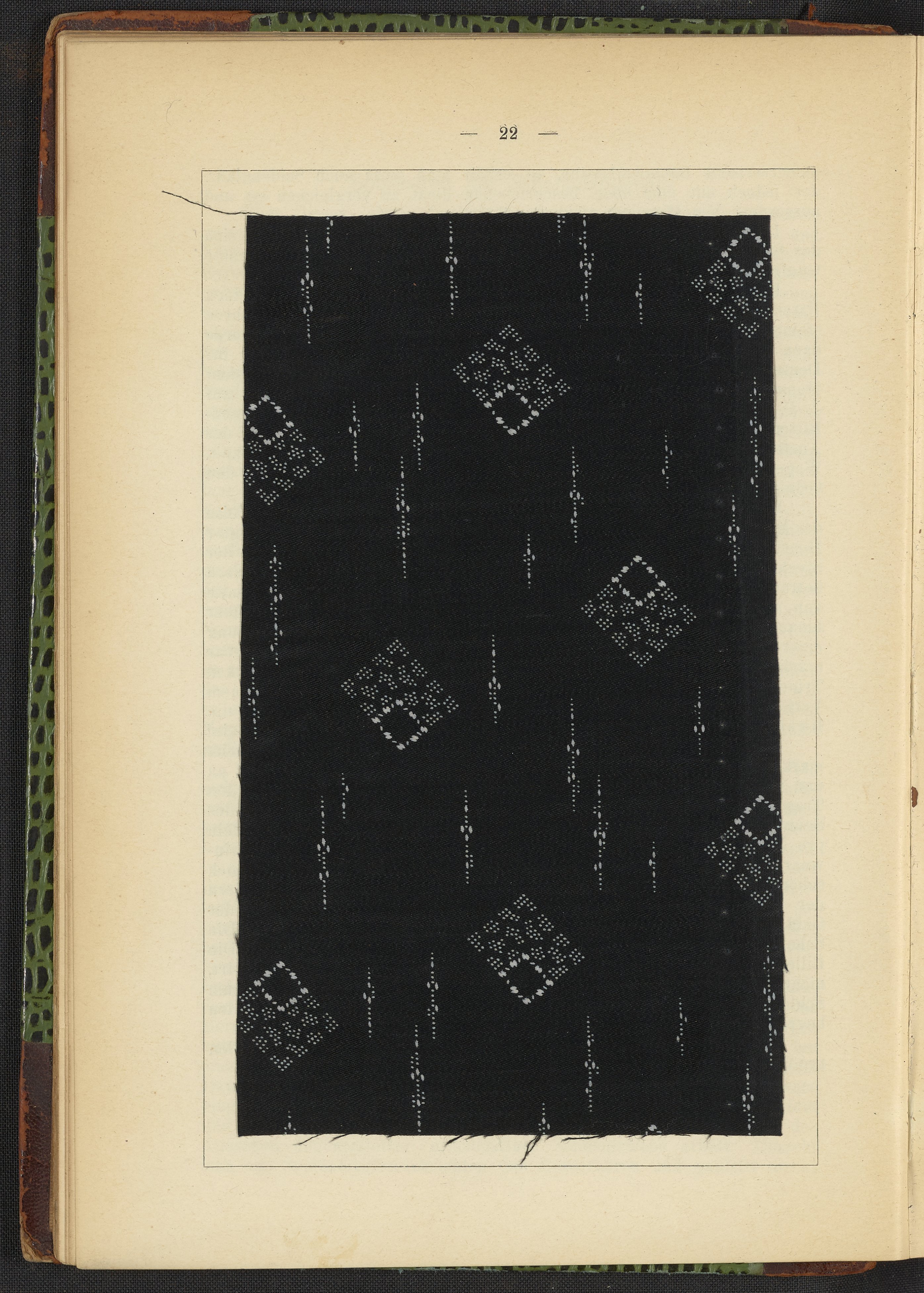 Small JPG1200 x 1662px — 527 KBFull-sized JPG2813 x 3896px — 2.4 MBOriginal fileTIFF — 2813 x 3896px — 31.4 MBSample book containing 158 fabric samples with displaying a wide variety of printed patterns with recipes and methods. The final pages of the book include a series of advertisements for several dyestuff companies.