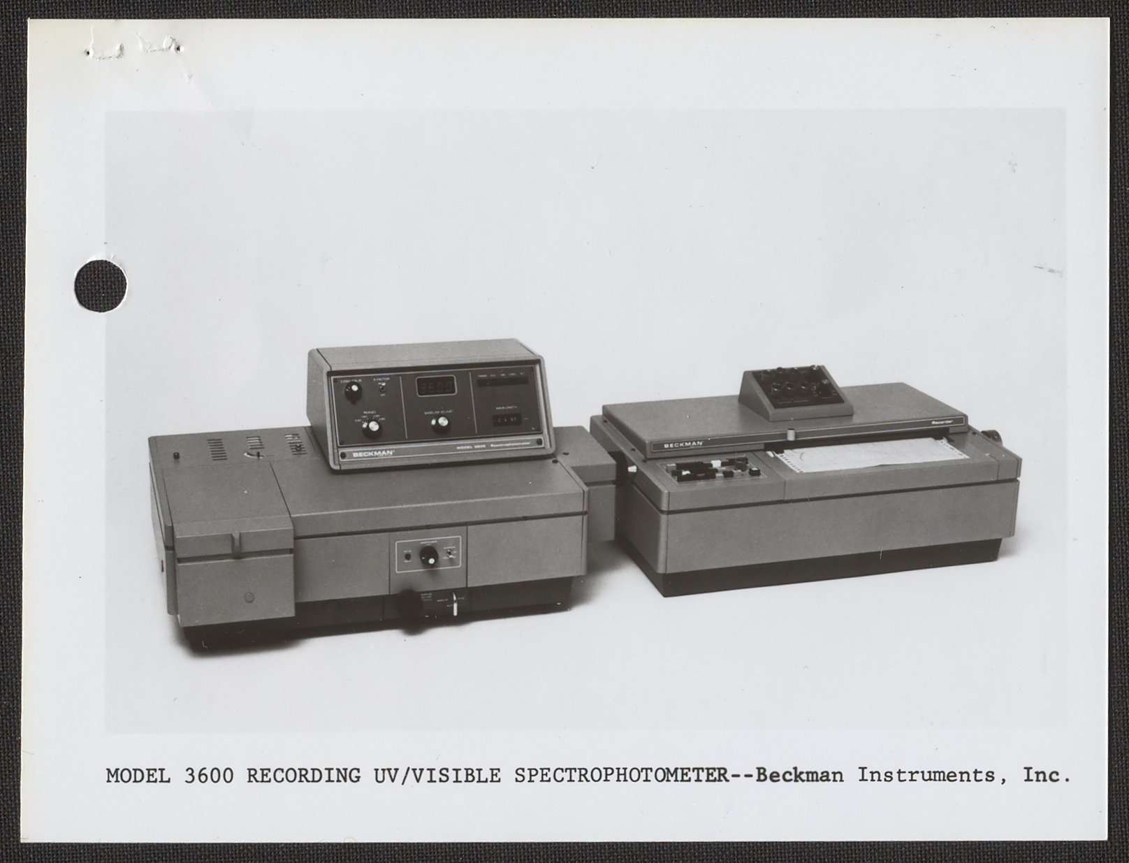 “Beckman Model 3600 Recording UV/Visible Spectrophotometer,” 1960–1969. Beckman Historical Collection, Box 84. Science History Institute. Philadelphia. https://digital.sciencehistory.org/works/s1784m02n.