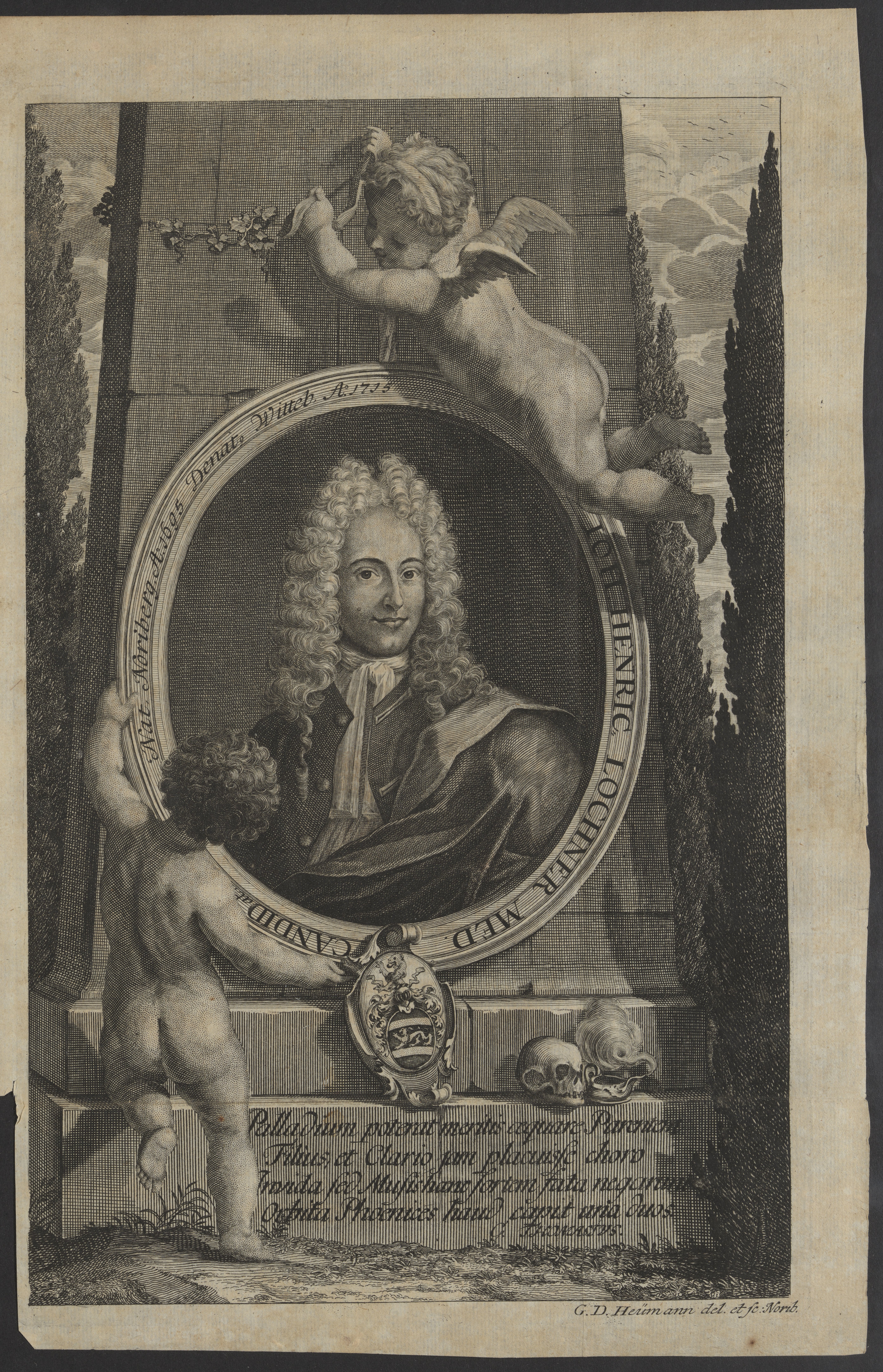 The frontispiece, an engraved portrait of Johann Heinrich Lochner, was drawn and engraved by Georg Daniel Heumann (1691-1759).