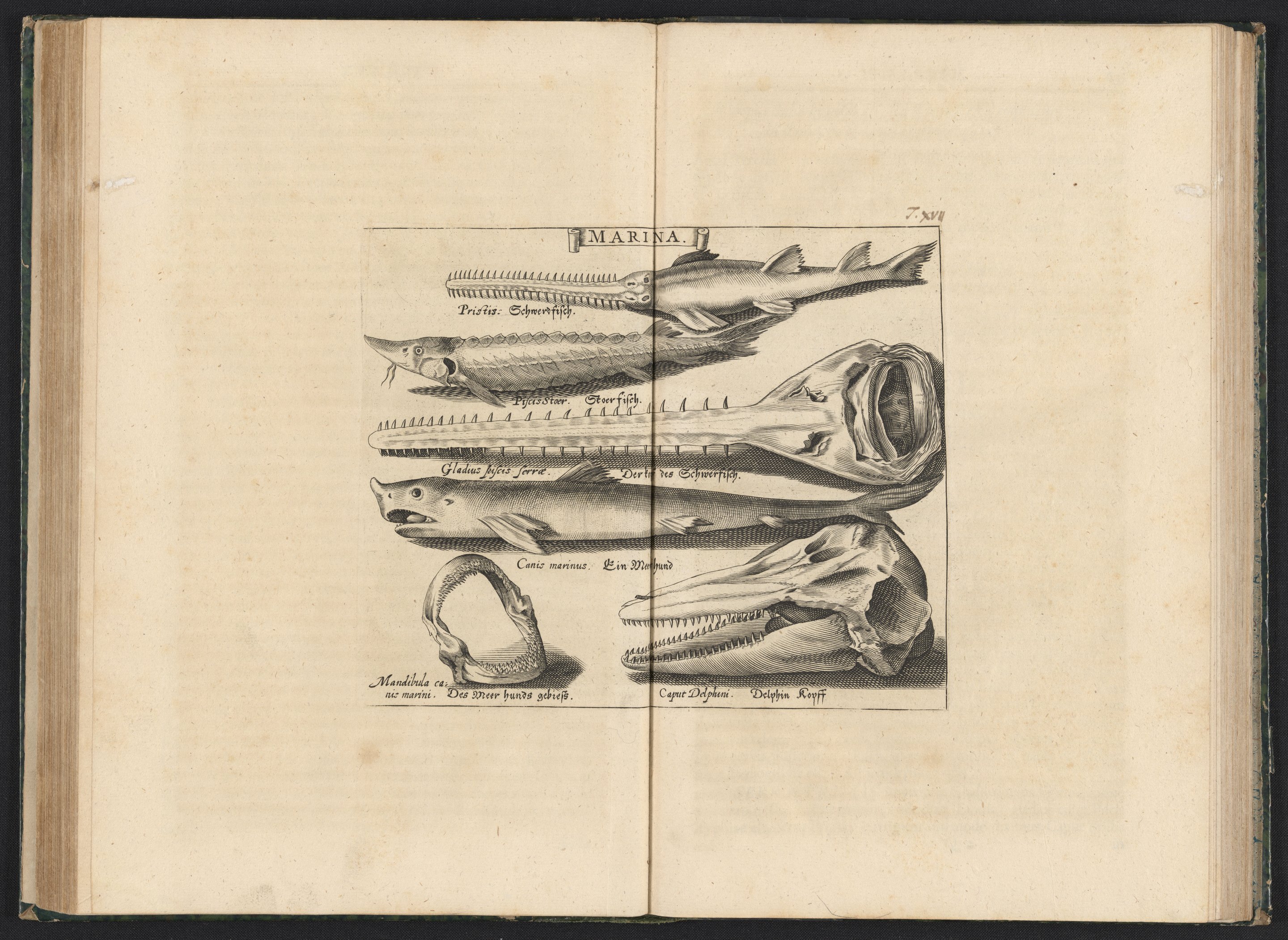Small JPG1200 x 1865px — 695 KBLarge JPG2880 x 4475px — 3.8 MBFull-sized JPG5573 x 8660px — 11.5 MBOriginal fileTIFF — 5573 x 8660px — 138 MBA description with commentary, by Johann Heinrch Lochner (1695-1715) of the natural history museum of Nuremberg apothecaries Basilius Besler (1561-1629) and his nephew Michael Rupert Besler (1607-1661). The collection had been illustrated in previous publications including Basilius Besler's Fasciculus rariorum (1616) and Continuatio rariorum et aspectu dignorum varii generis (1622), and Michael Besler's Gazophylacium rerum naturalium (1642). This work is a more elaborate publication with 40 smaller engravings of the various collected objects (fruits, birds, alligators, fish, fossils, corals, etc.), 24 of which were previously depicted in the earlier works, 16 of which are additional illustrations.