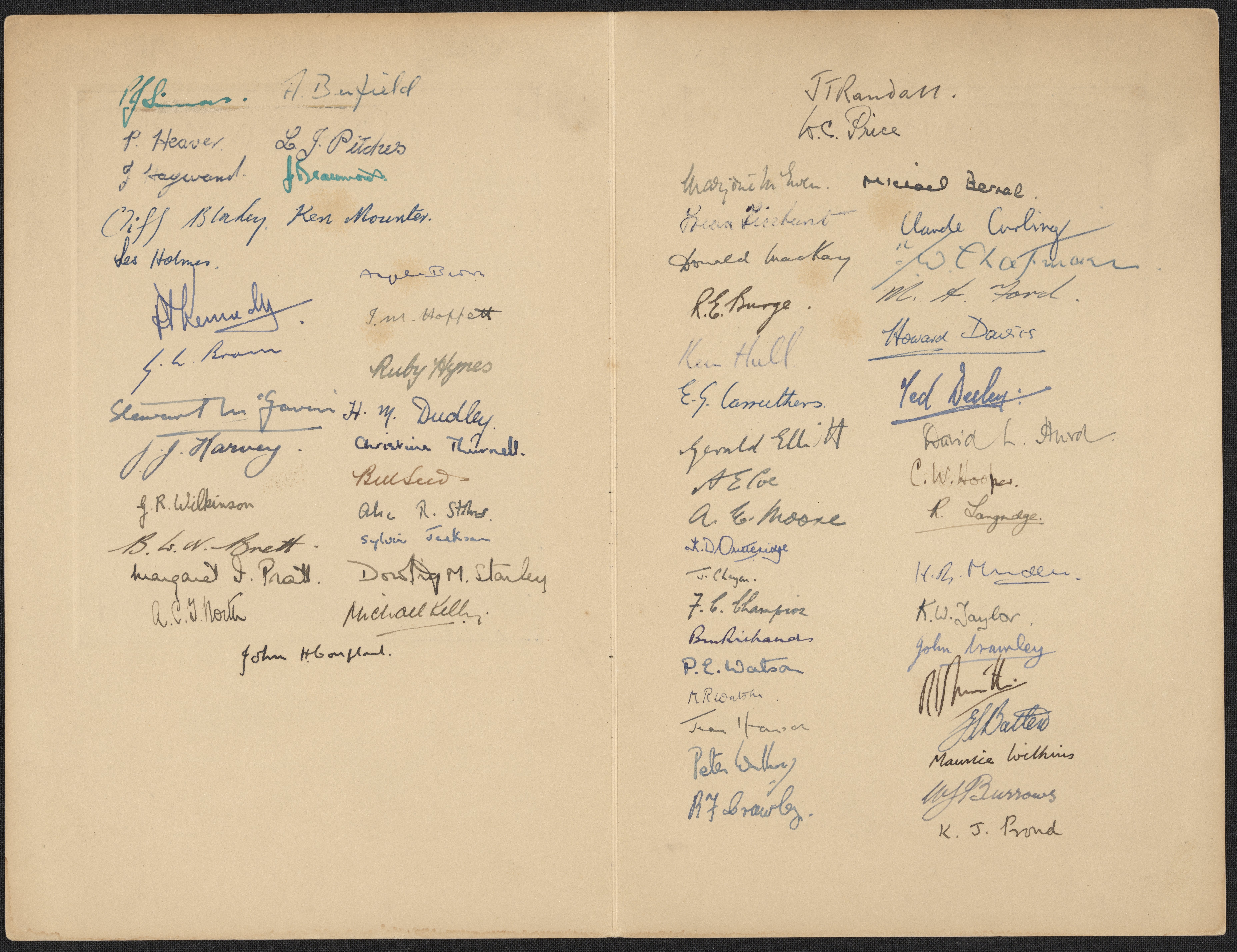 “Best Wishes from King's College,” circa 1953. History of Molecular Biology Collection, Box 13, Folder 24. Science History Institute. Philadelphia. https://digital.sciencehistory.org/works/s2hjn57.