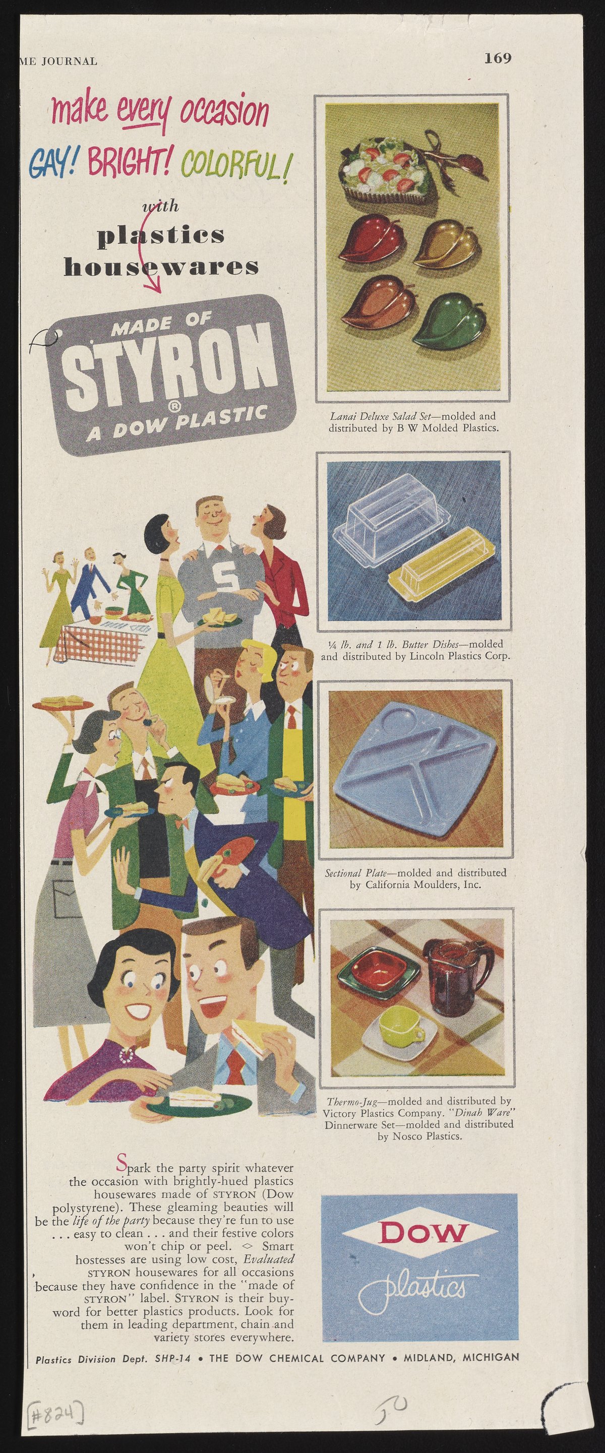 Dow Chemical Company. “Make Every Occasion Gay! Bright! Colorful! with Plastics Housewares Made of Styron,” 1950. Advertisements from the Dow Chemical Historical Collection, Box 9. Science History Institute. Philadelphia. https://digital.sciencehistory.org/works/s3bqby3.