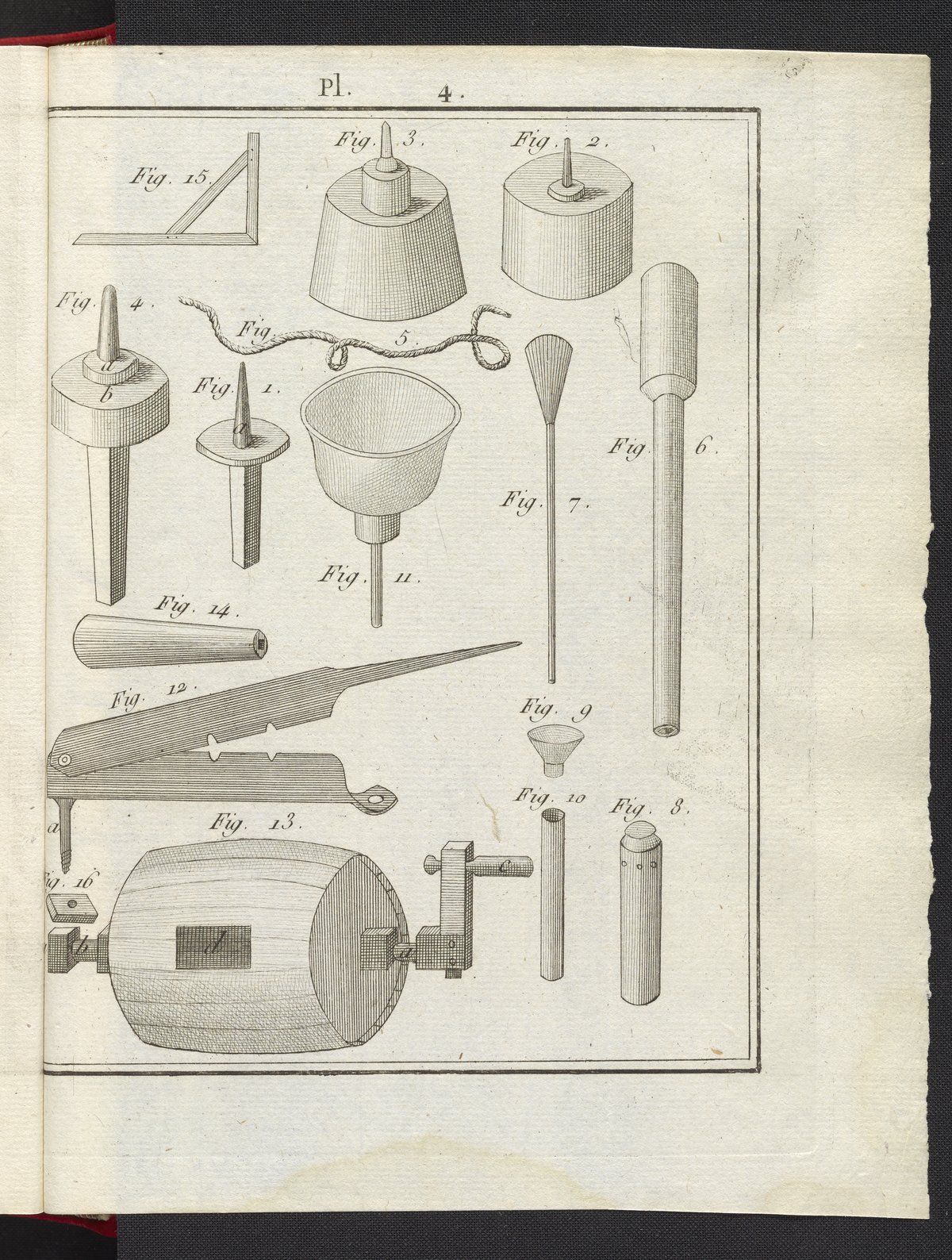 Ruggieri, Claude-Fortuné. “Plate 4: Tools for the Manufacture of Fireworks.” In Elémens De Pyrotechnie. Paris, France, 1811. https://digital.sciencehistory.org/works/s7526d181.