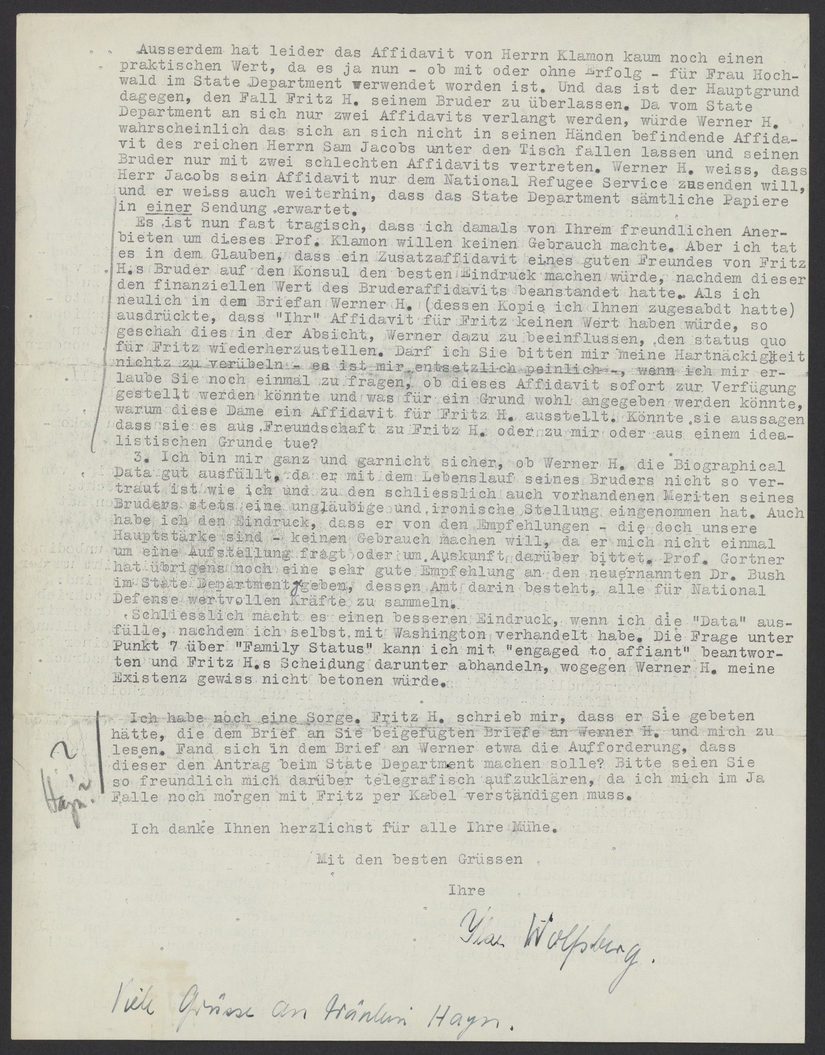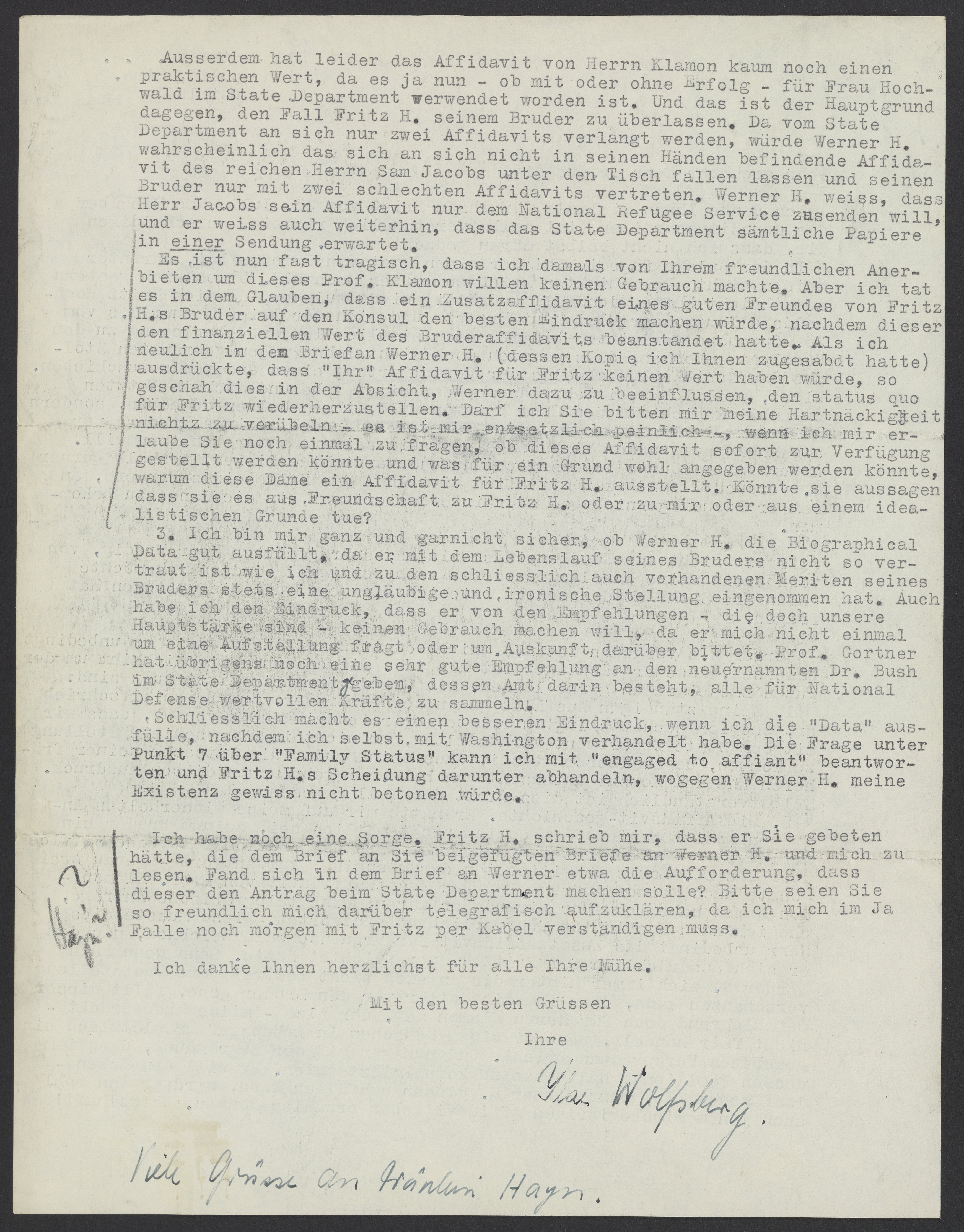 Letter from Ilse Wolfsberg to Max Bredig, August 2, 1941