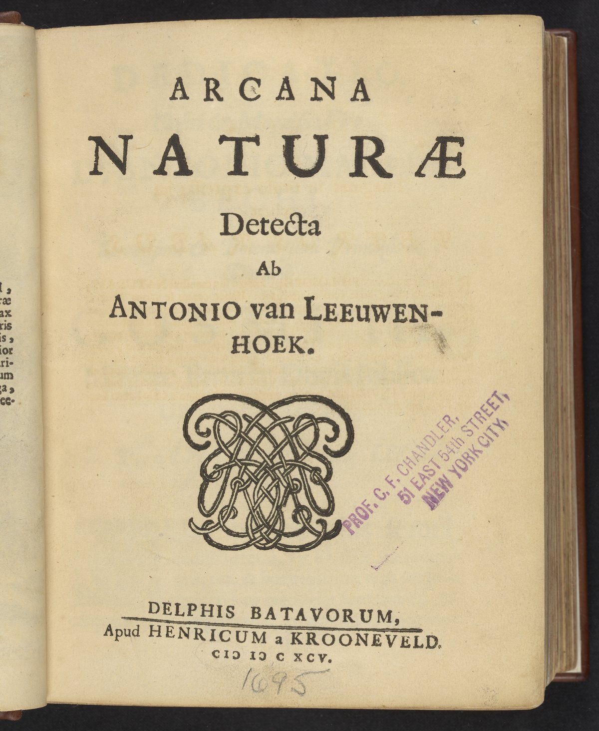 Leeuwenhoek, Antoni van. Arcana Naturae Detecta. Delft, Netherlands: Henrik van Kroonevelt, 1695. https://digital.sciencehistory.org/works/sb3979577.