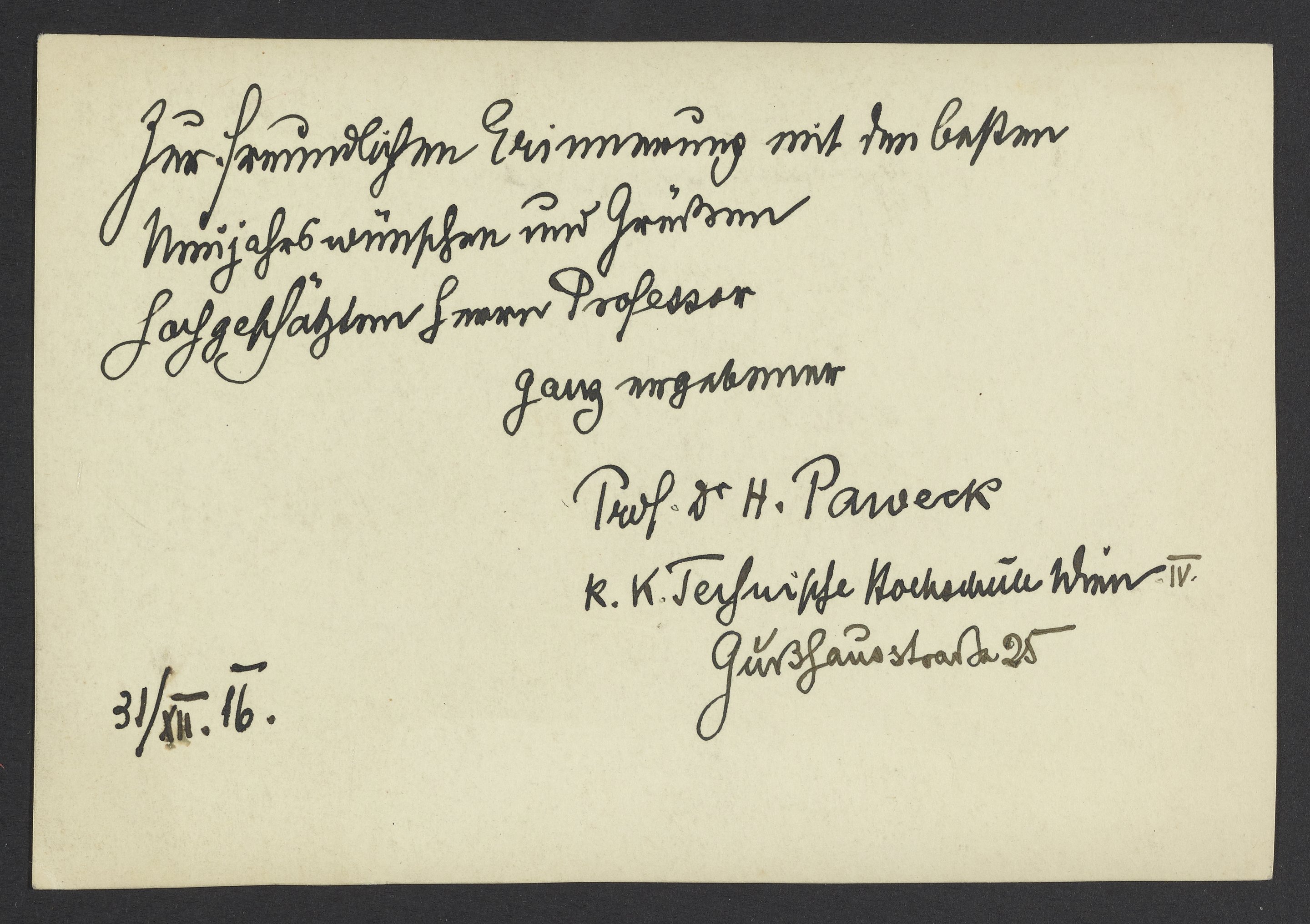 Postcard to Georg Bredig from Heinrich Paweck