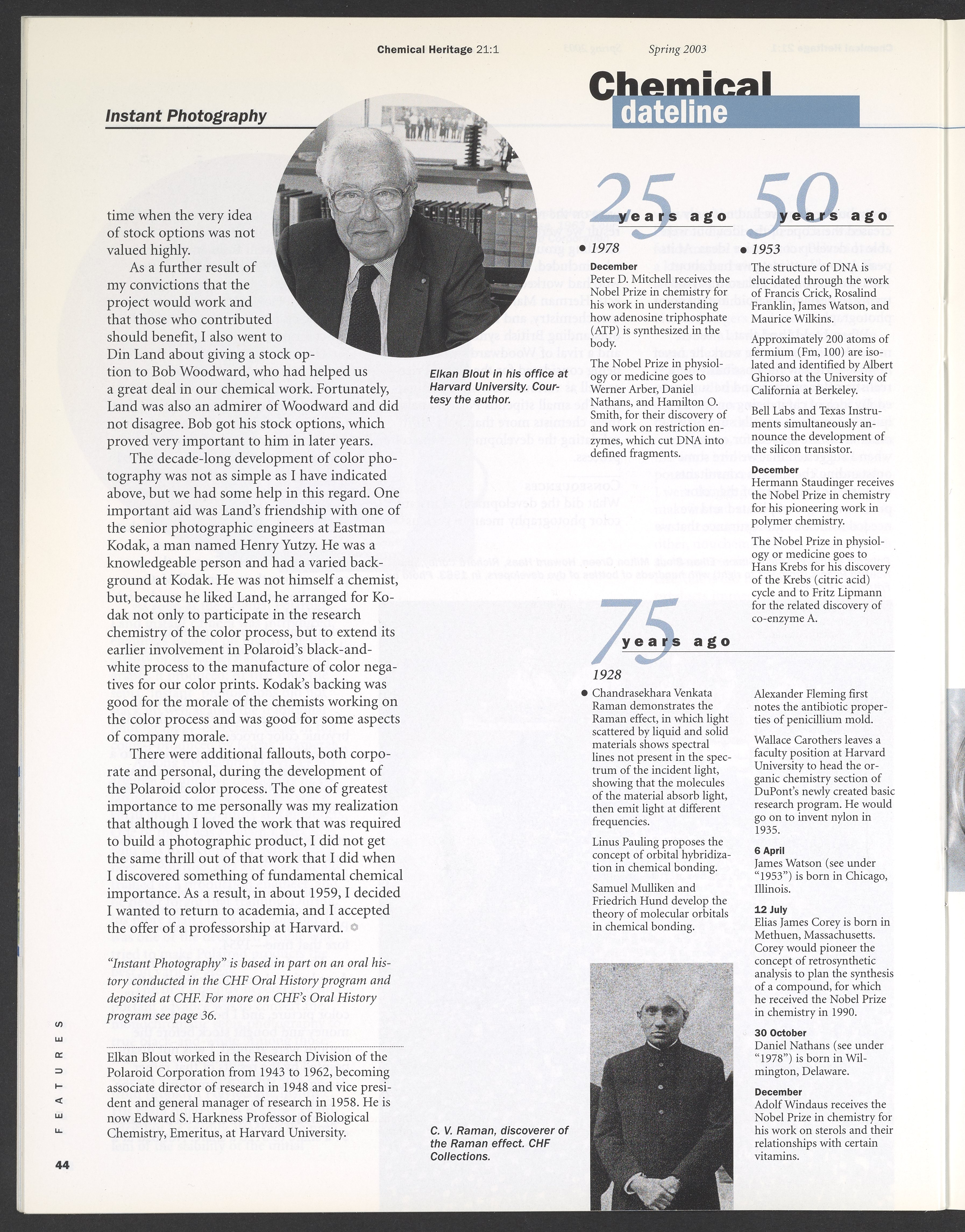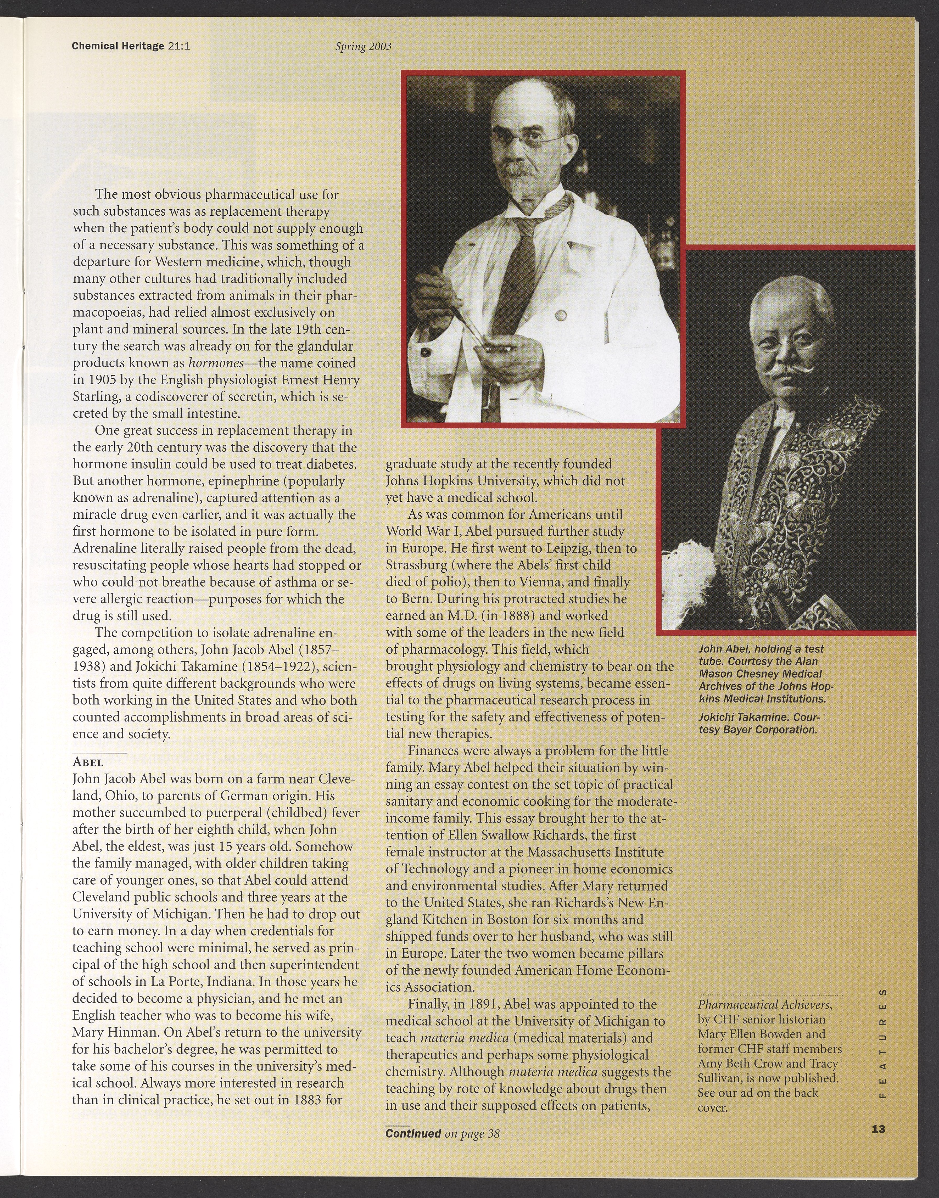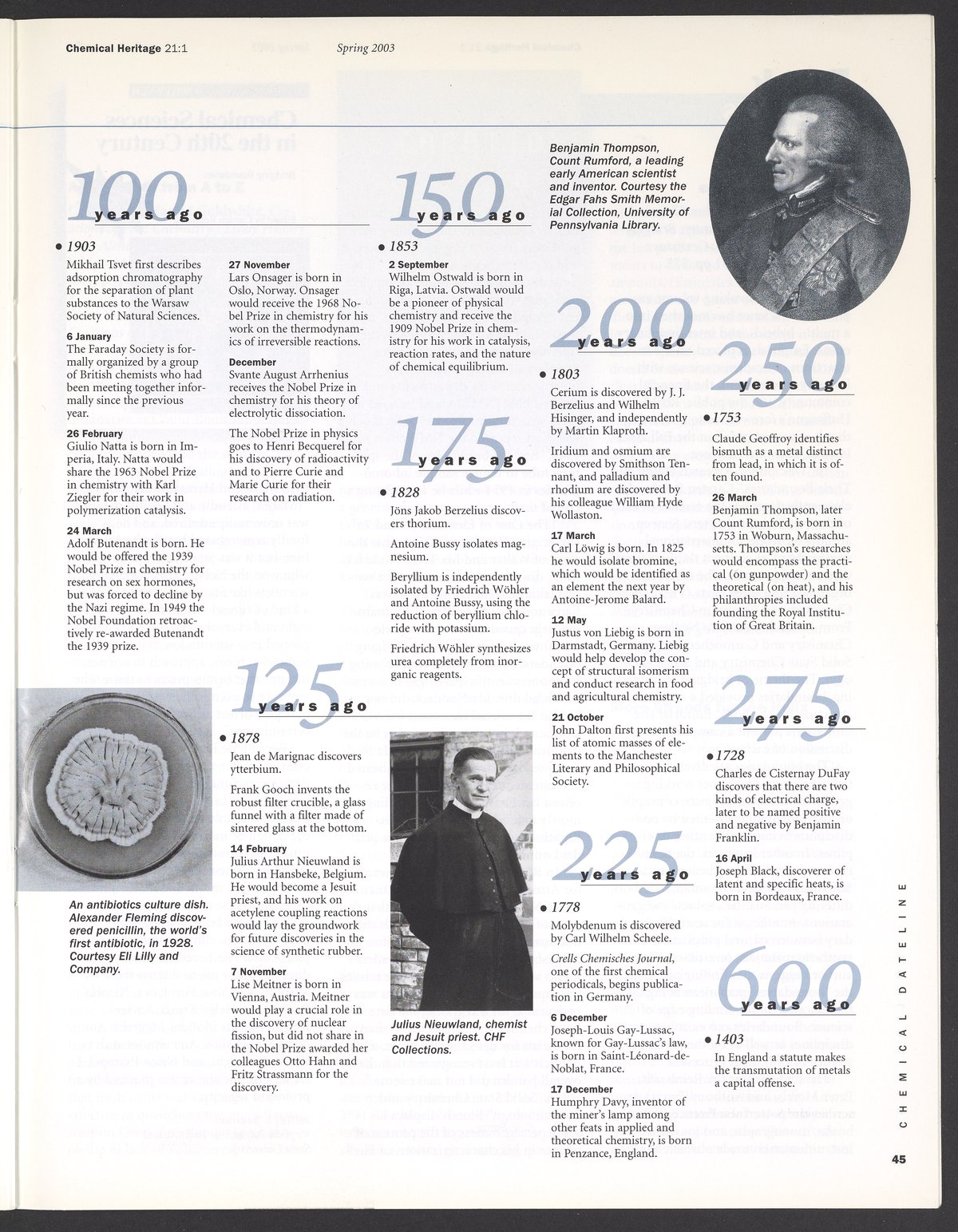 “Chemical Heritage, Volume 21 Number 1.” Philadelphia, Pennsylvania: Chemical Heritage Foundation, 2003. 099C001. Science History Institute. Philadelphia. https://digital.sciencehistory.org/works/se9c7vl.