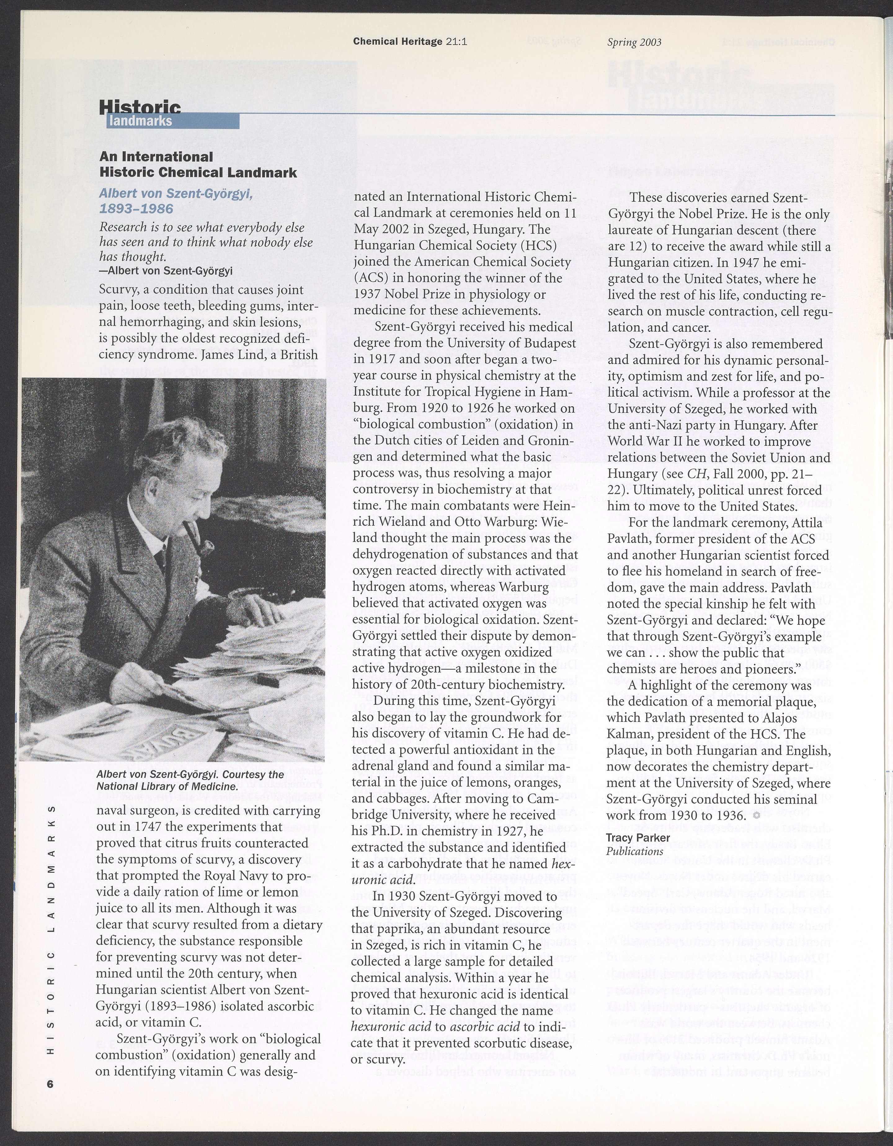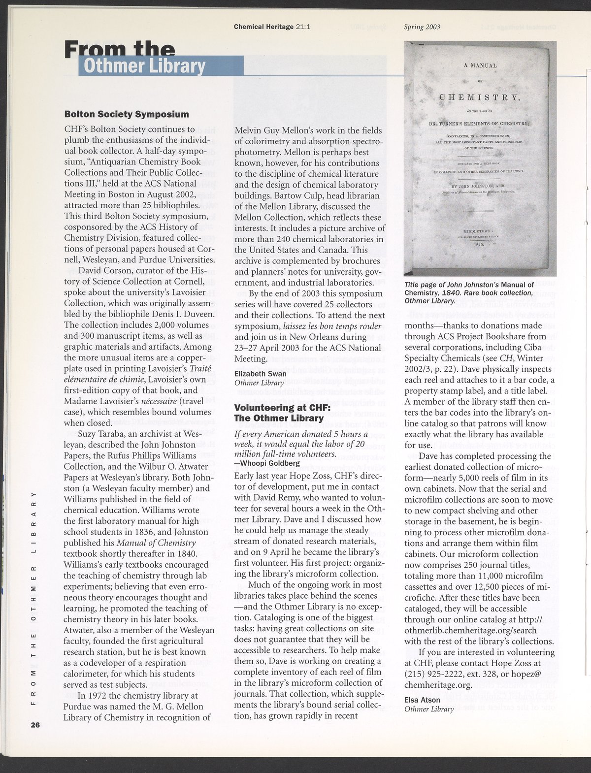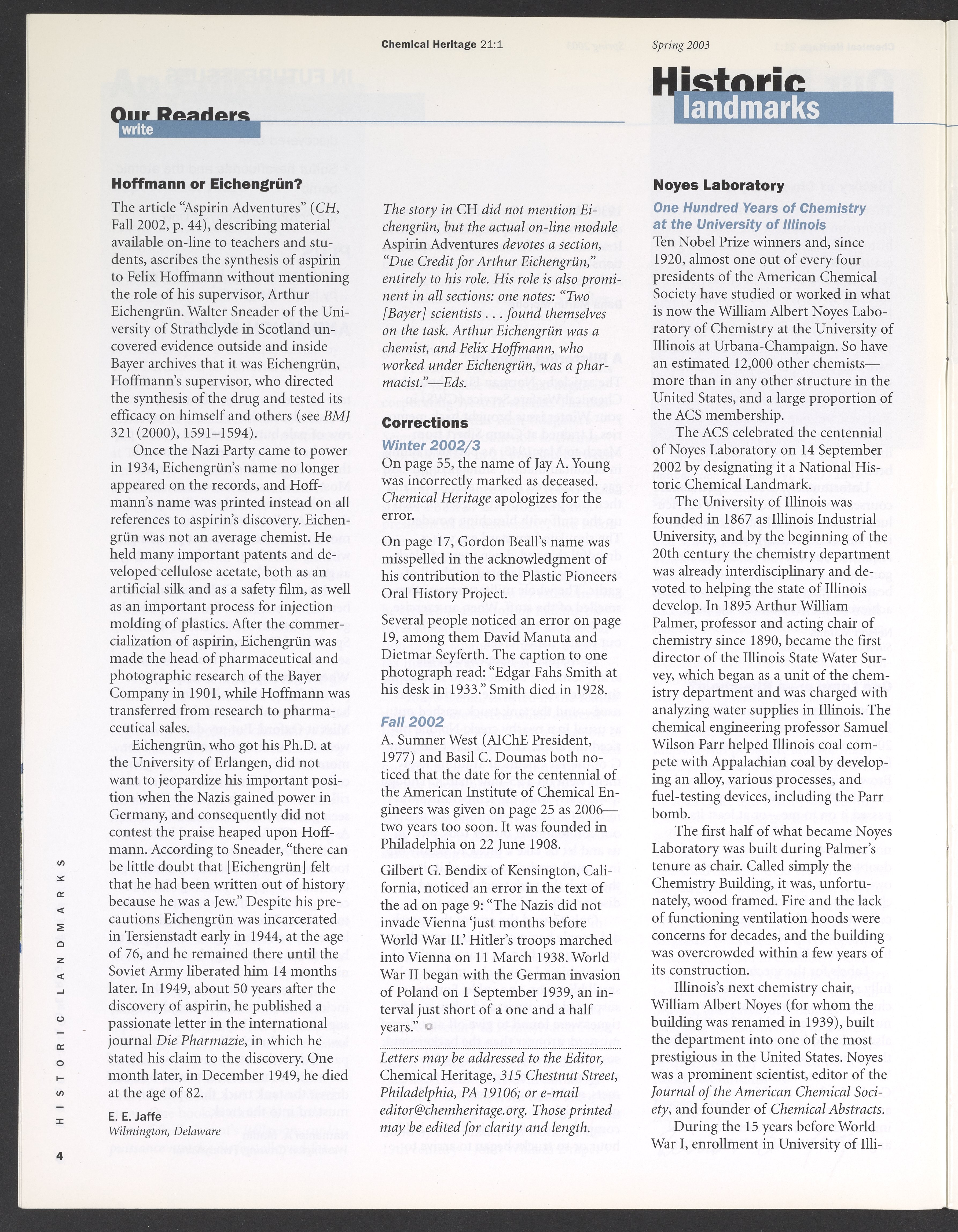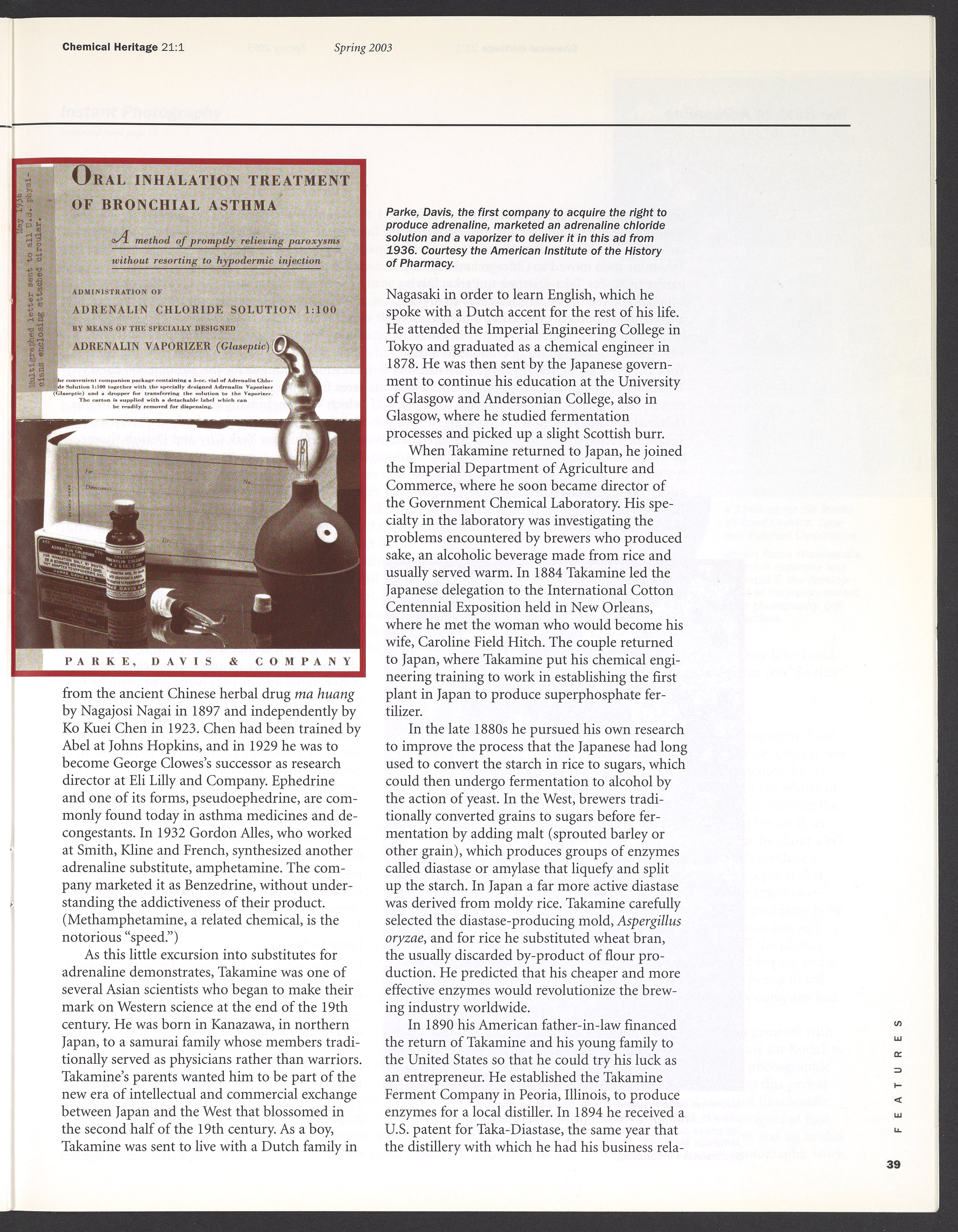 “Chemical Heritage, Volume 21 Number 1.” Philadelphia, Pennsylvania: Chemical Heritage Foundation, 2003. 099C001. Science History Institute. Philadelphia. https://digital.sciencehistory.org/works/se9c7vl.