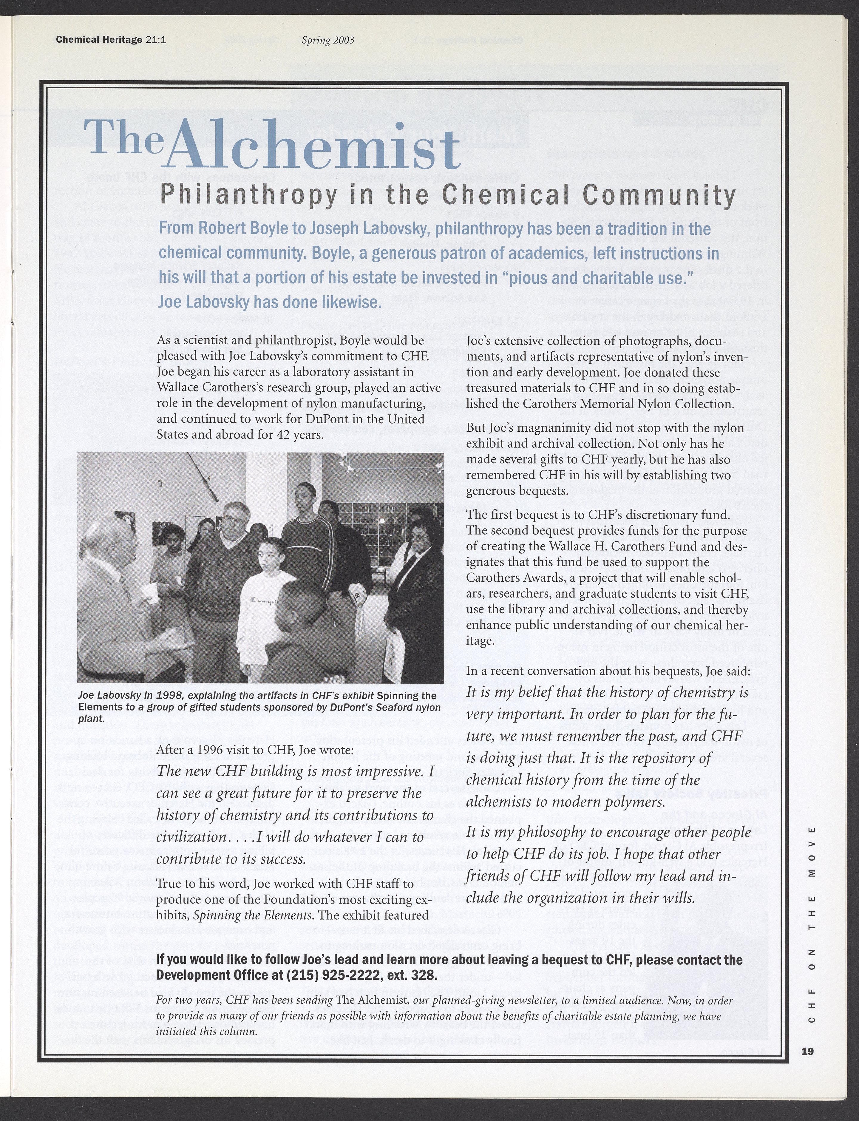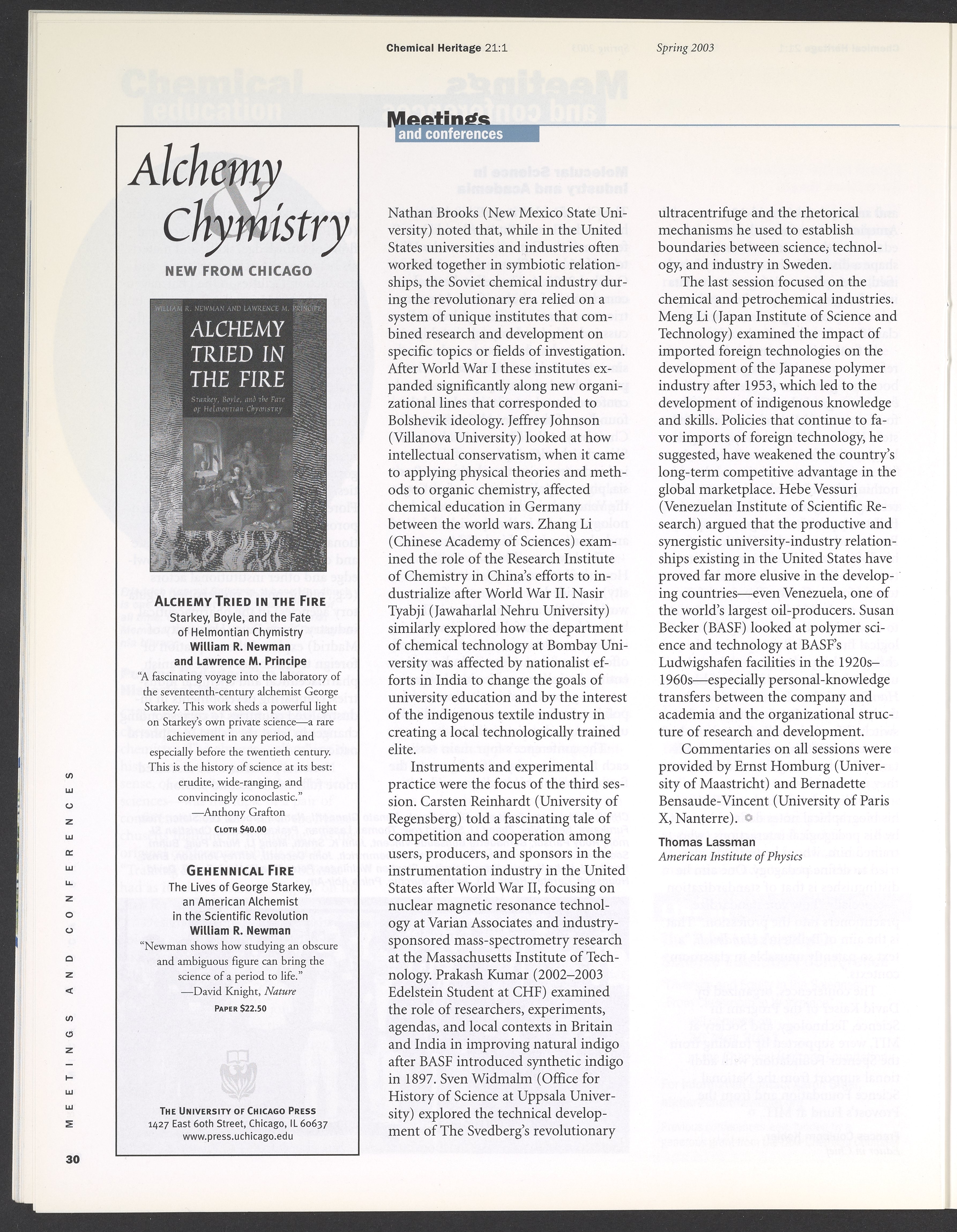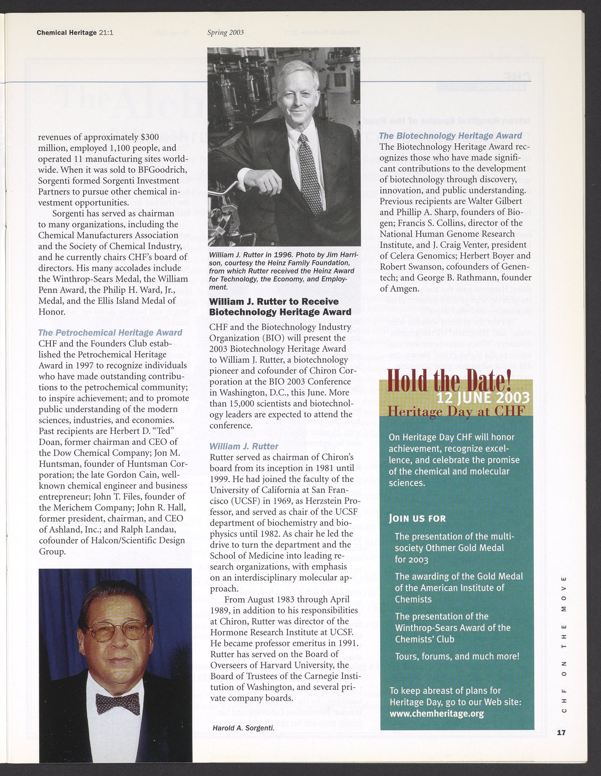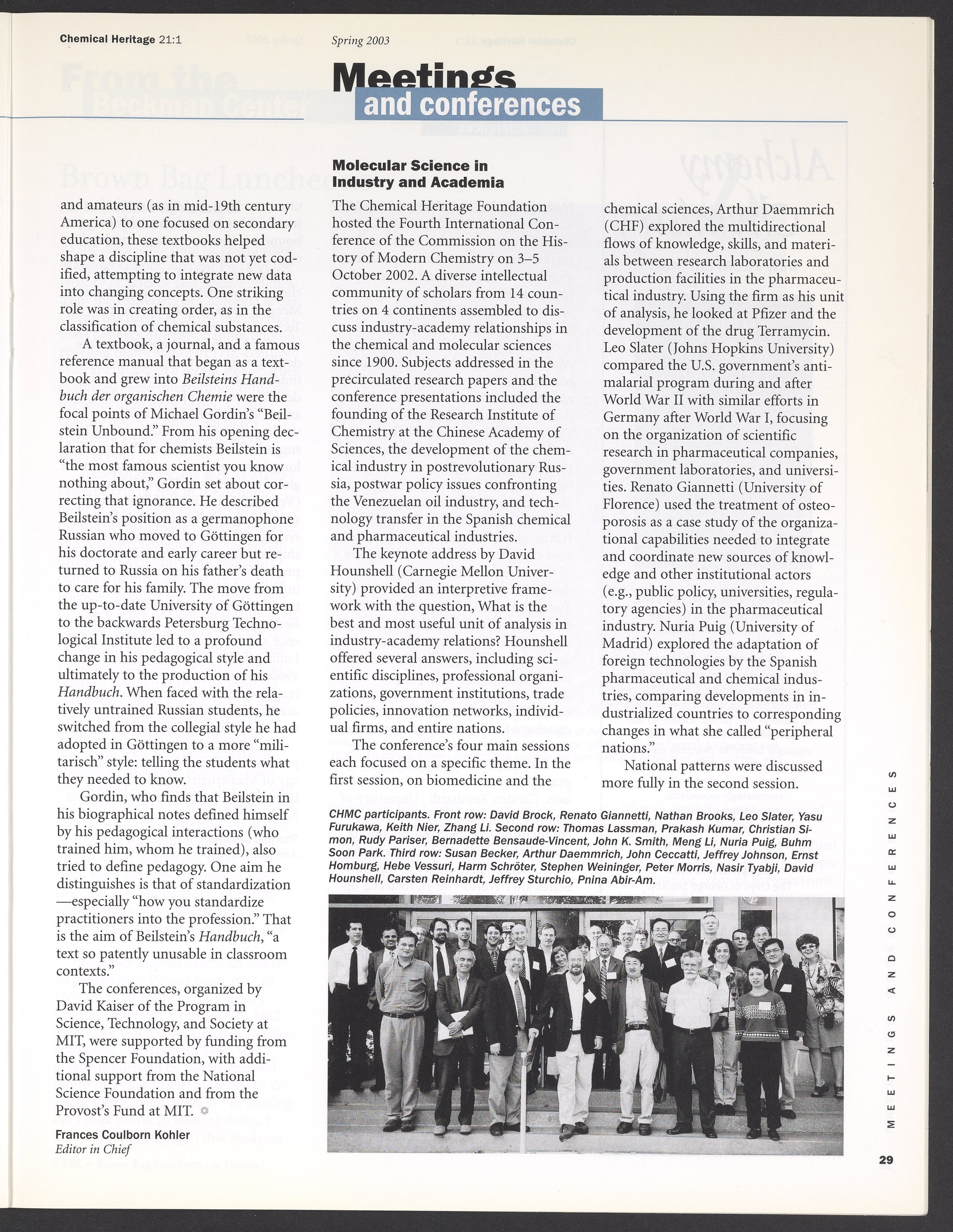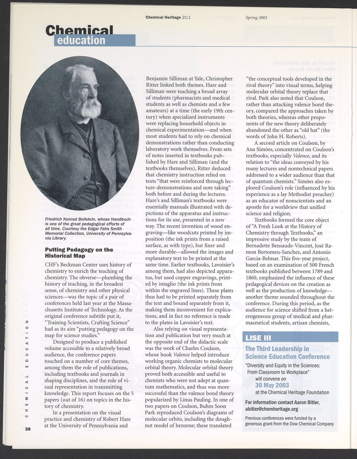 Chemical Heritage, Volume 21 Number 1