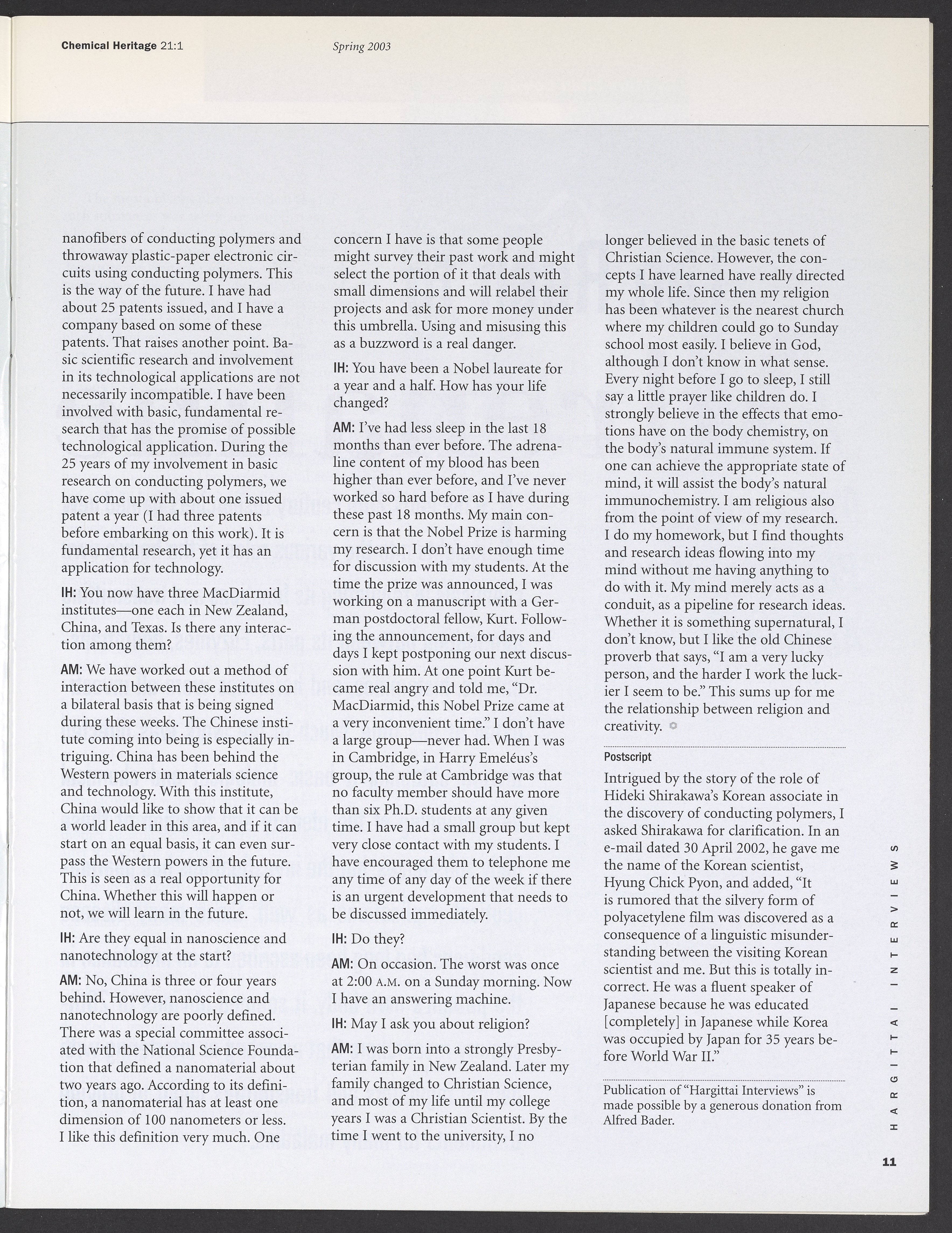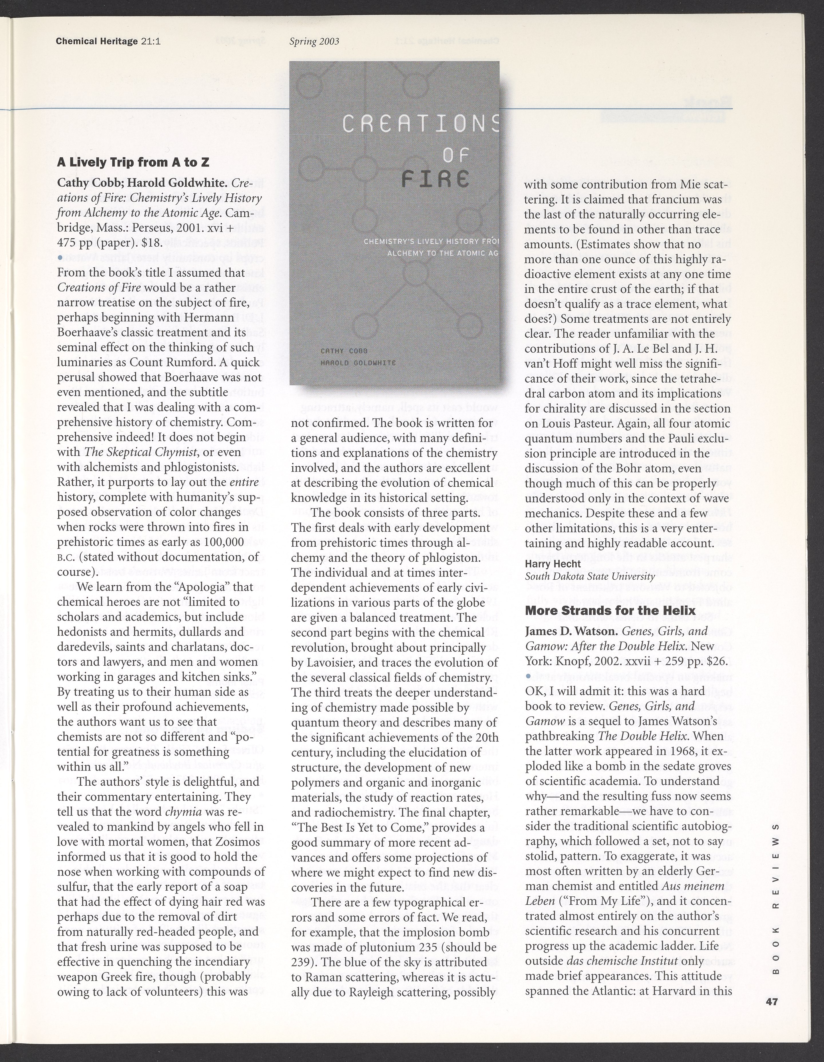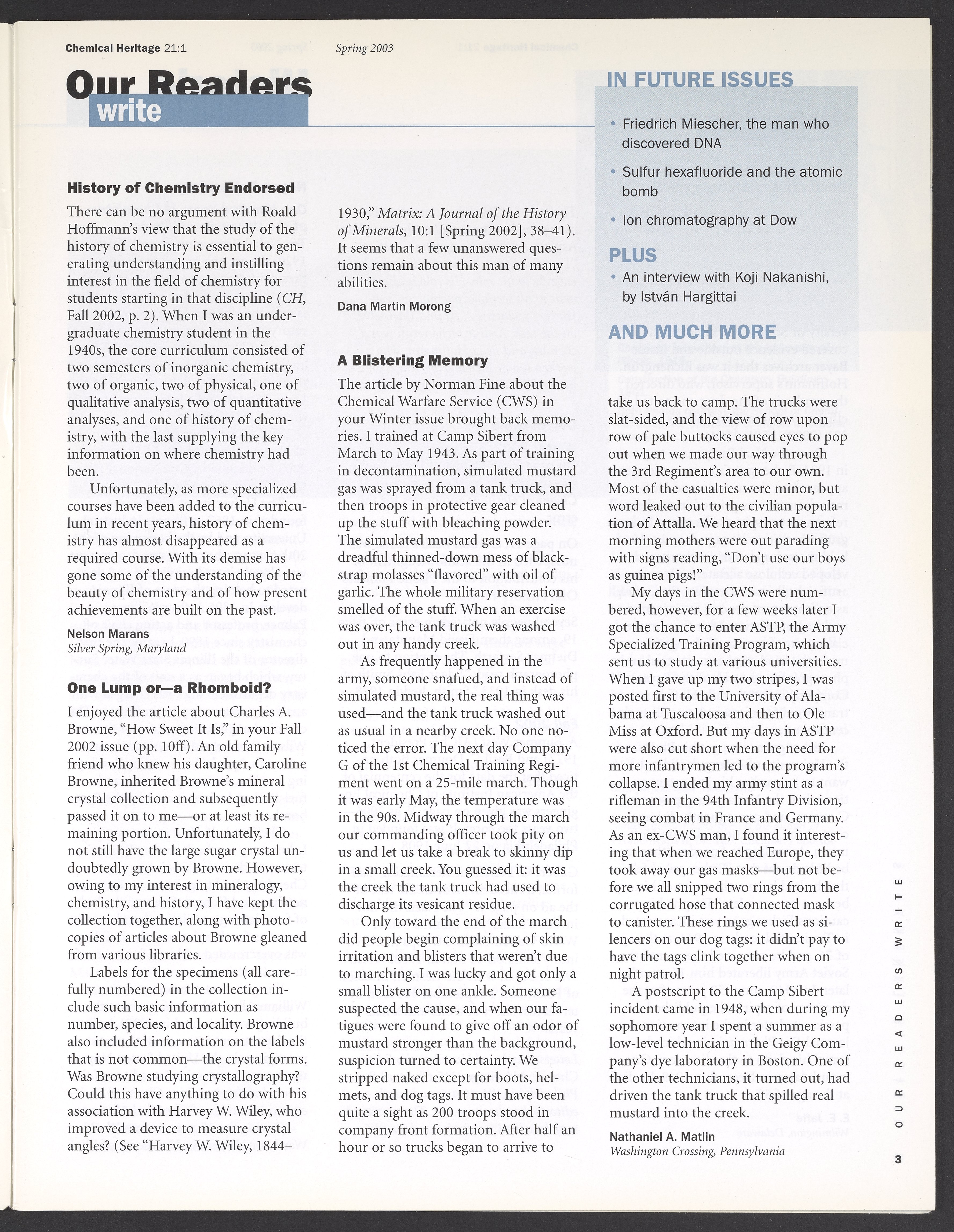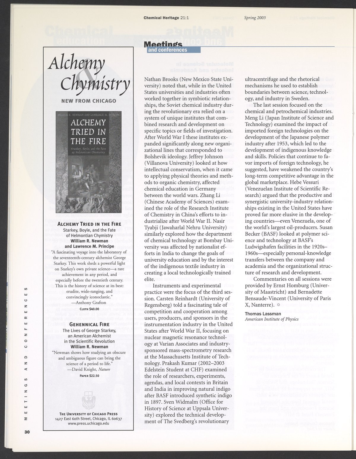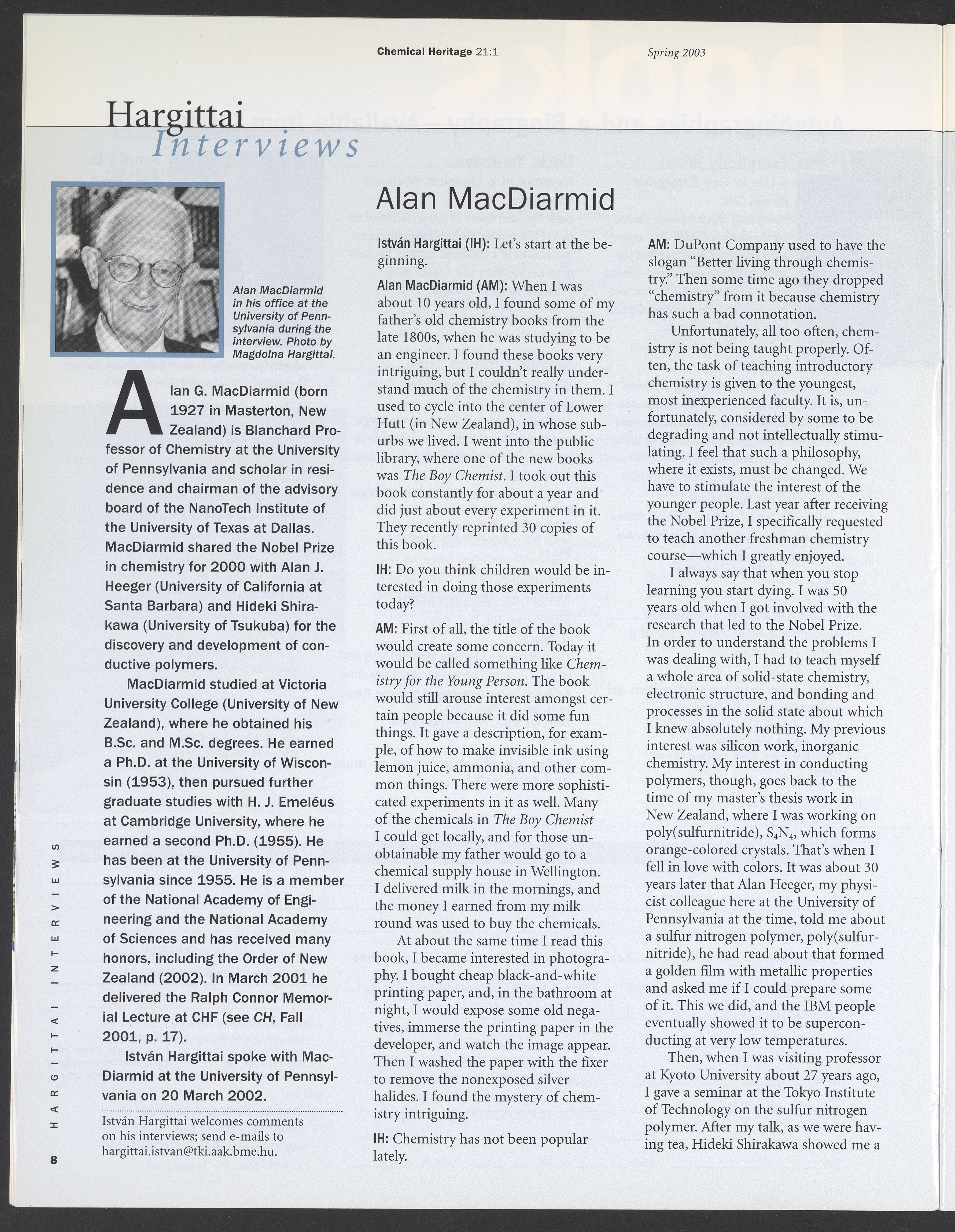 Chemical Heritage, Volume 21 Number 1