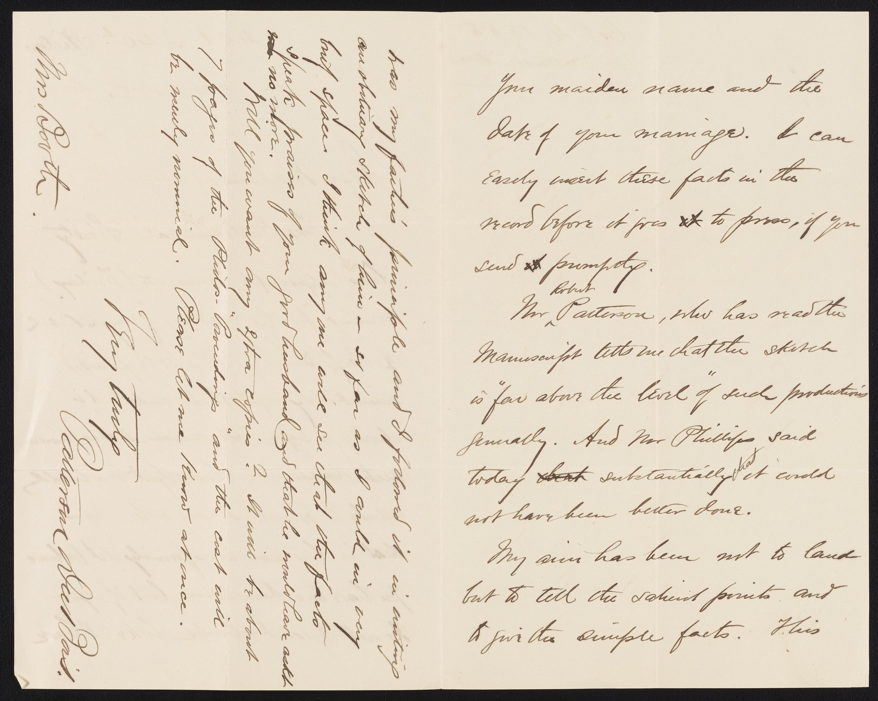 Small JPG1200 x 1865px — 279 KBFull-sized JPG2701 x 4197px — 1.2 MBOriginal fileTIFF — 2701 x 4197px — 32.5 MBPatterson Du Bois writes to Margaret M. Booth née Cardeza to notify her of the date on which Du Bois' memorial to her late husband will be delivered at the American Philosophical Society.
