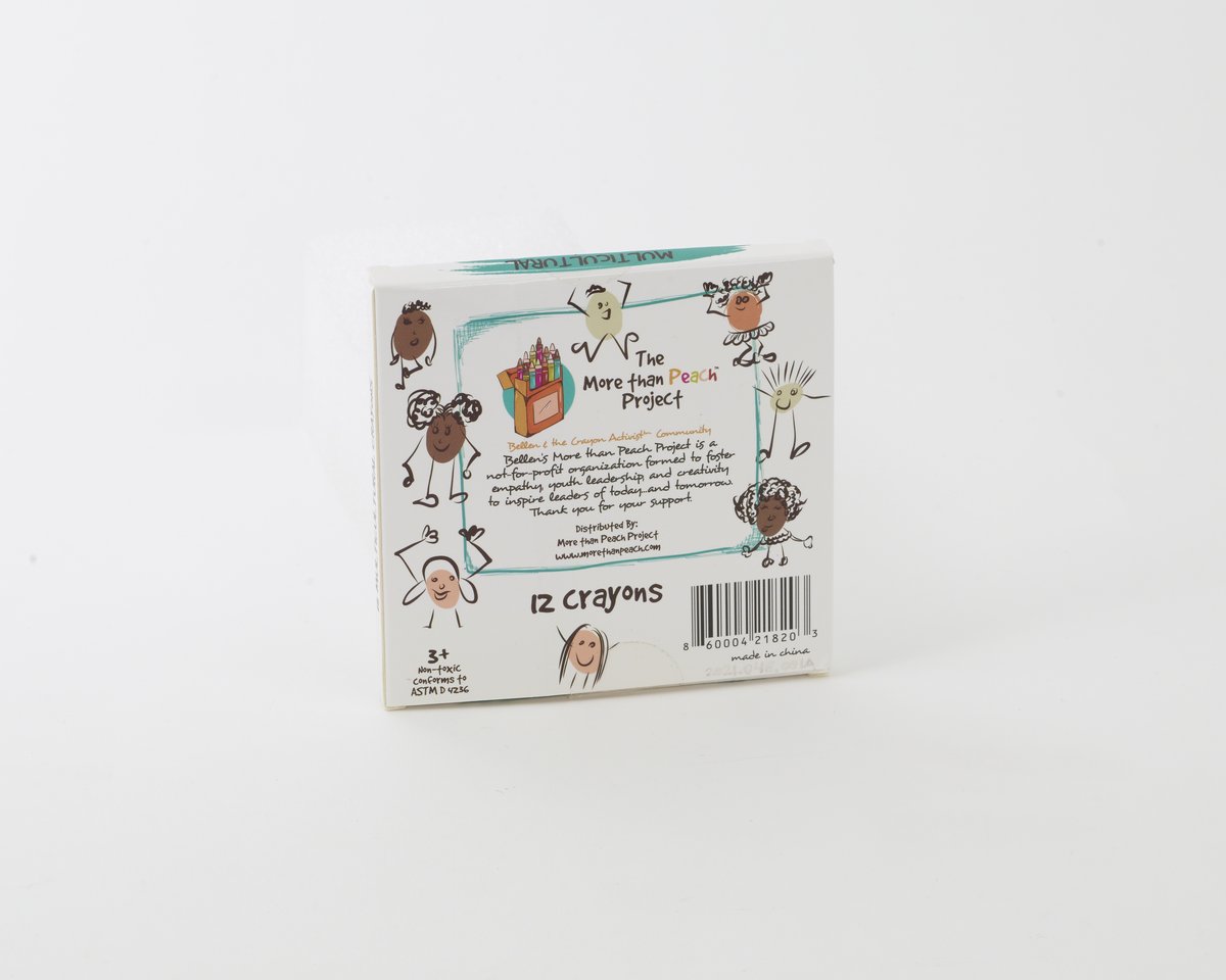 In 2019, Bellen Woodard (2010-) founded Bellen’s More Than Peach™ Project. She developed the project in response to her school peers referring to a peach-colored crayon as “the skin color crayon.” Bellen began by creating kits containing a range of skin color crayons and sending them out to local school children in Loudoun County, Virginia where she lives.