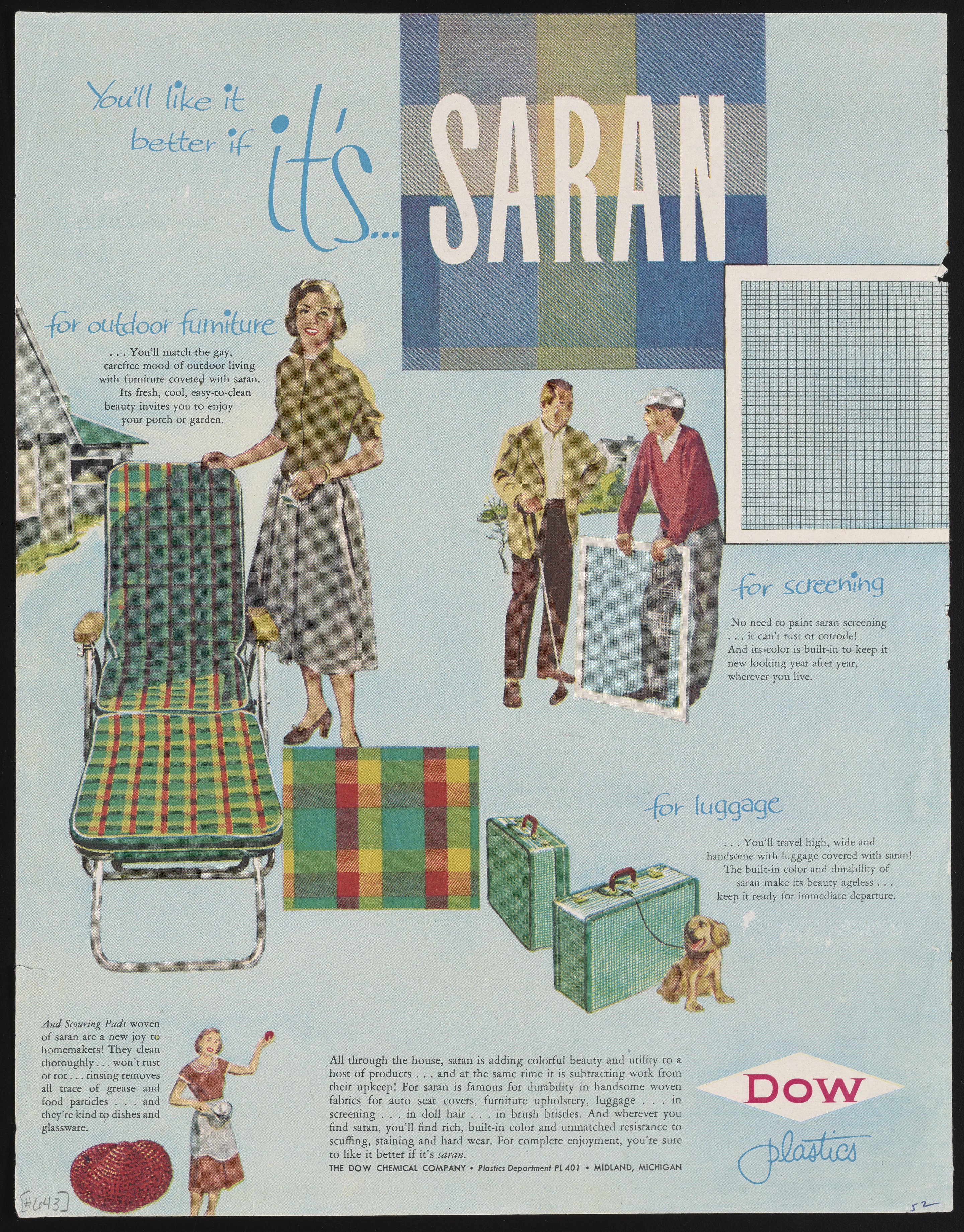 Dow Chemical Company. “You'Ll Like It Better If It's Saran,” 1952. Advertisements from the Dow Chemical Historical Collection, Box 9. Science History Institute. Philadelphia. https://digital.sciencehistory.org/works/spnaor3.