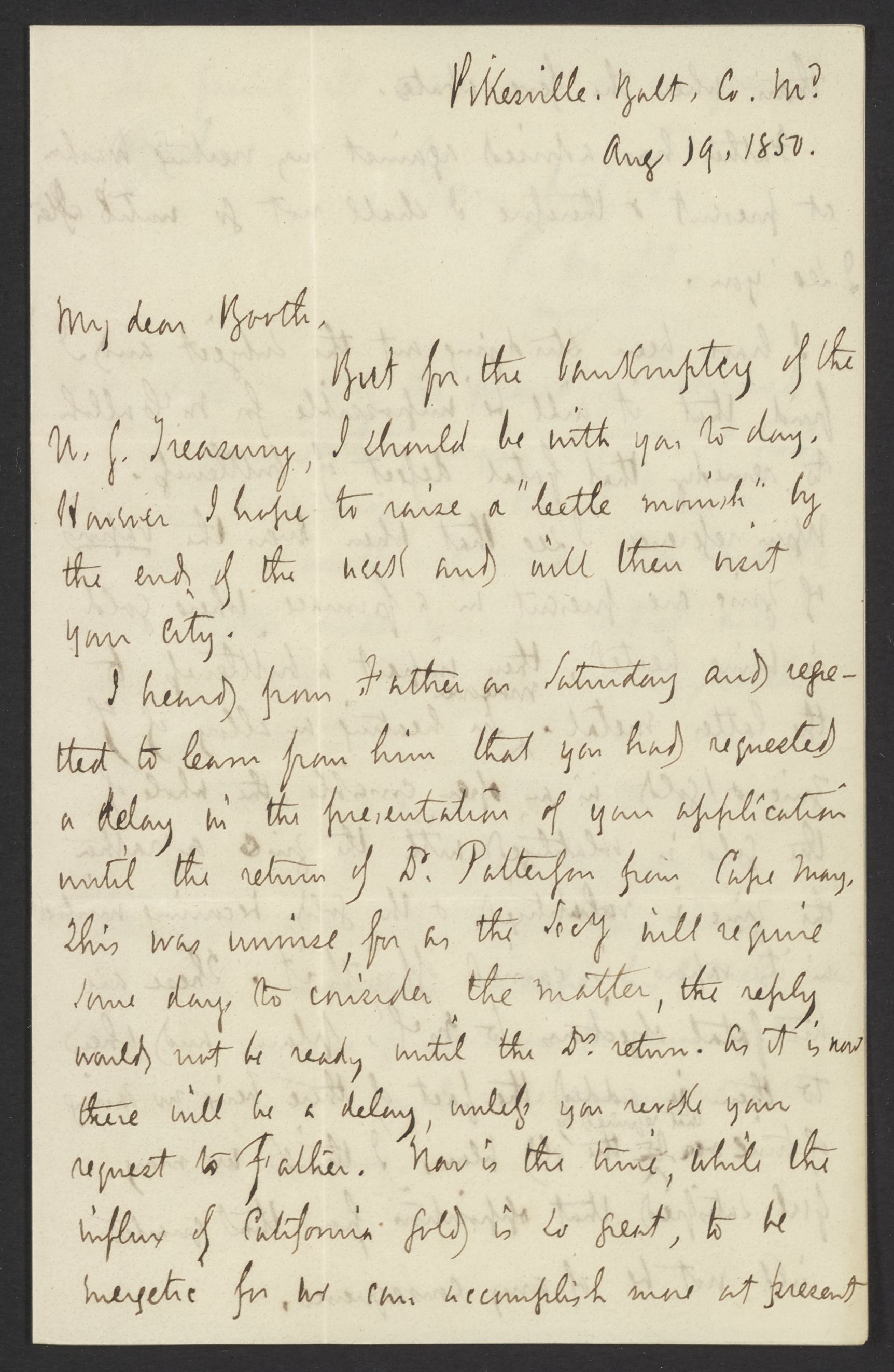 Letter from Campbell Morfit to James Curtis Booth, August 19, 1850