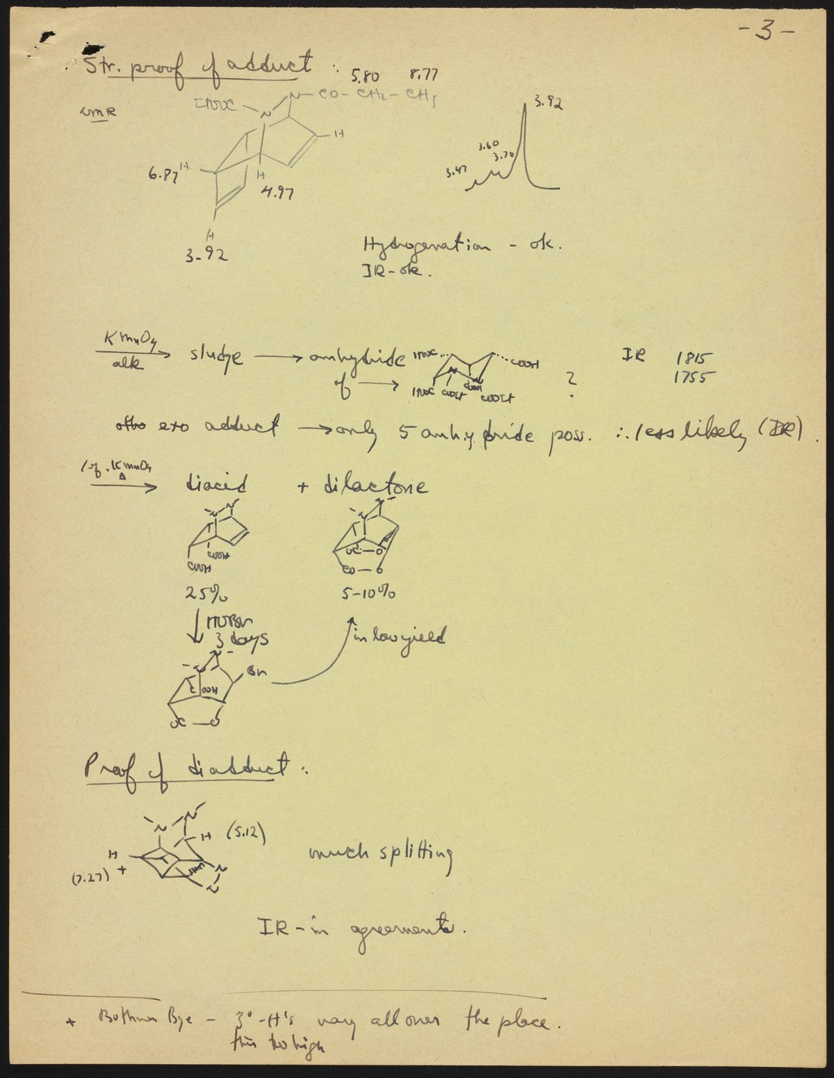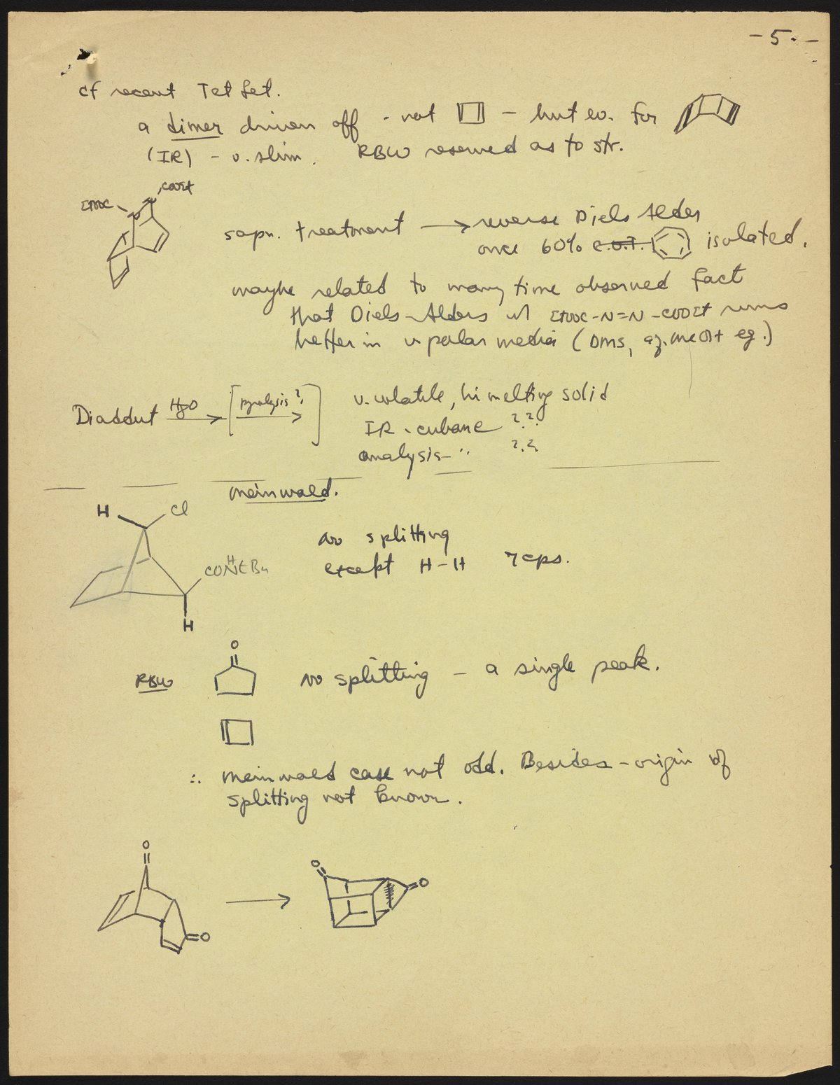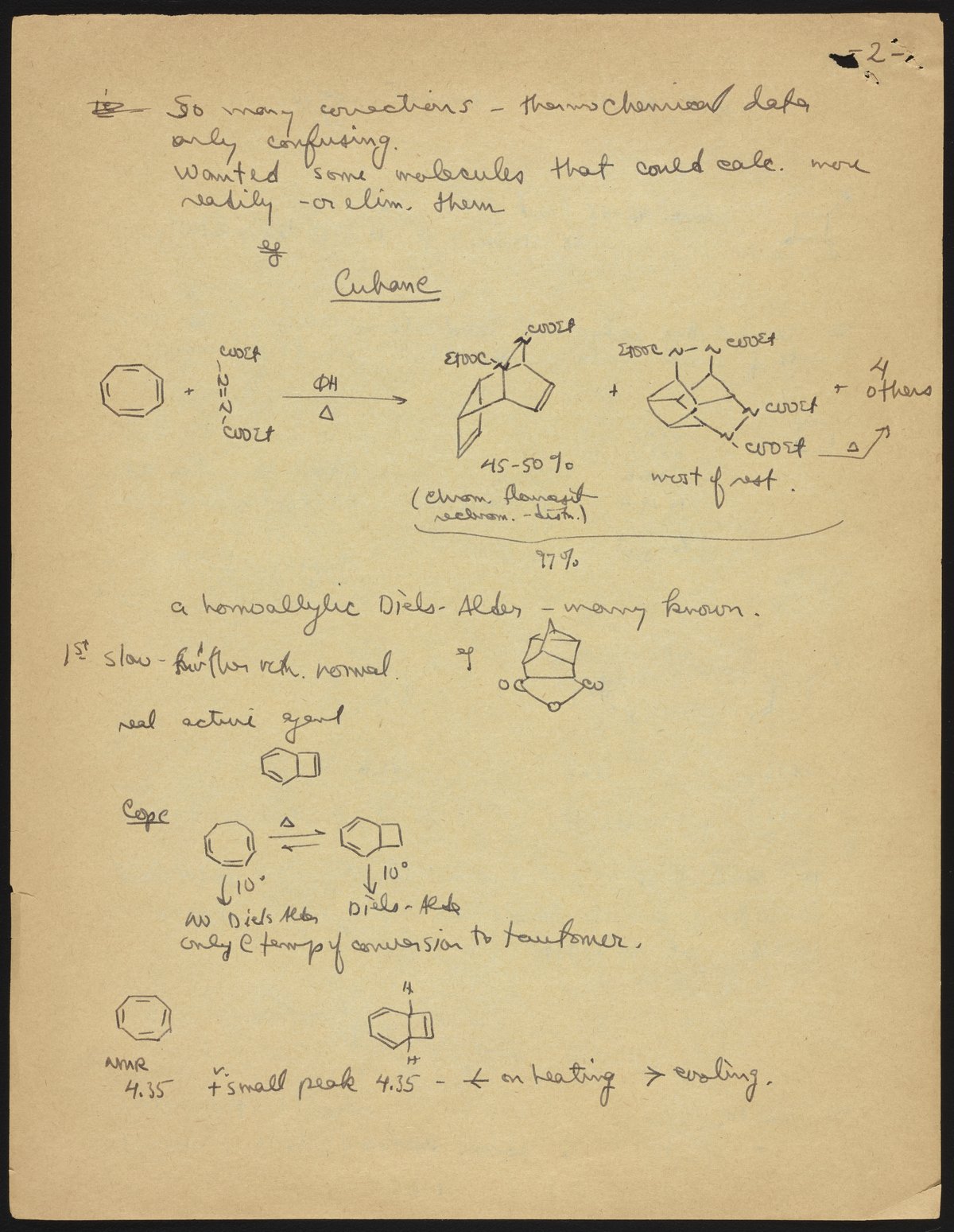 Kohler, Robert E. “R. B. (Robert Burns) Woodward Seminar Entitled ‘Strain Energies.’” Notes from R. B. (Robert Burns) Woodward's Seminars, circa 1959–1966. Folder 2. Science History Institute. Philadelphia. https://digital.sciencehistory.org/works/sq87bv68k.