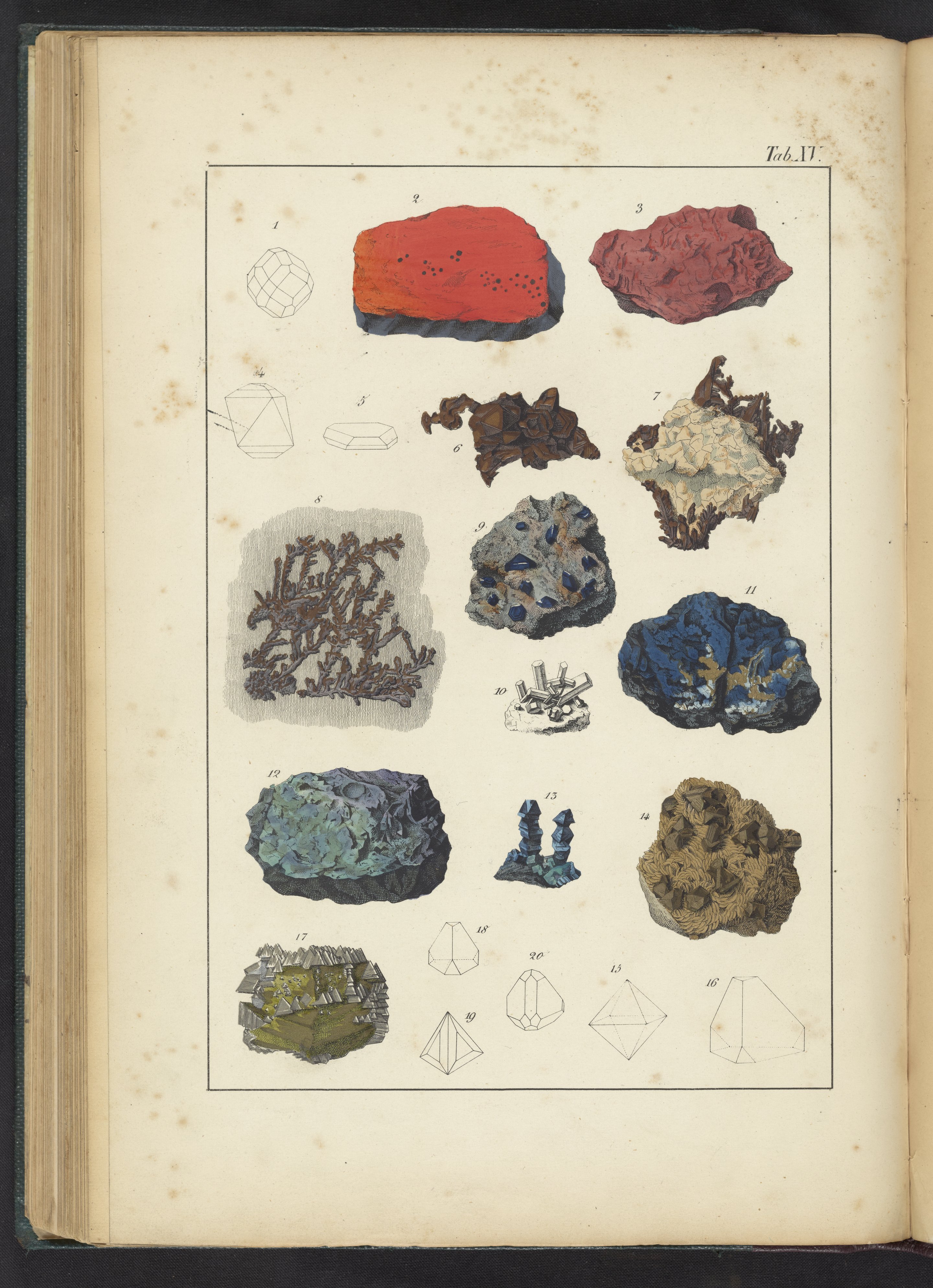Kurr, J. G. (Johann Gottlob). “Plate XV: Mercury, Quicksilver, Copper Ore.” In The Mineral Kingdom. Edinburgh, Scotland: Edmonston and Douglas, 1859. https://digital.sciencehistory.org/works/sxmlwo8.