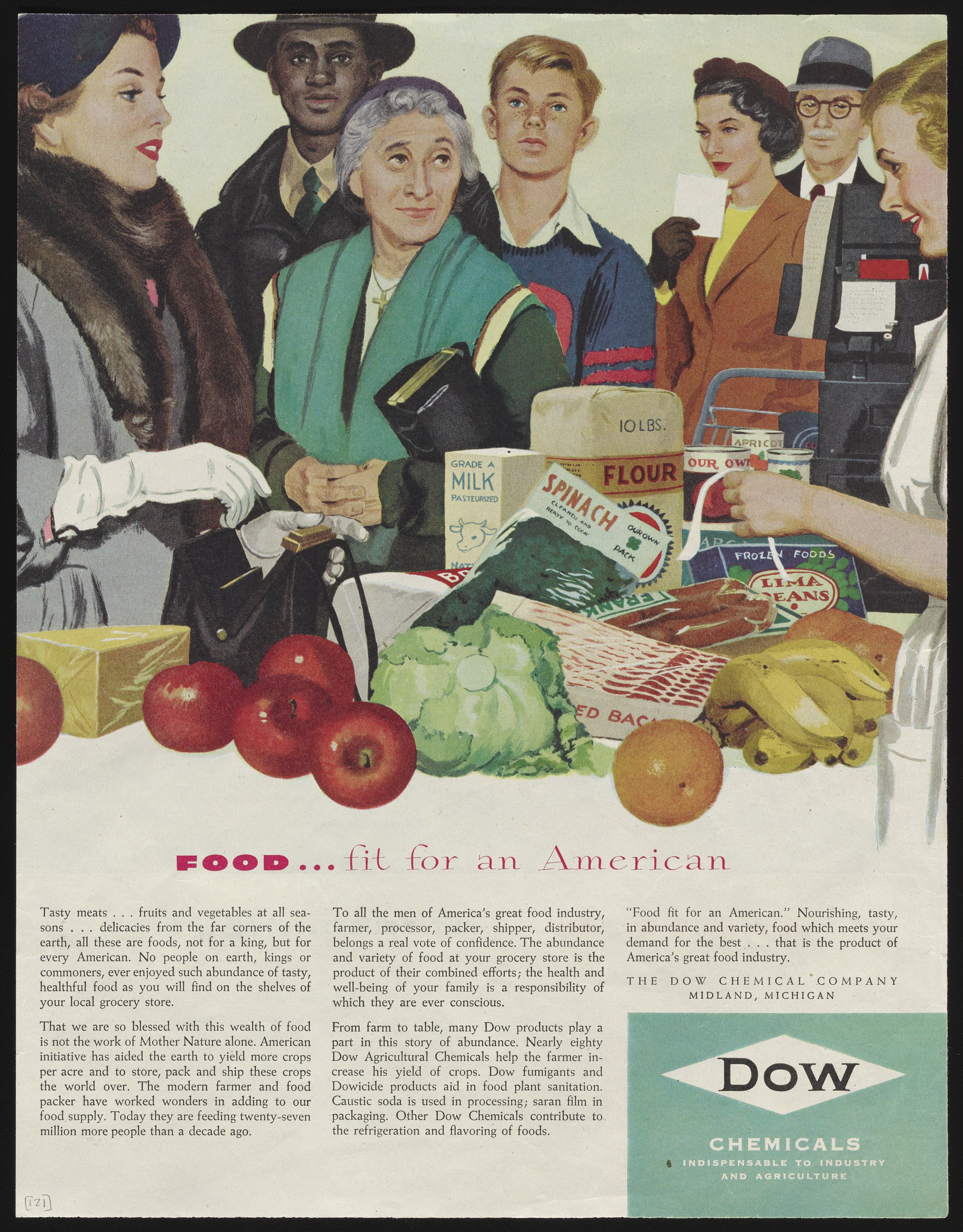 Dow Chemical Company. “Food...fit for an American,” May 24, 1952. Advertisements from the Dow Chemical Historical Collection, Box 7. Science History Institute. Philadelphia. https://digital.sciencehistory.org/works/t148fh84s.