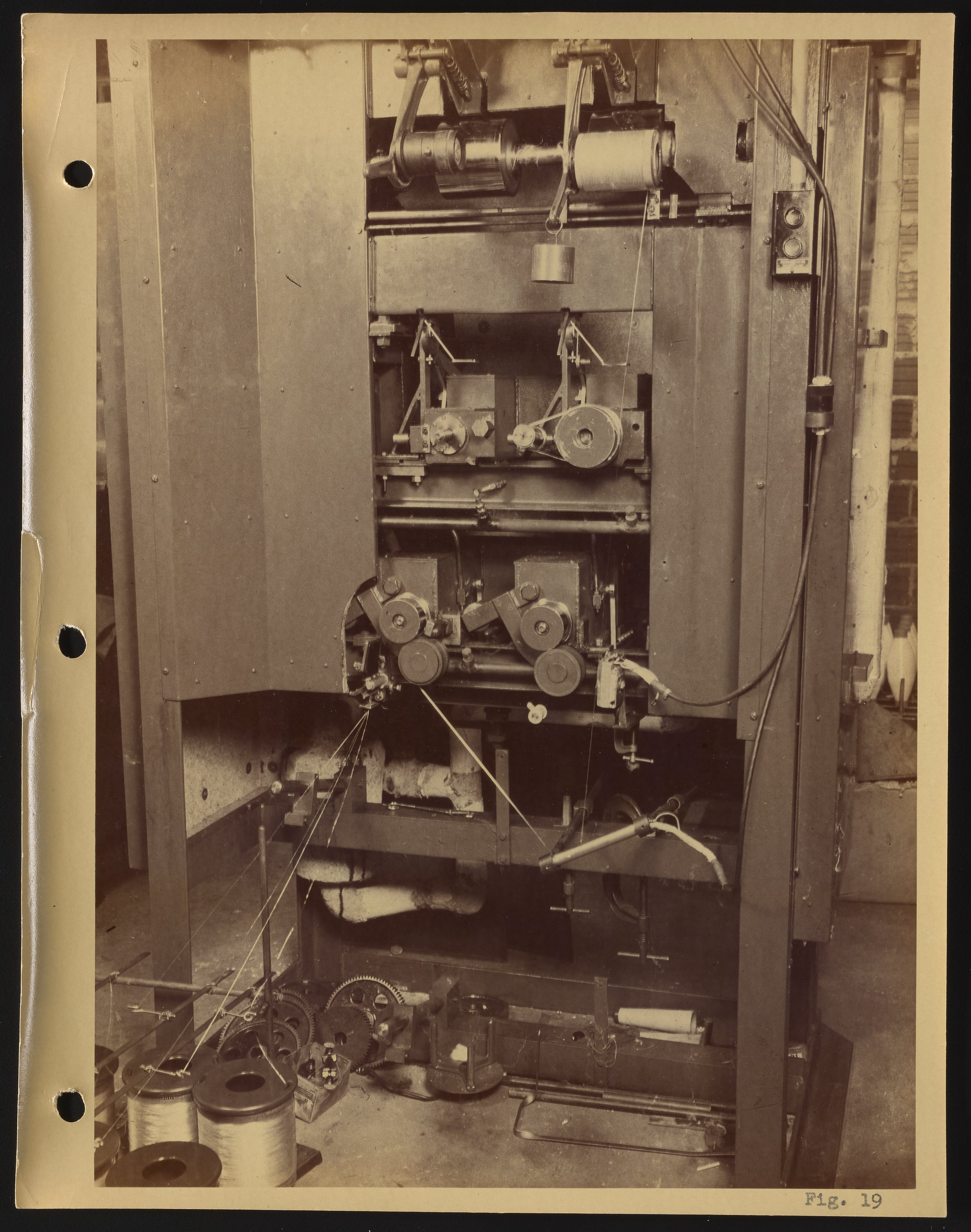 “Two-Position Tire Cord Machine,” November 27, 1946. Joseph X. Labovsky Collection of Nylon Photographs and Ephemera, Box 3. Science History Institute. Philadelphia. https://digital.sciencehistory.org/works/tb09j5707.