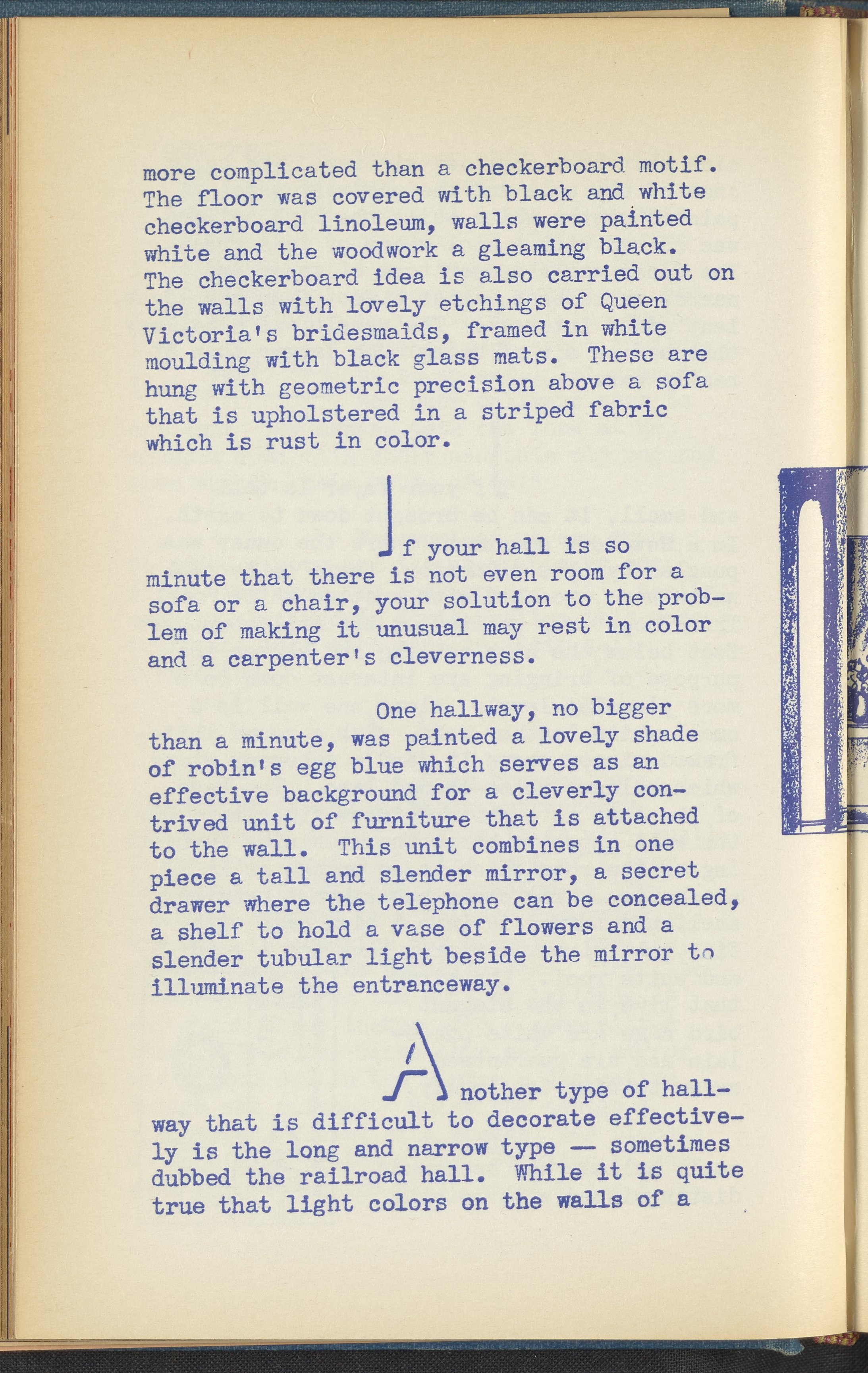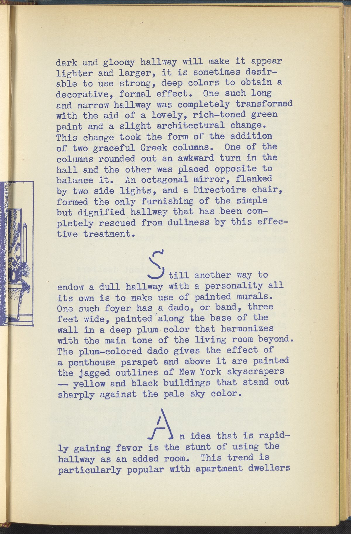 Booklet corresponding to a radio broadcast program created by the National Paint, Varnish, and Lacquer Association. The booklet discusses the importance of having an attractive home entranceway and provides tips for painting and decorating foyers, halls, and thresholds of various shapes and sizes. Includes small stylized illustrations throughout and decorated covers.