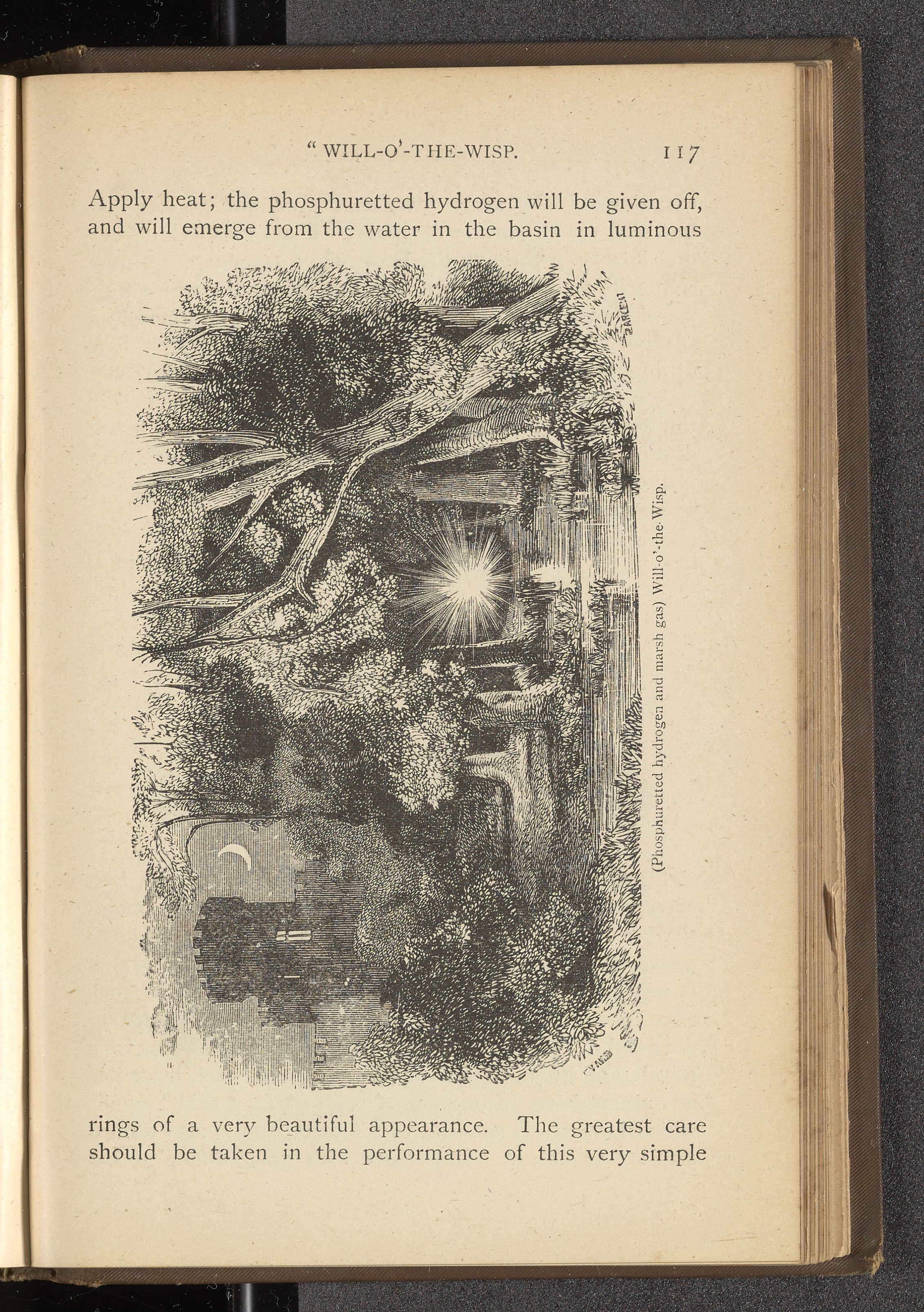 “Will-O'-The-Wisp (Phosphuretted Hydrogen and Marsh Gas).” Wonders of Electricity and the Elements, Being a Popular Account of Modern Electrical and Magnetic Discoveries, Magnetism and Electric Machines, the Electric Telegraph and the Electric Light, and the Metal Bases, Salt, and Acids. London, England: Lock Ward, 1870–1900. https://digital.sciencehistory.org/works/tc1mm8j.