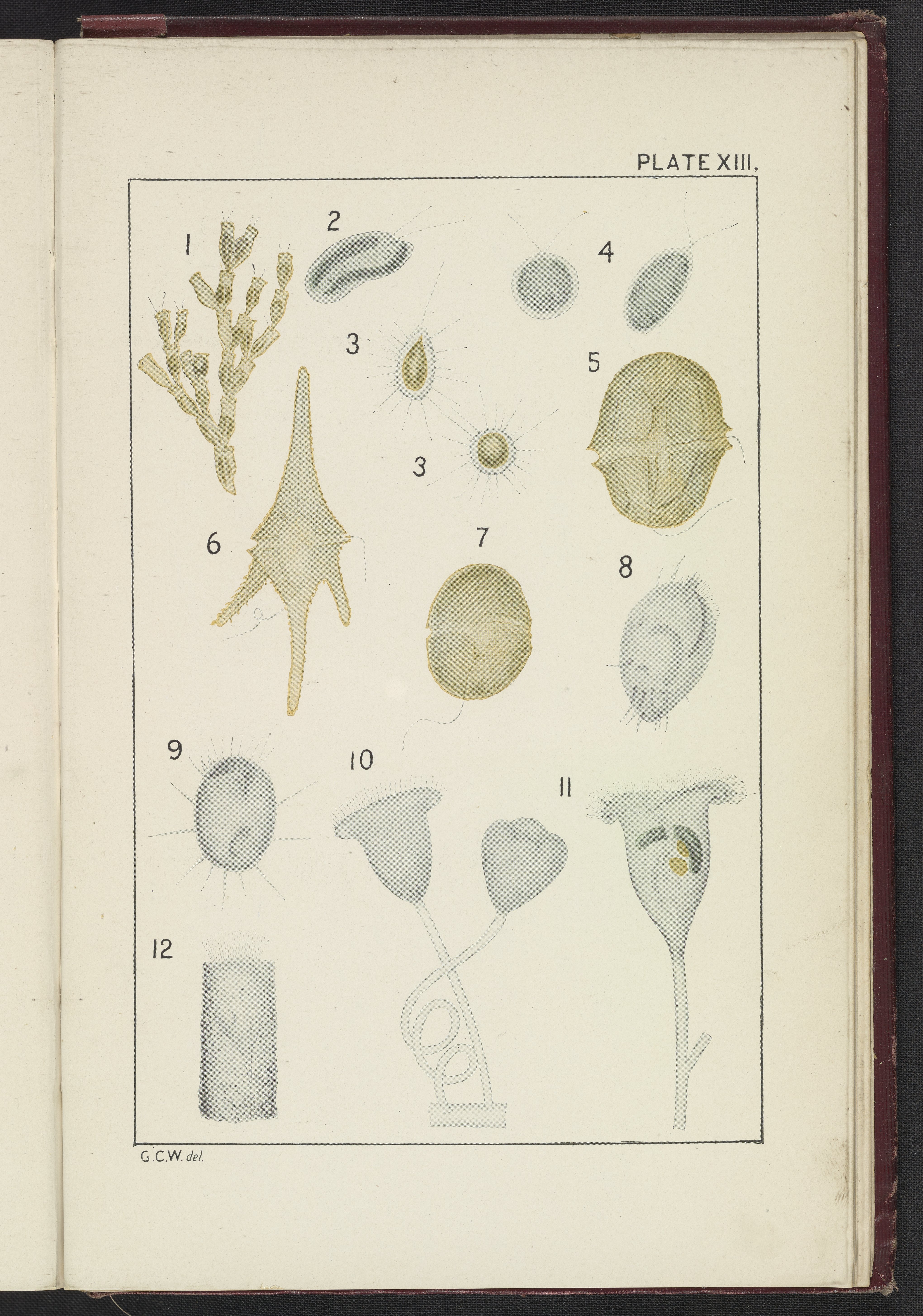 Whipple, George Chandler. “Plate XIII: Protozoa.” The Microscopy of Drinking Water, 1914. https://digital.sciencehistory.org/works/td96k3530.
