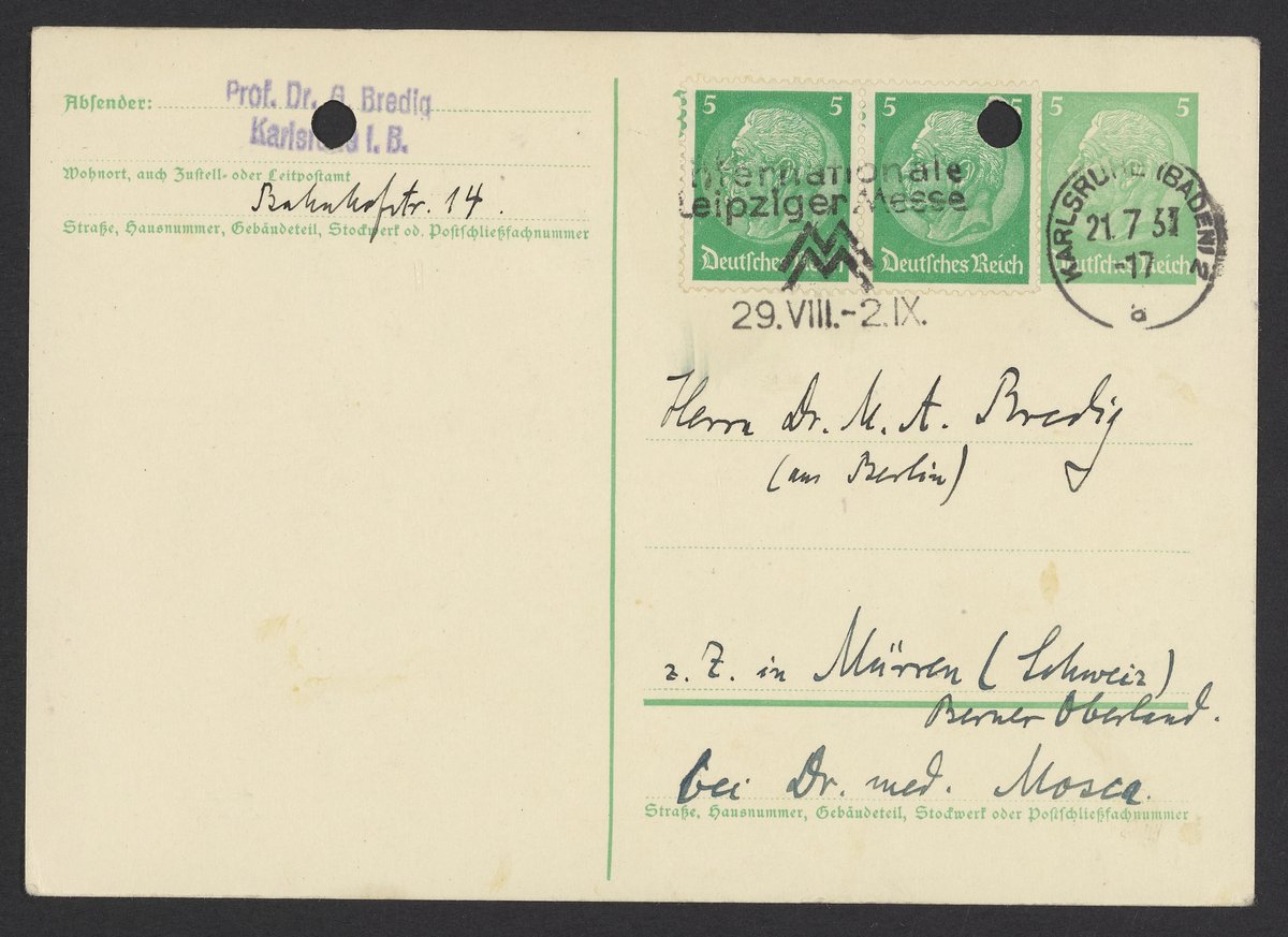 Bredig, Georg. “Postcard from Georg Bredig to Max Bredig, July 21, 1937,” July 21, 1937. Papers of Georg and Max Bredig, Box 7, Folder 13. Science History Institute. Philadelphia. https://digital.sciencehistory.org/works/tggqg2m.