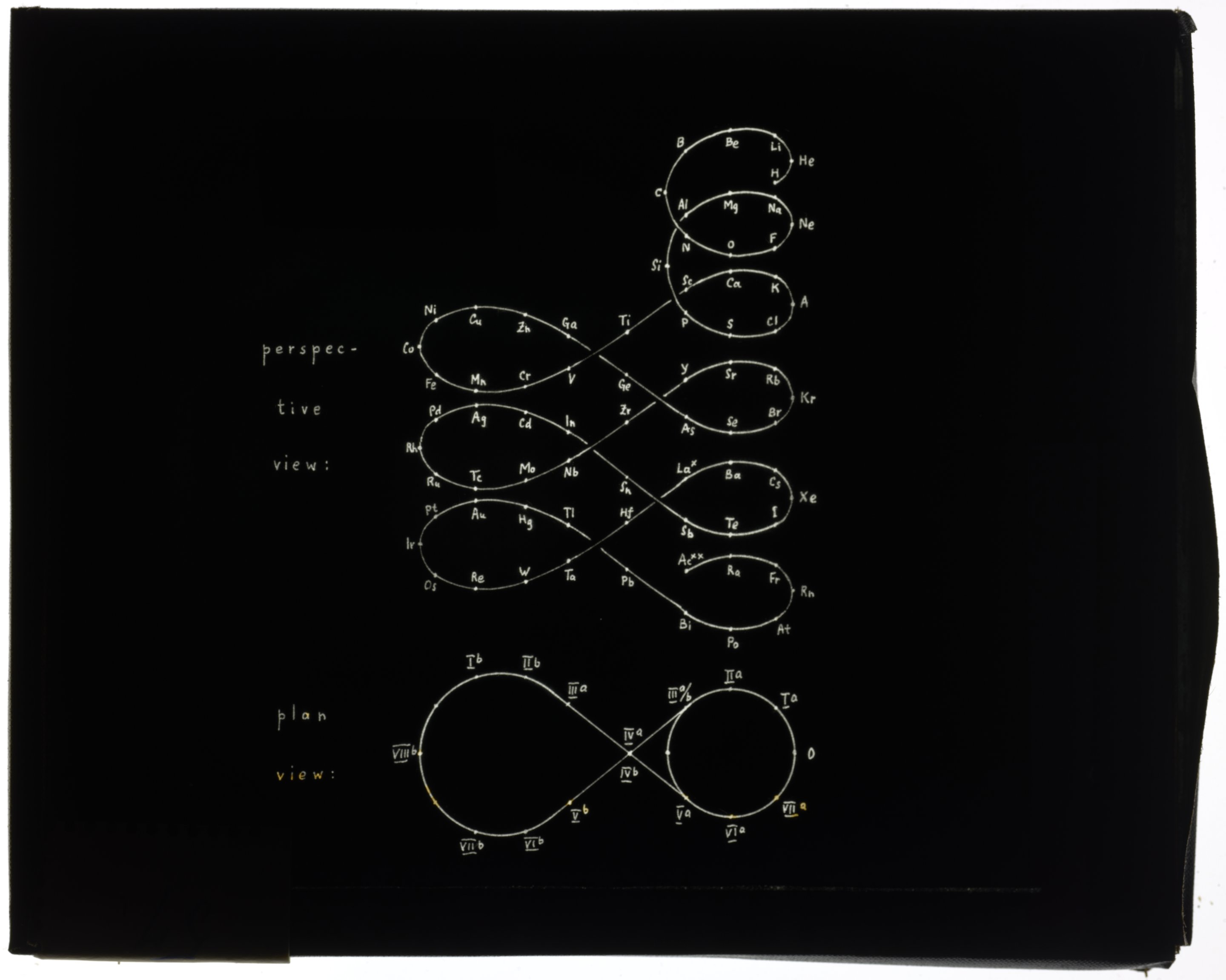 Periodic table in style of helix and space lemniscate with additional loop for rare earth elements1900 (Original design), Circa 1957 (Date attributed to slide)